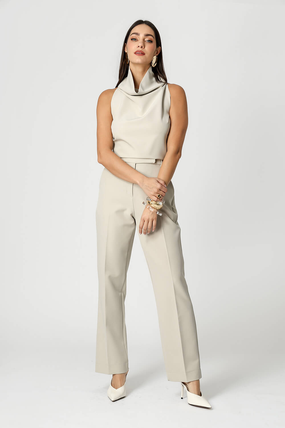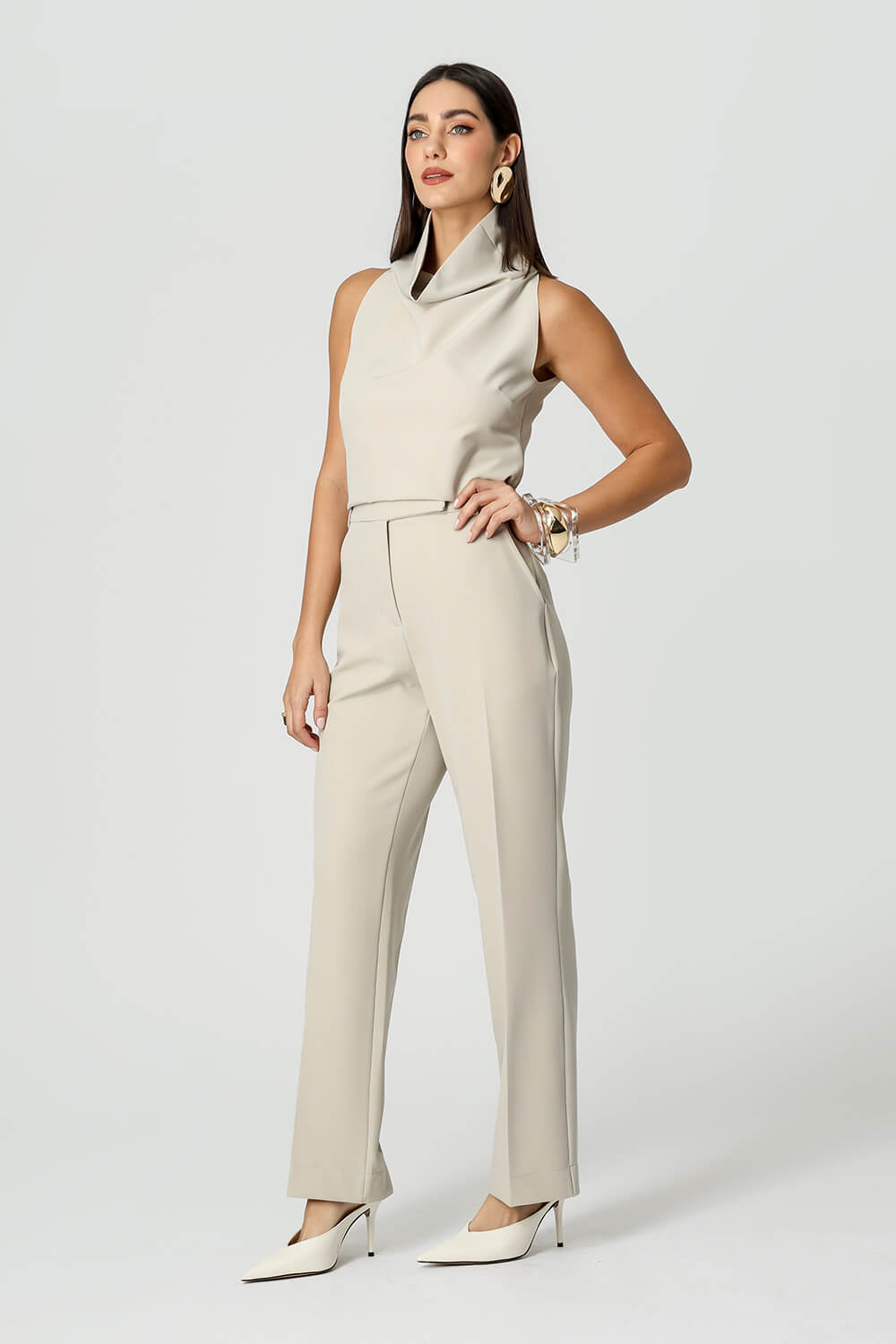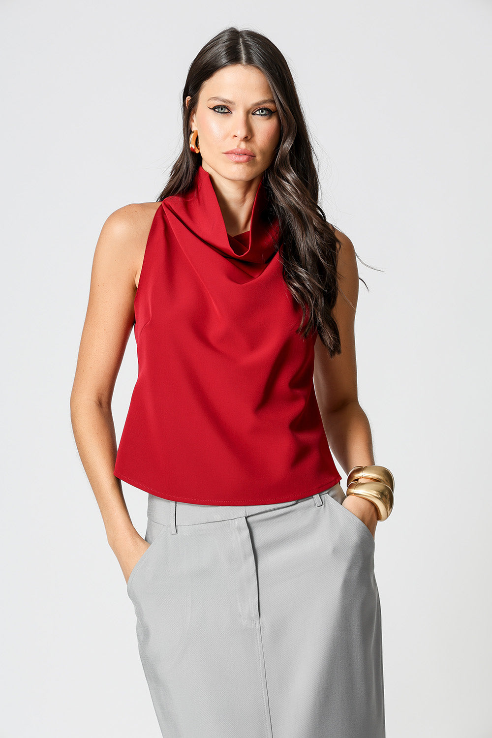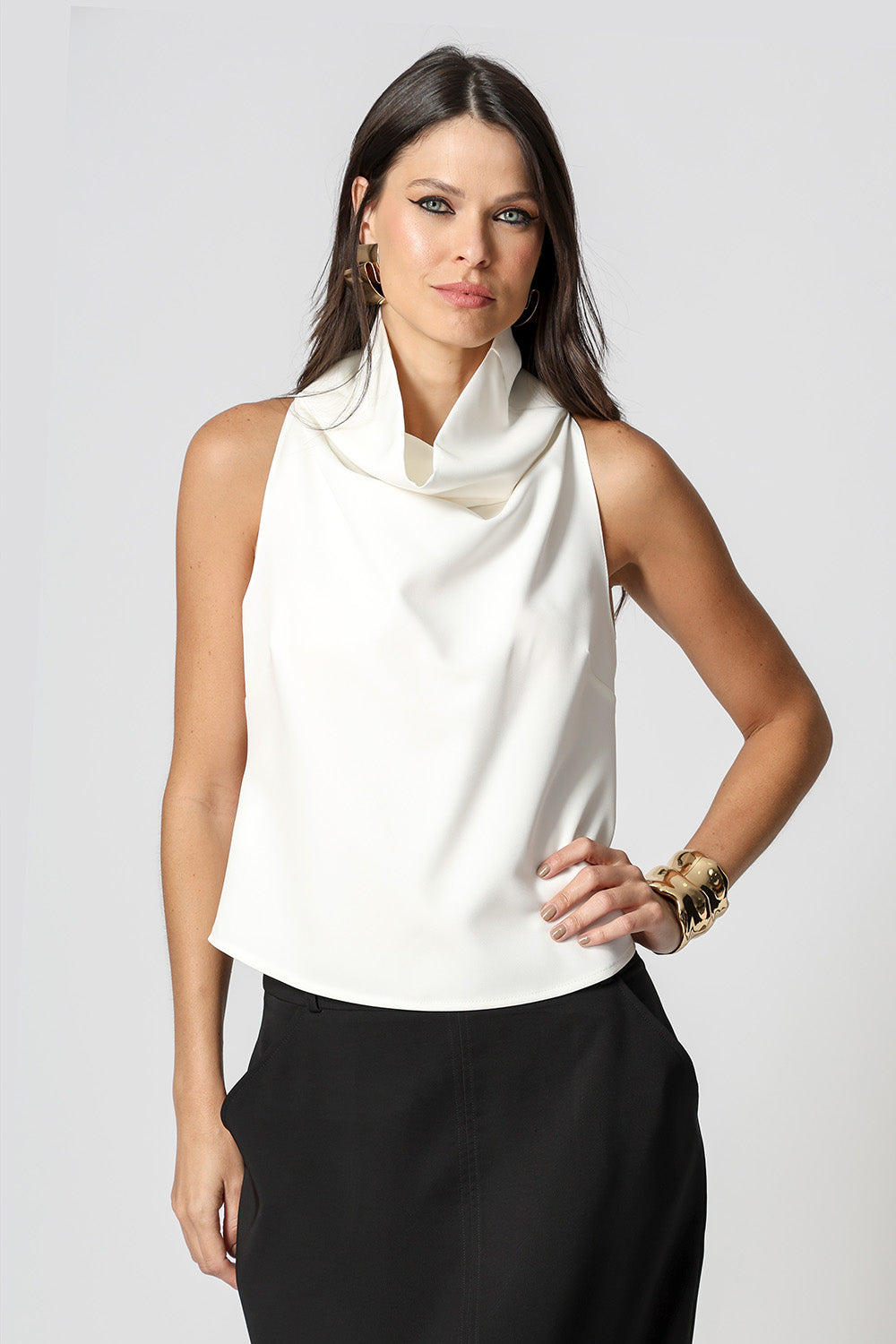Blusa em alfaiataria sem mangas, perfeita para um visual elegante e sofisticado. Ideal para compor desde produções formais até mais casuais com estilo.