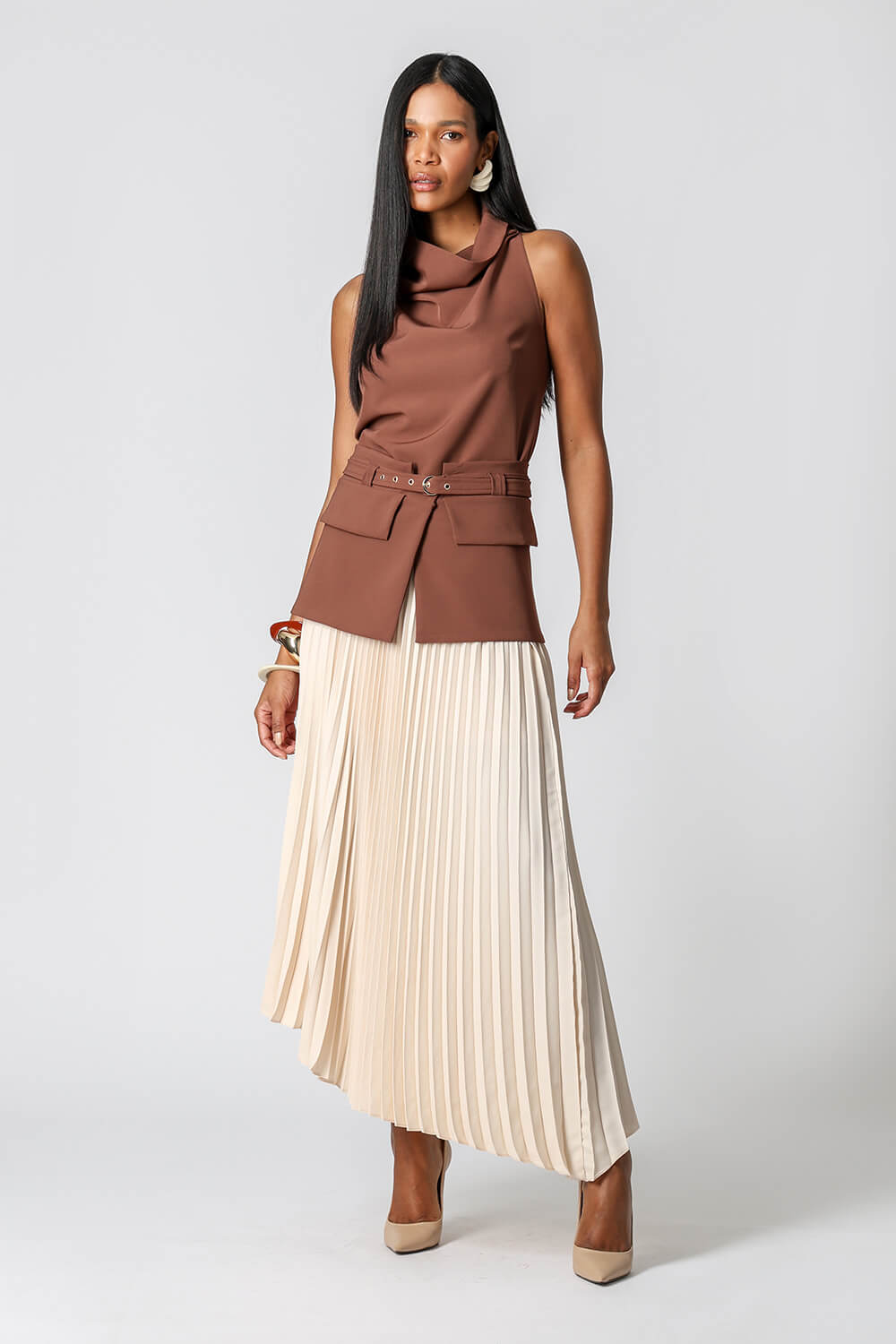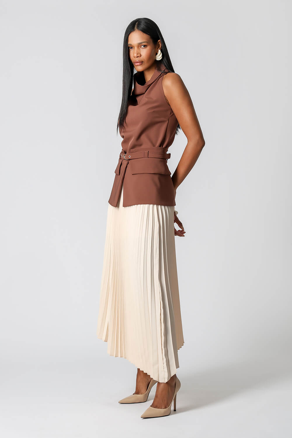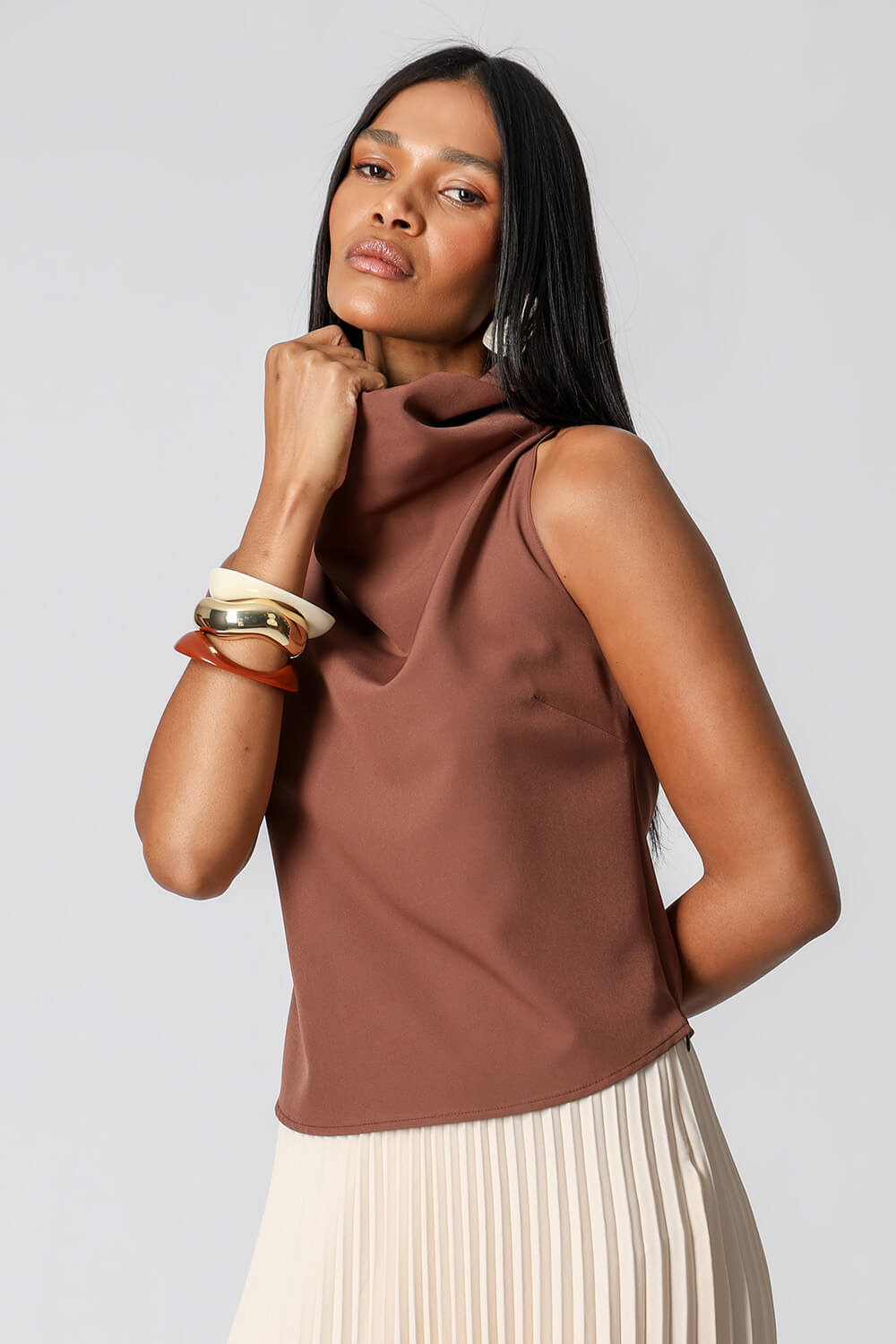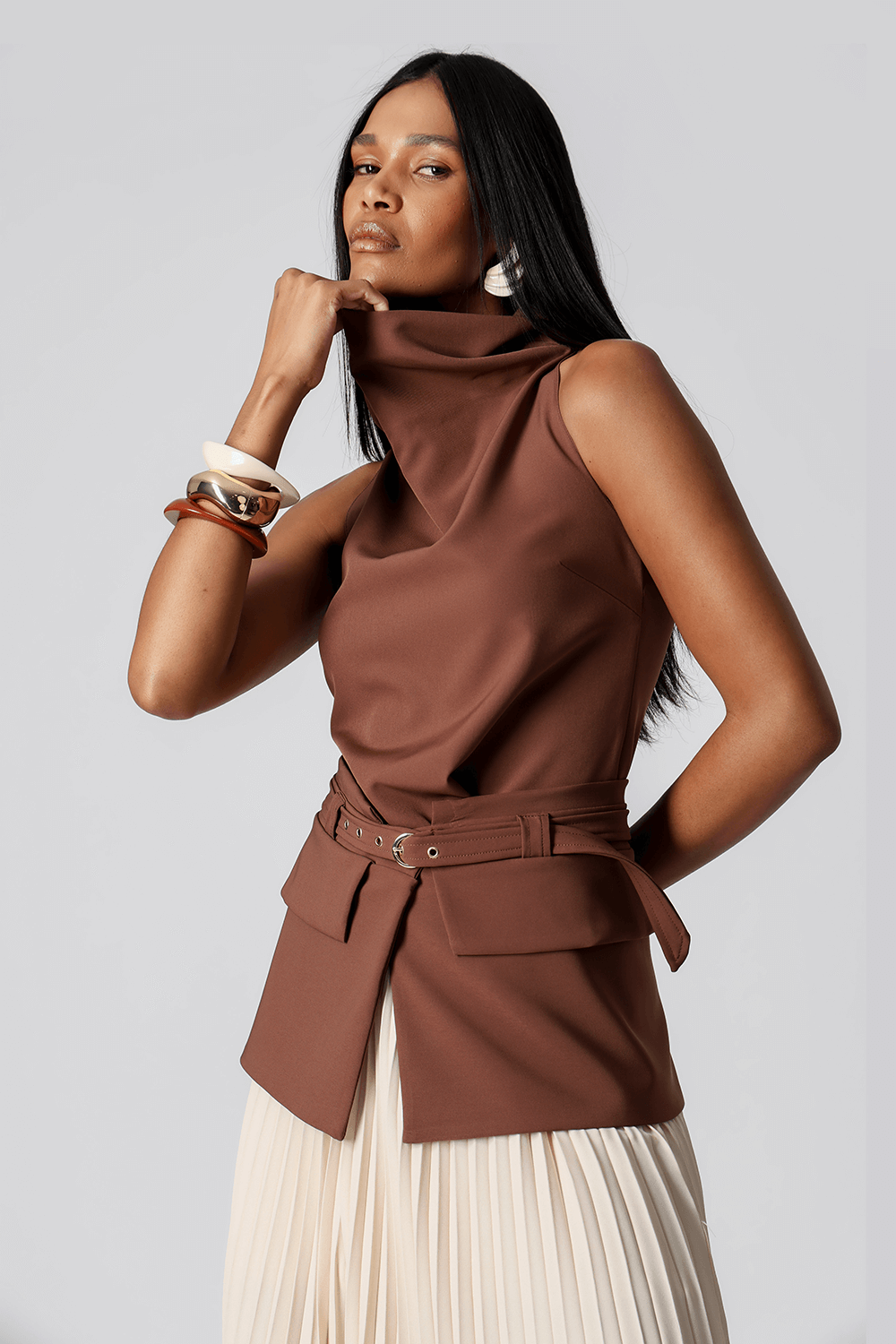 Blusa em alfaiataria sem mangas, perfeita para um visual elegante e sofisticado. Ideal para compor desde produções formais até mais casuais com estilo.