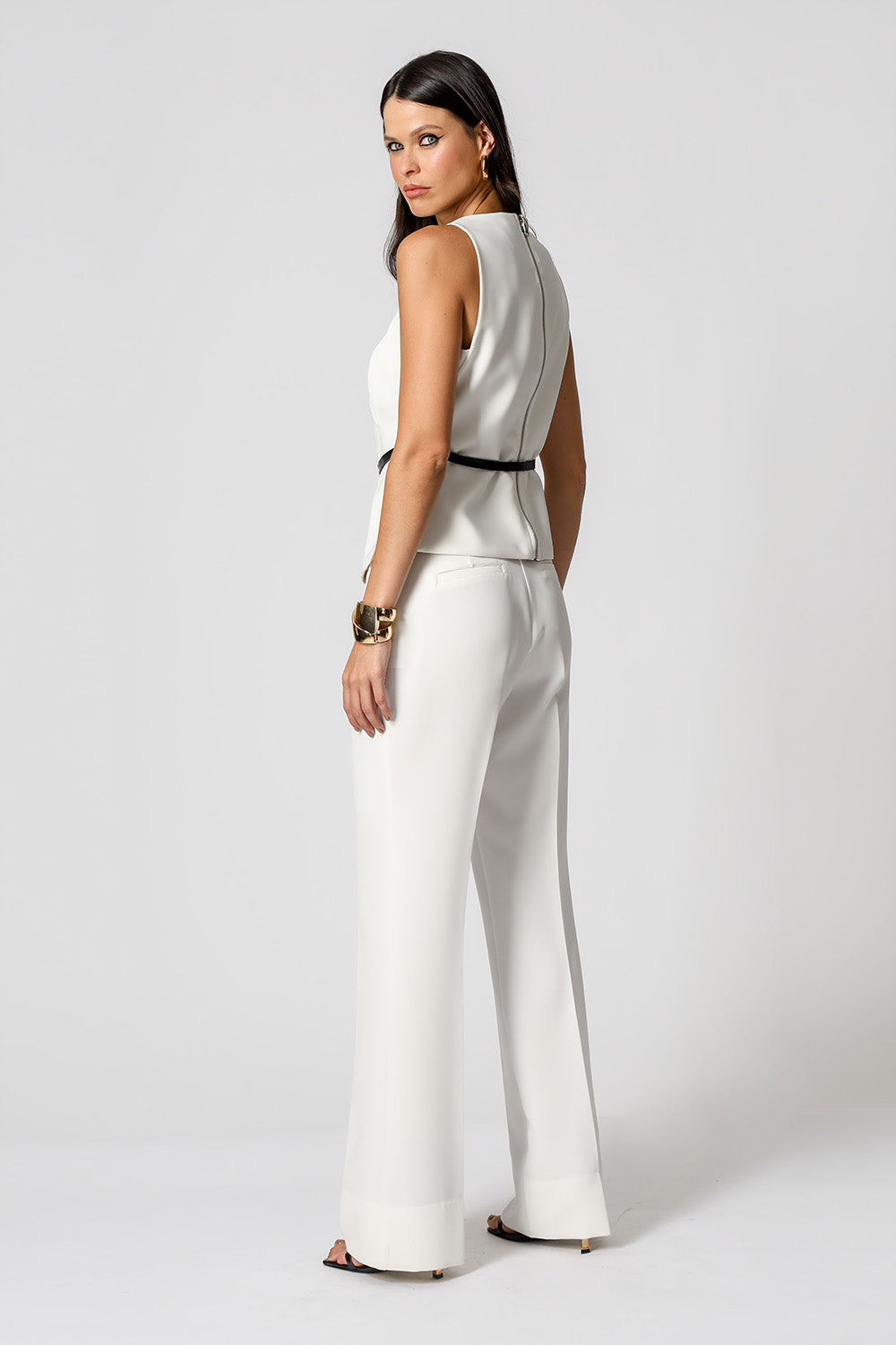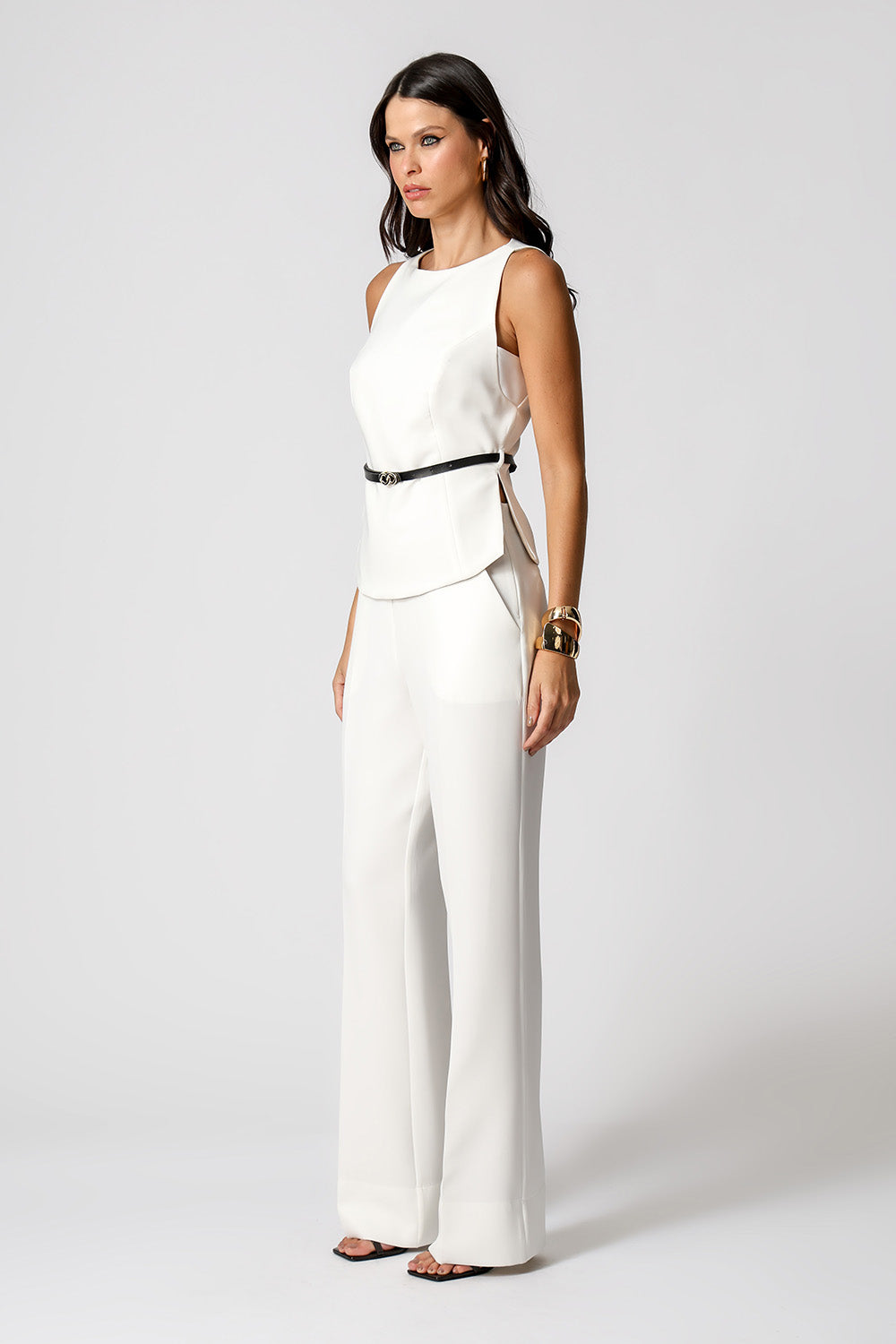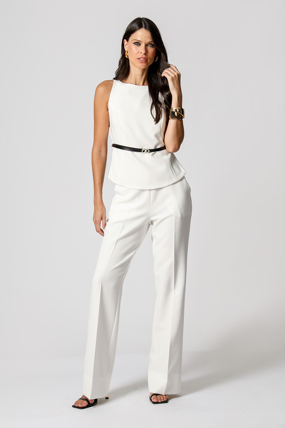 Blusa entallada sin mangas, perfecta para un look elegante y sofisticado. Ideal para crear looks elegantes desde los más formales hasta los más casuales.