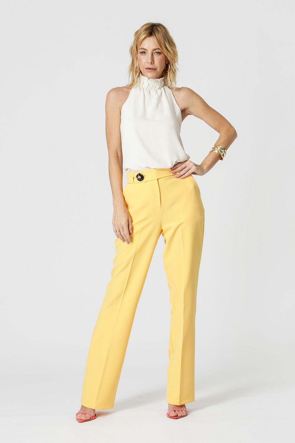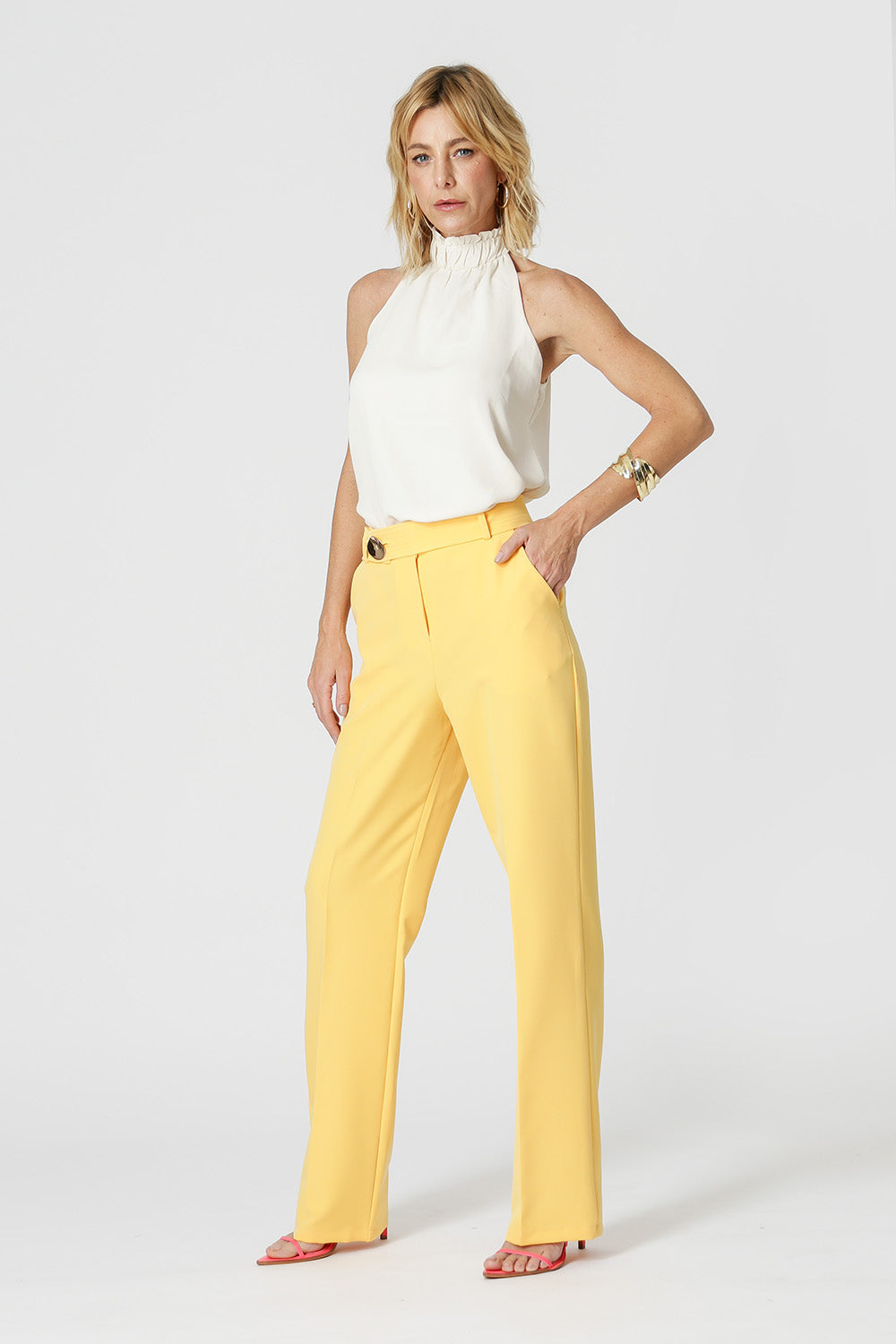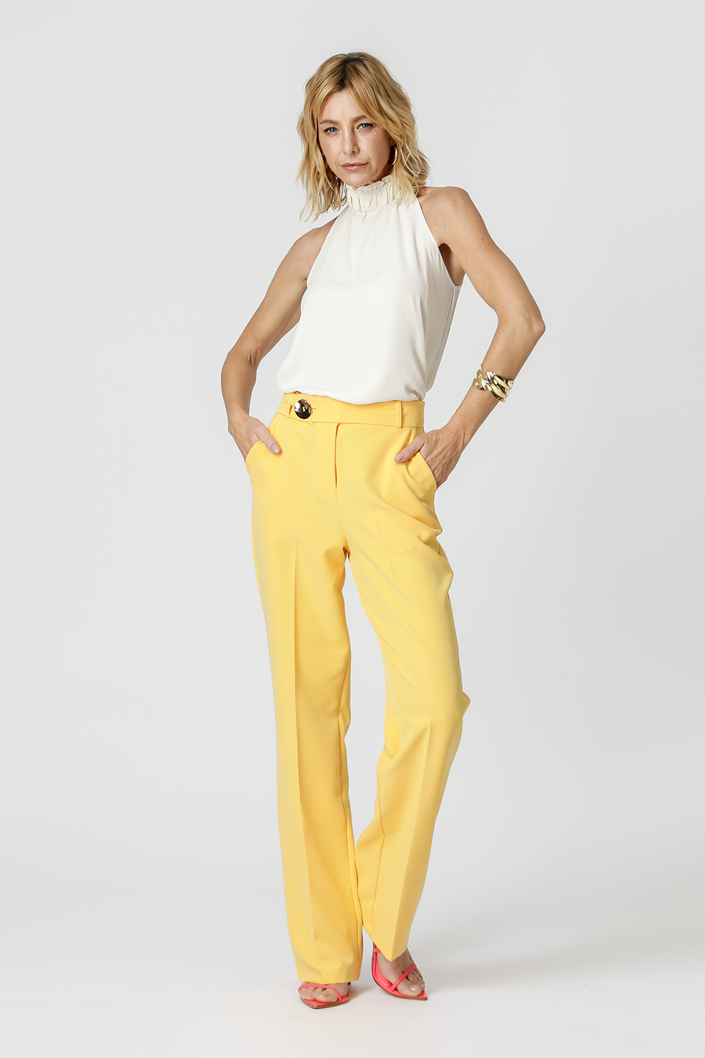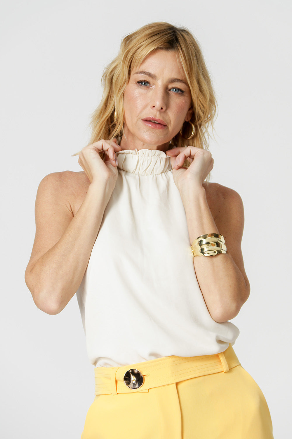 Blusa sin mangas con cuello alto fruncido y abertura en la nuca. Una pieza con un toque fashionista para que puedas lucir tus looks.