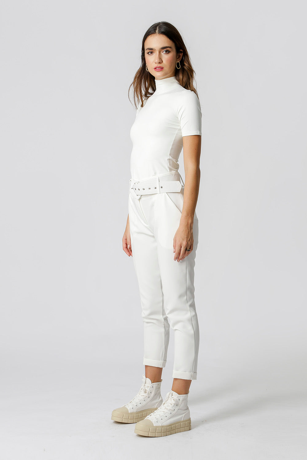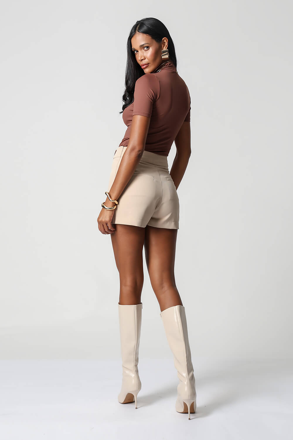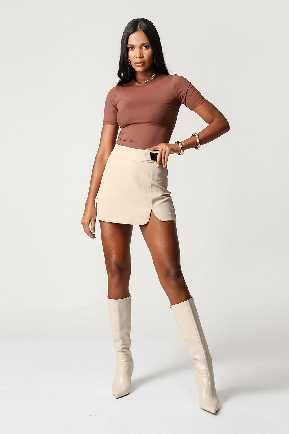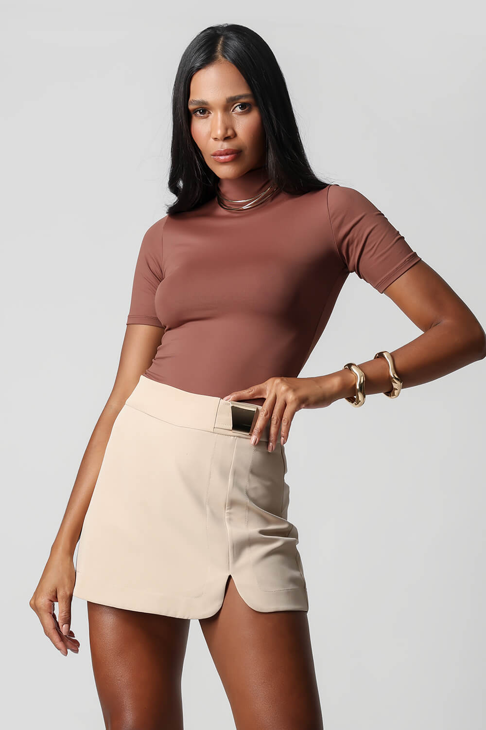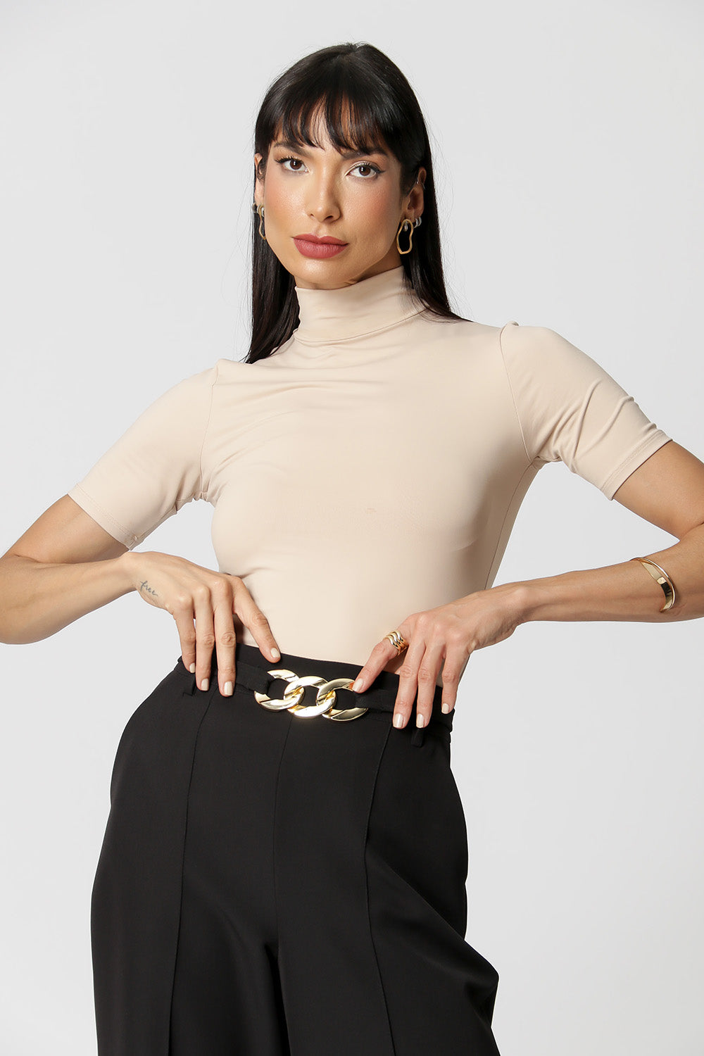 Blusa manga curta com gola. Confeccionada em malha amni. Com shape justo e confortável para arrasar no look casual.