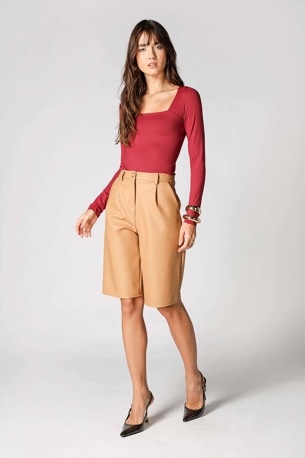 Blusa de manga larga con escote cuadrado - WINE ESC