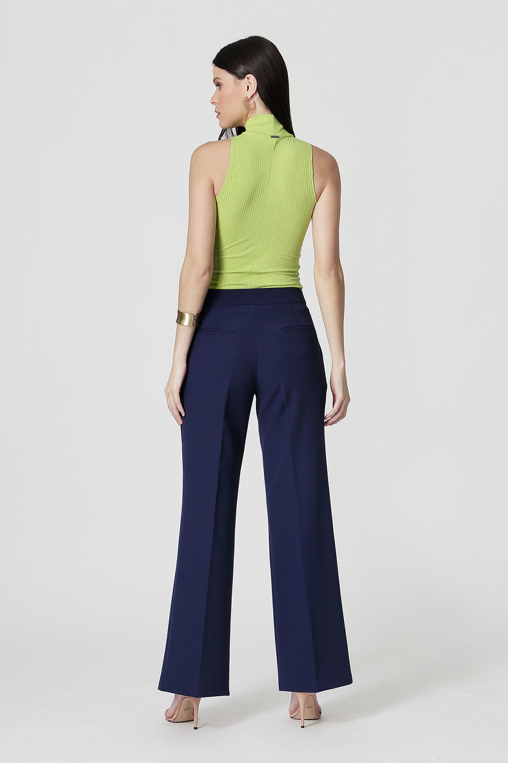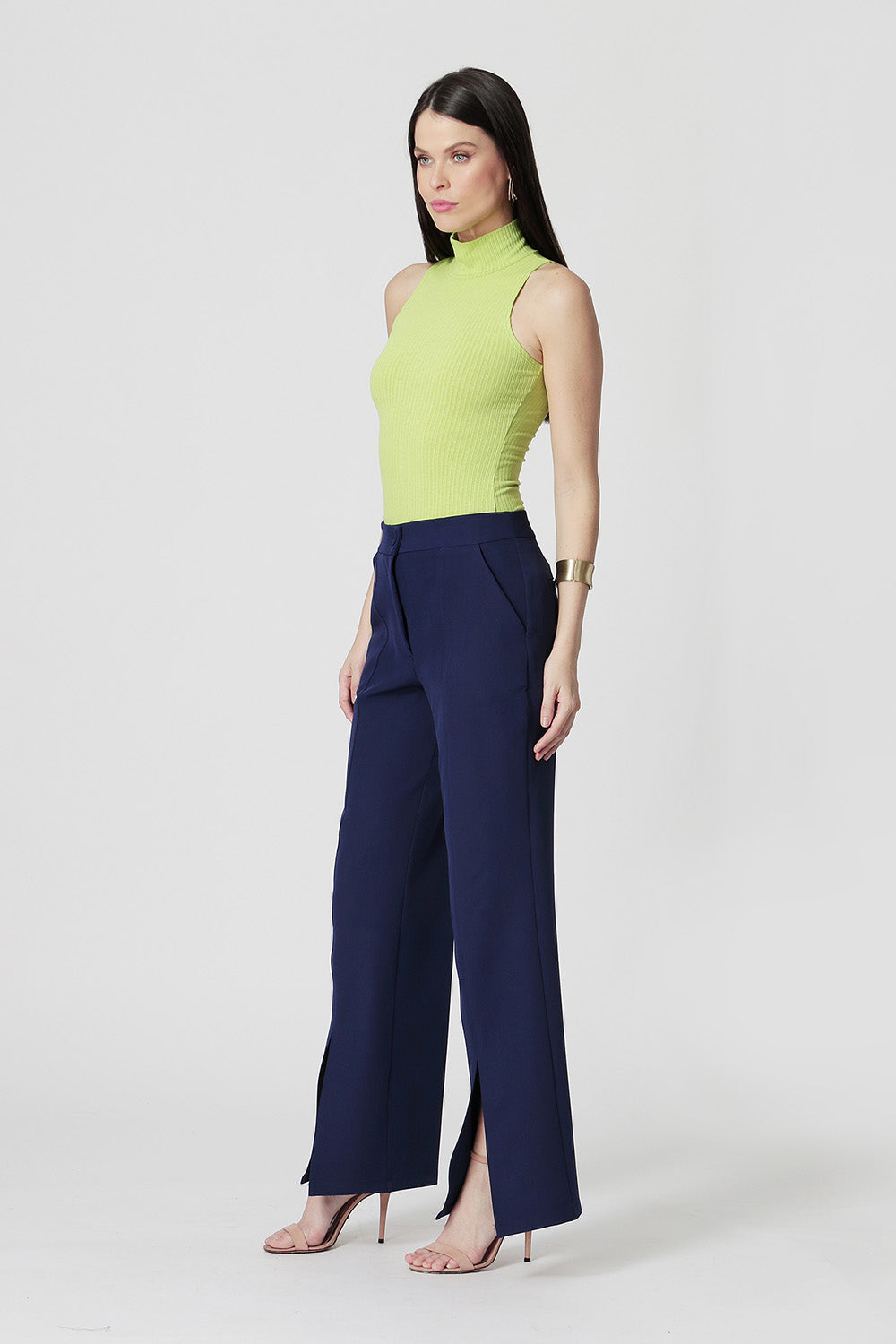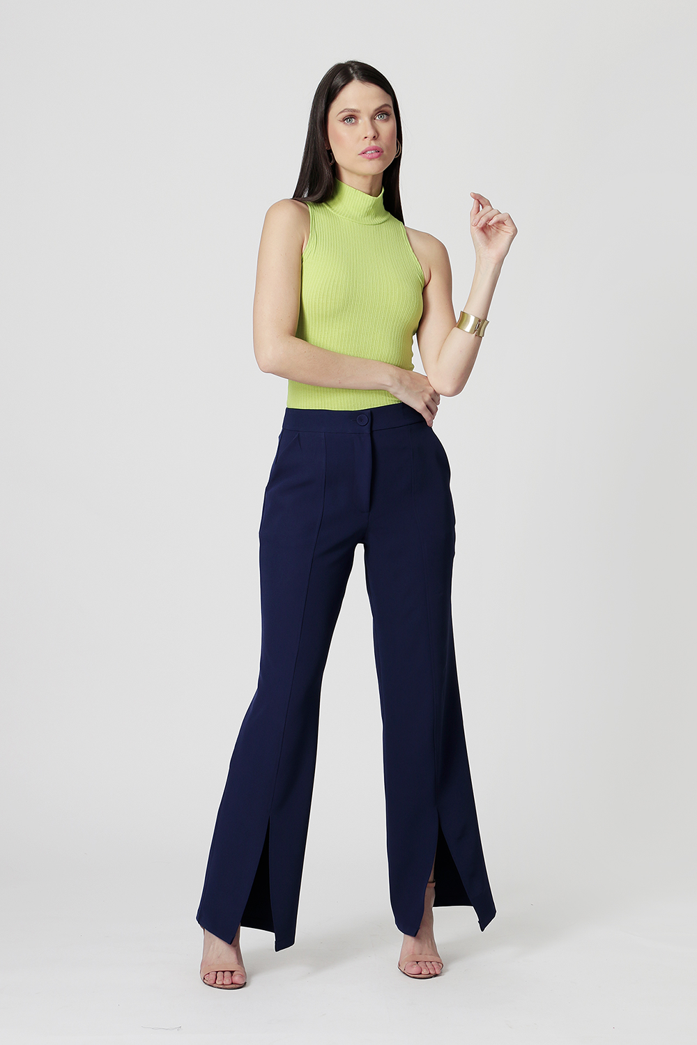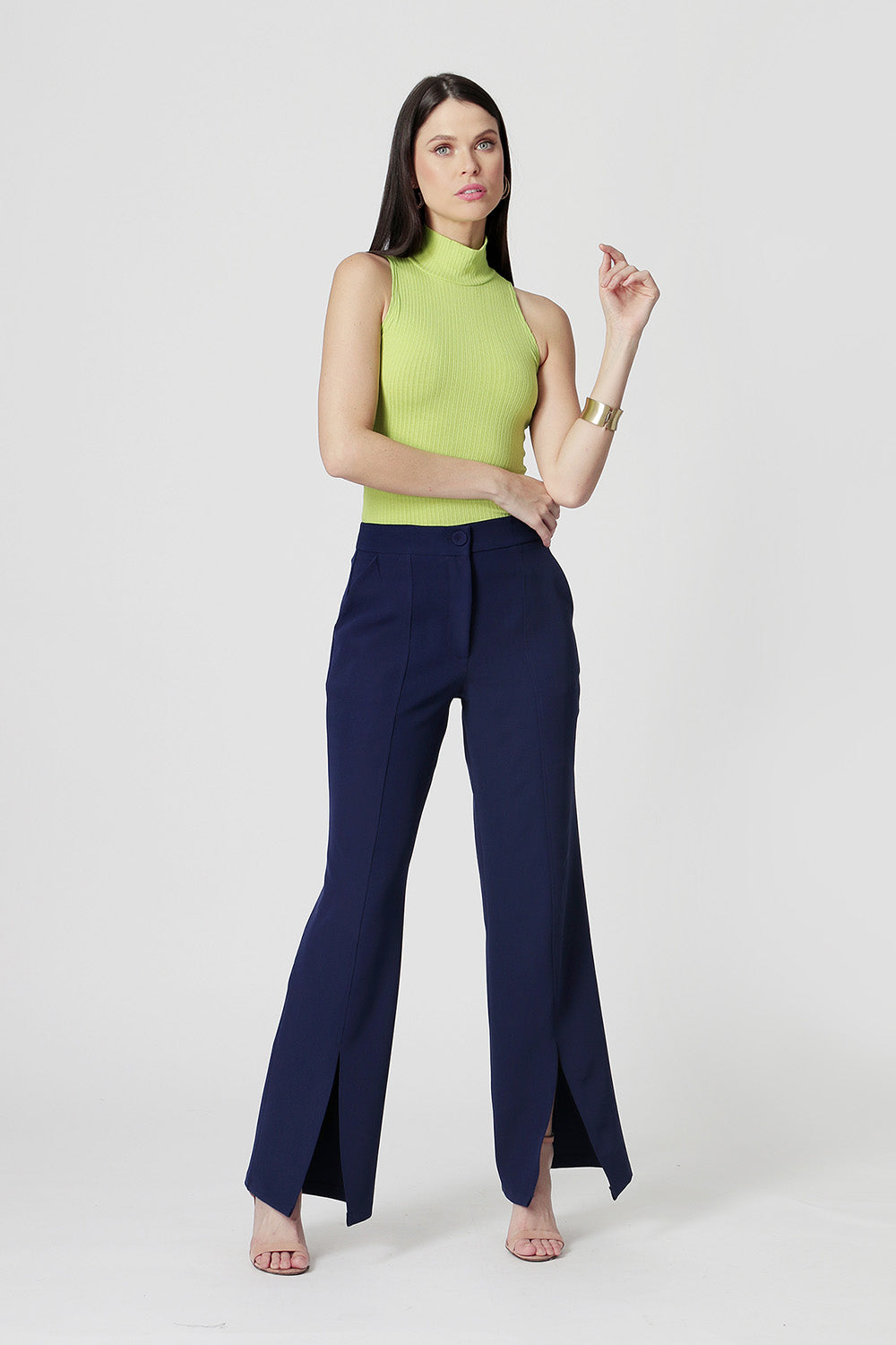 Blusa de punto de viscosa acanalada con sisa americana y cuello alto. Pieza básica, perfecta para trabajar con looks de capas.