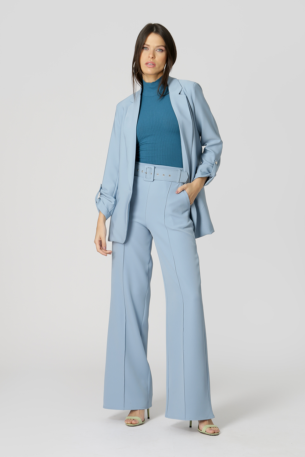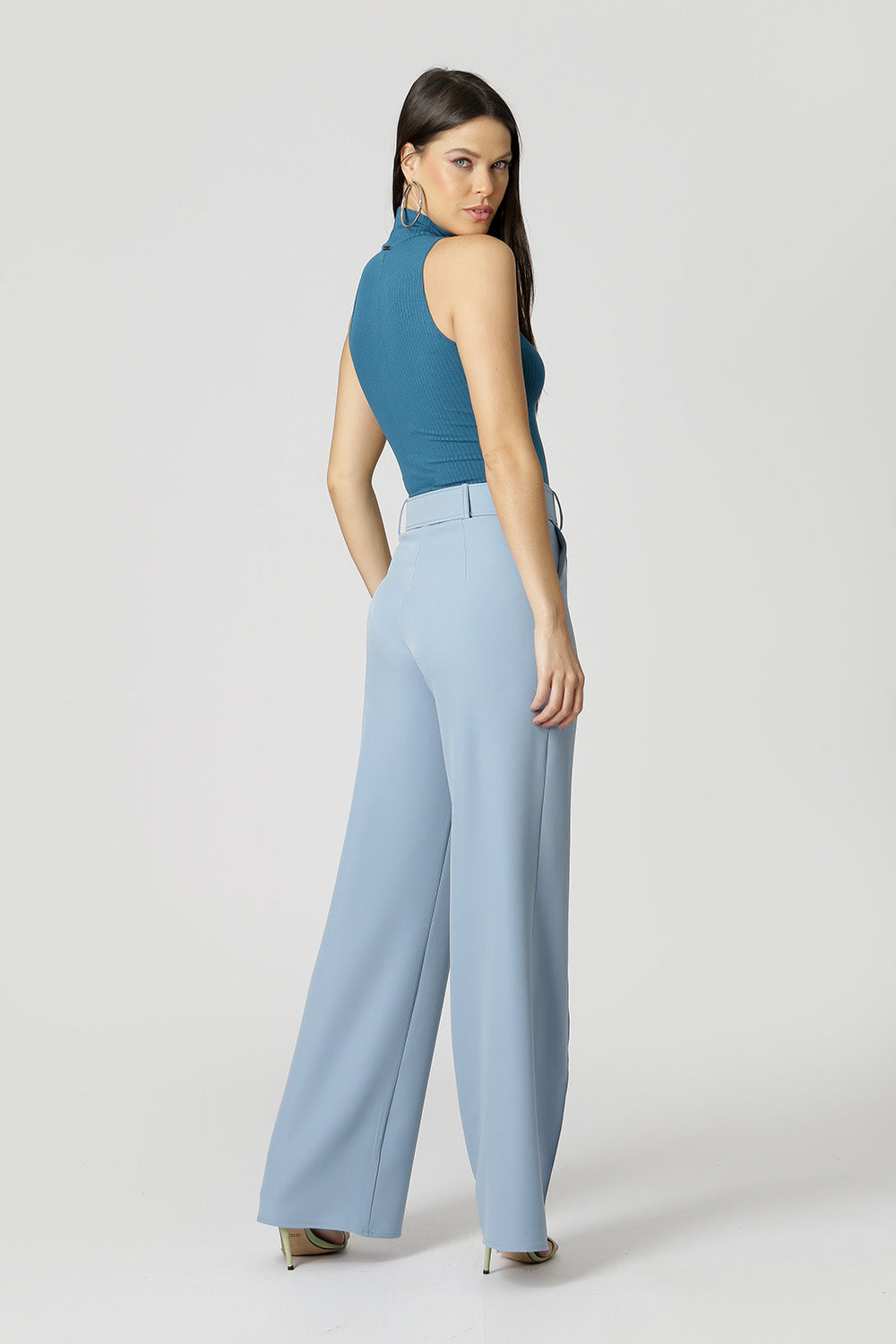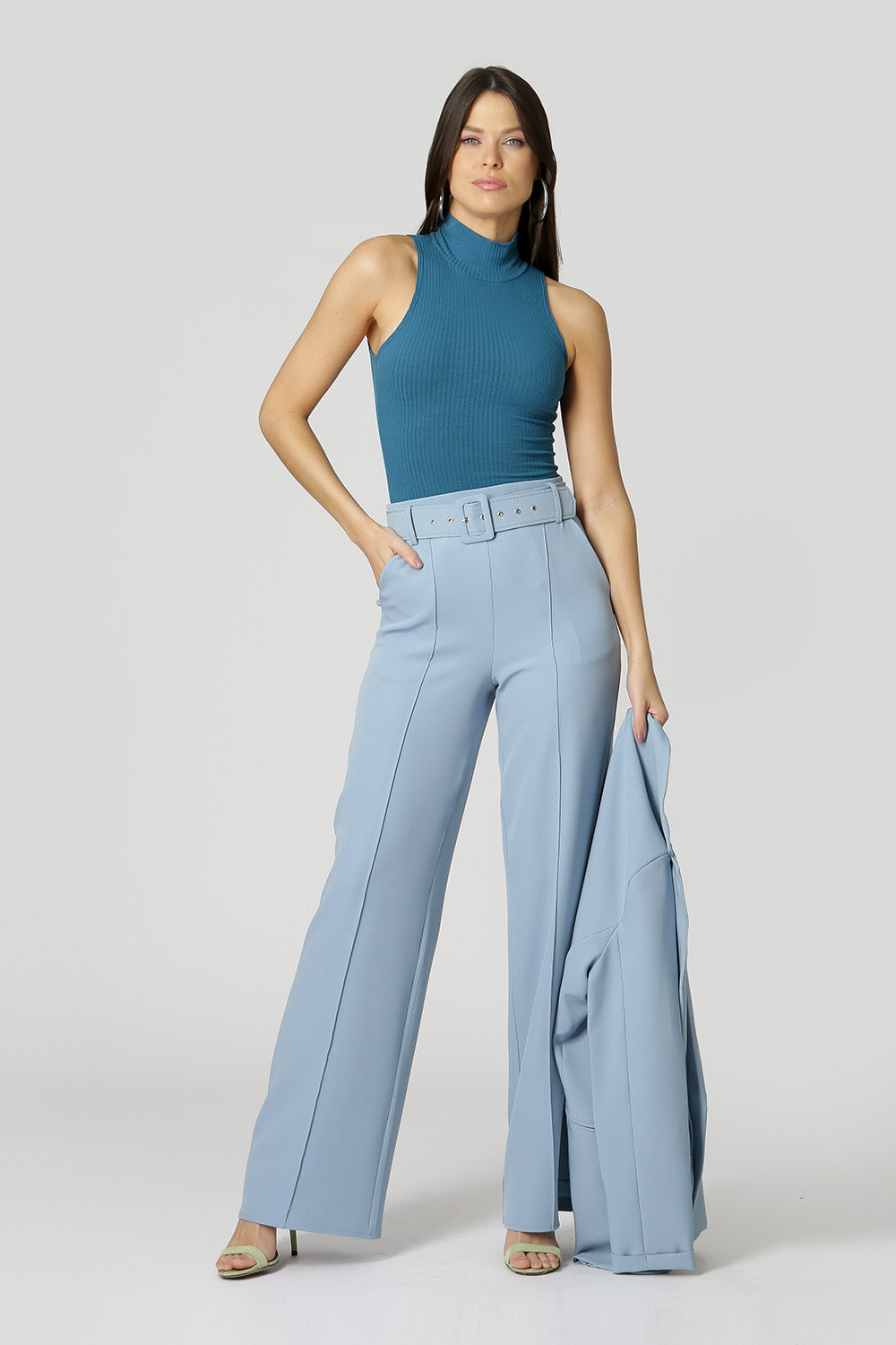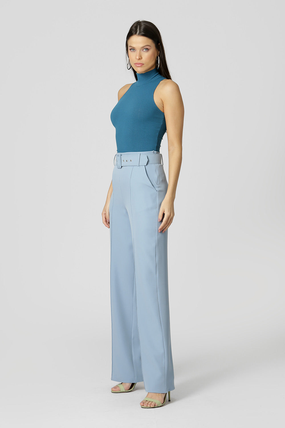 Blusa de punto de viscosa acanalada con sisa americana y cuello alto. Pieza básica, perfecta para trabajar con looks de capas.