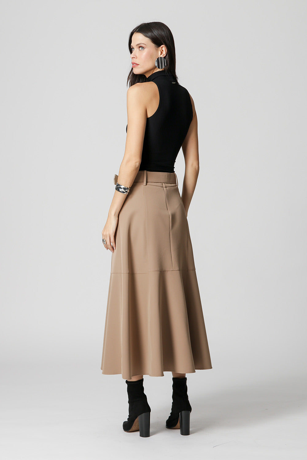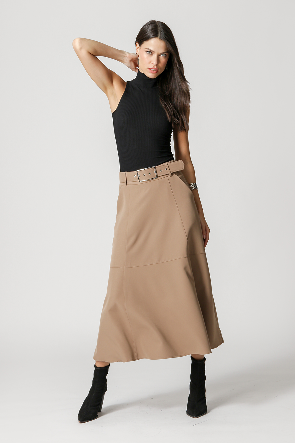 Blusa de punto de viscosa acanalada con sisa americana y cuello alto. Pieza básica, perfecta para trabajar con looks de capas.