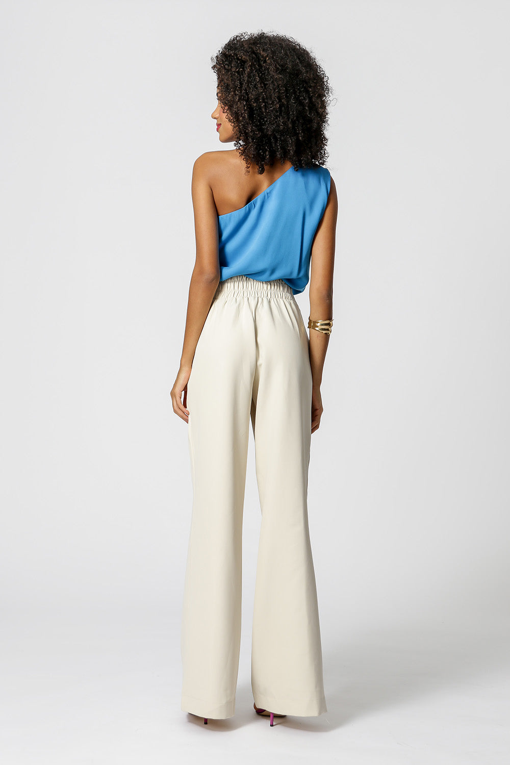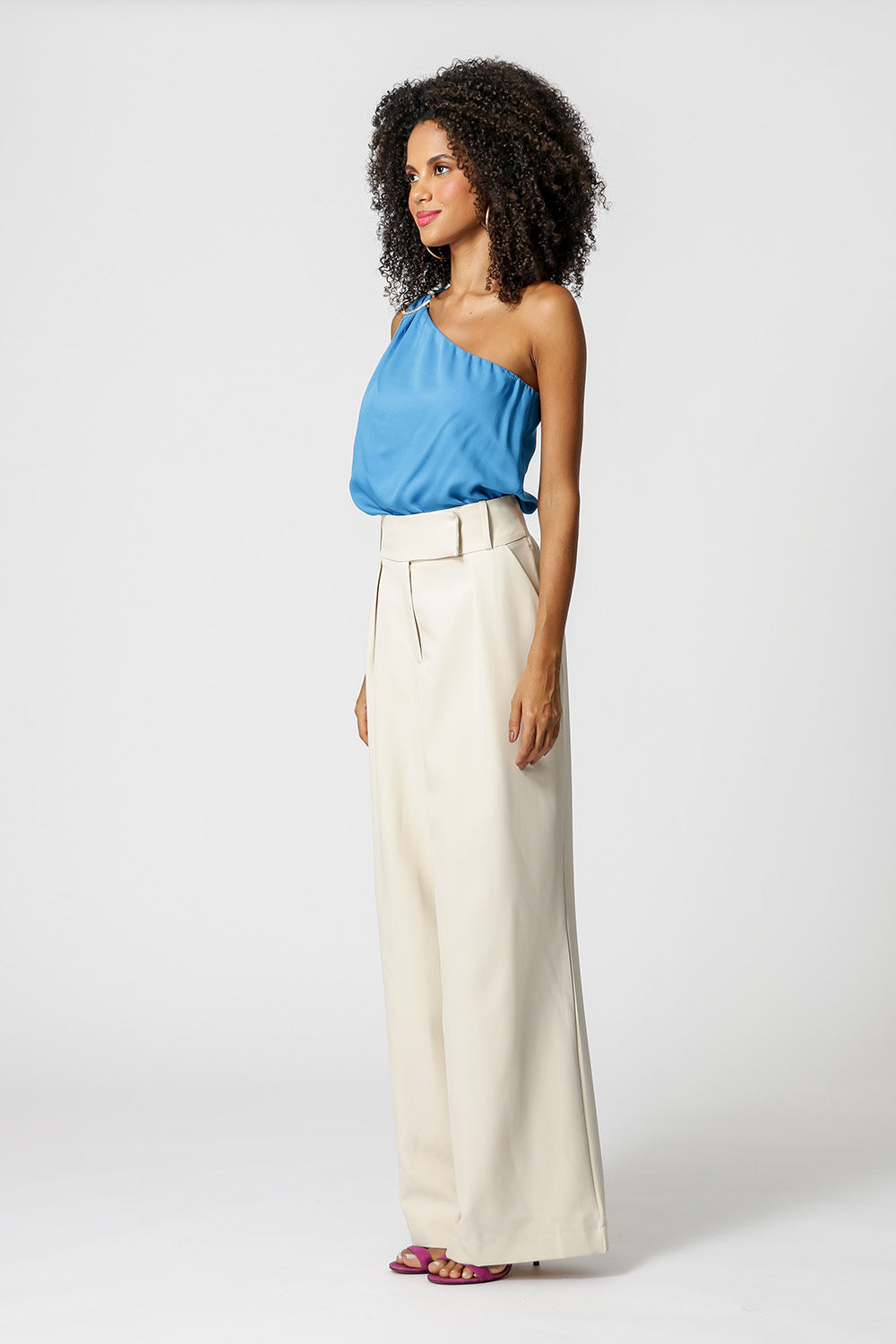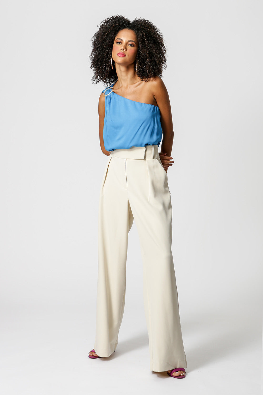 Blusa de un solo hombro con detalle de hebilla metálica. Pieza confeccionada en tejido fluido de viscosa. Un modelo elegante y ligero, perfecto para crear looks casuales para el día a día.