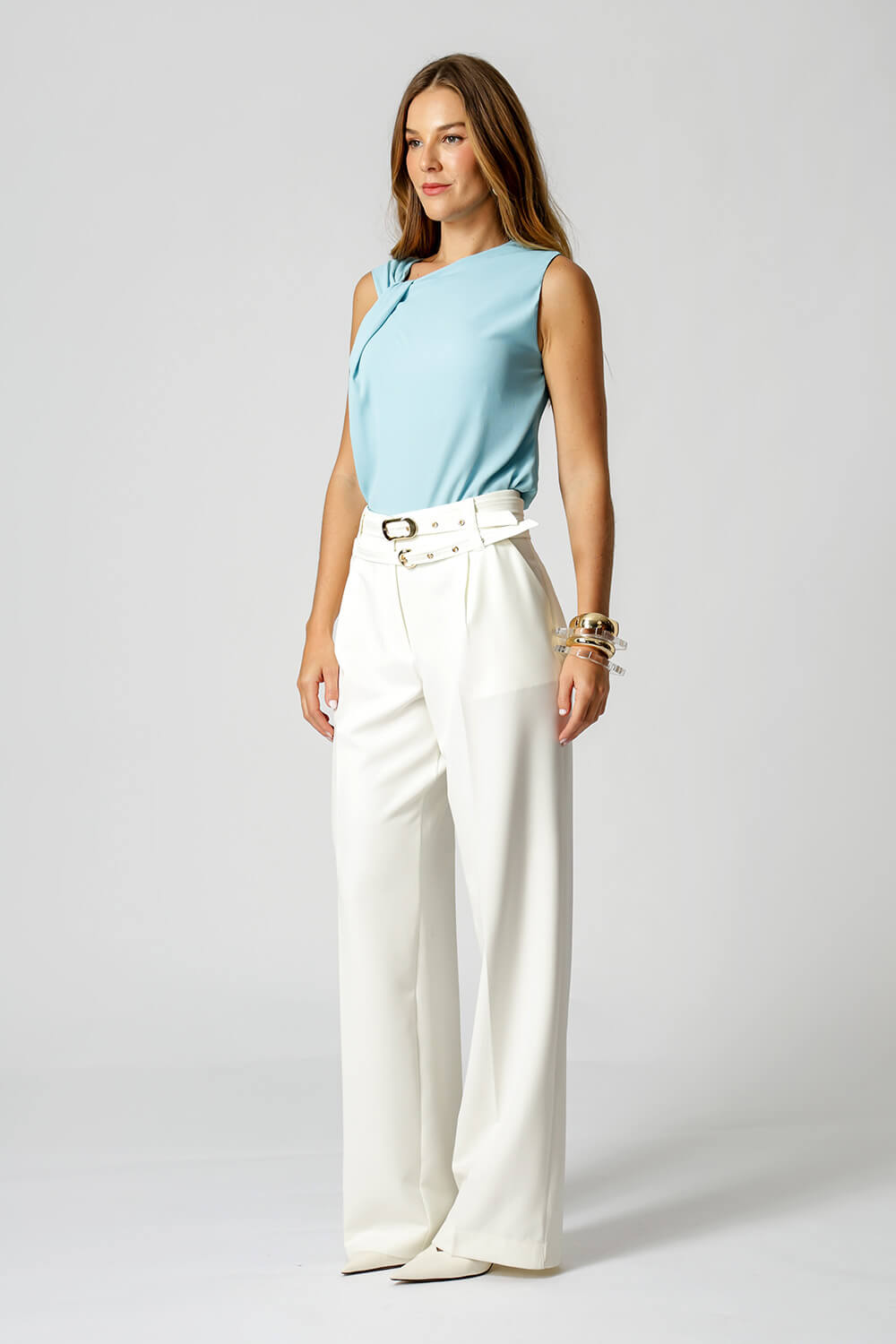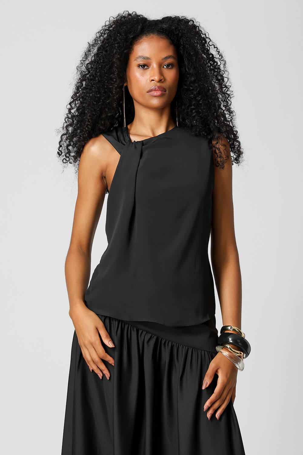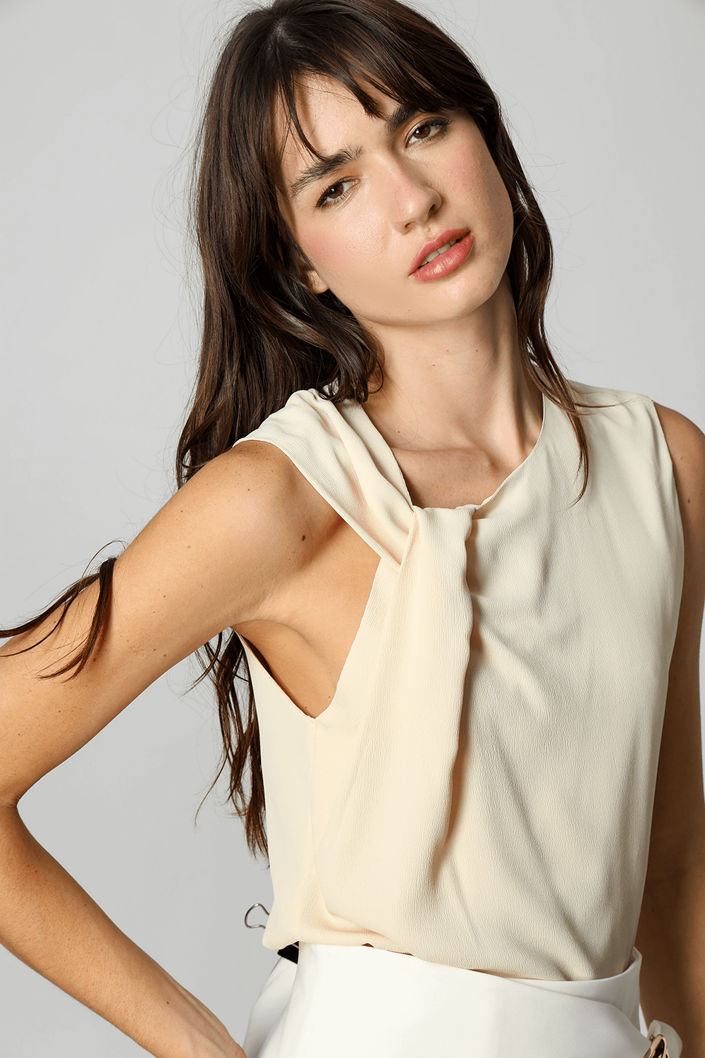 Blusa em Cetim Bubble com pregas diferenciadas e decote assimétrico. Sofisticada e leve, é ideal para produções elegantes com um toque contemporâneo.