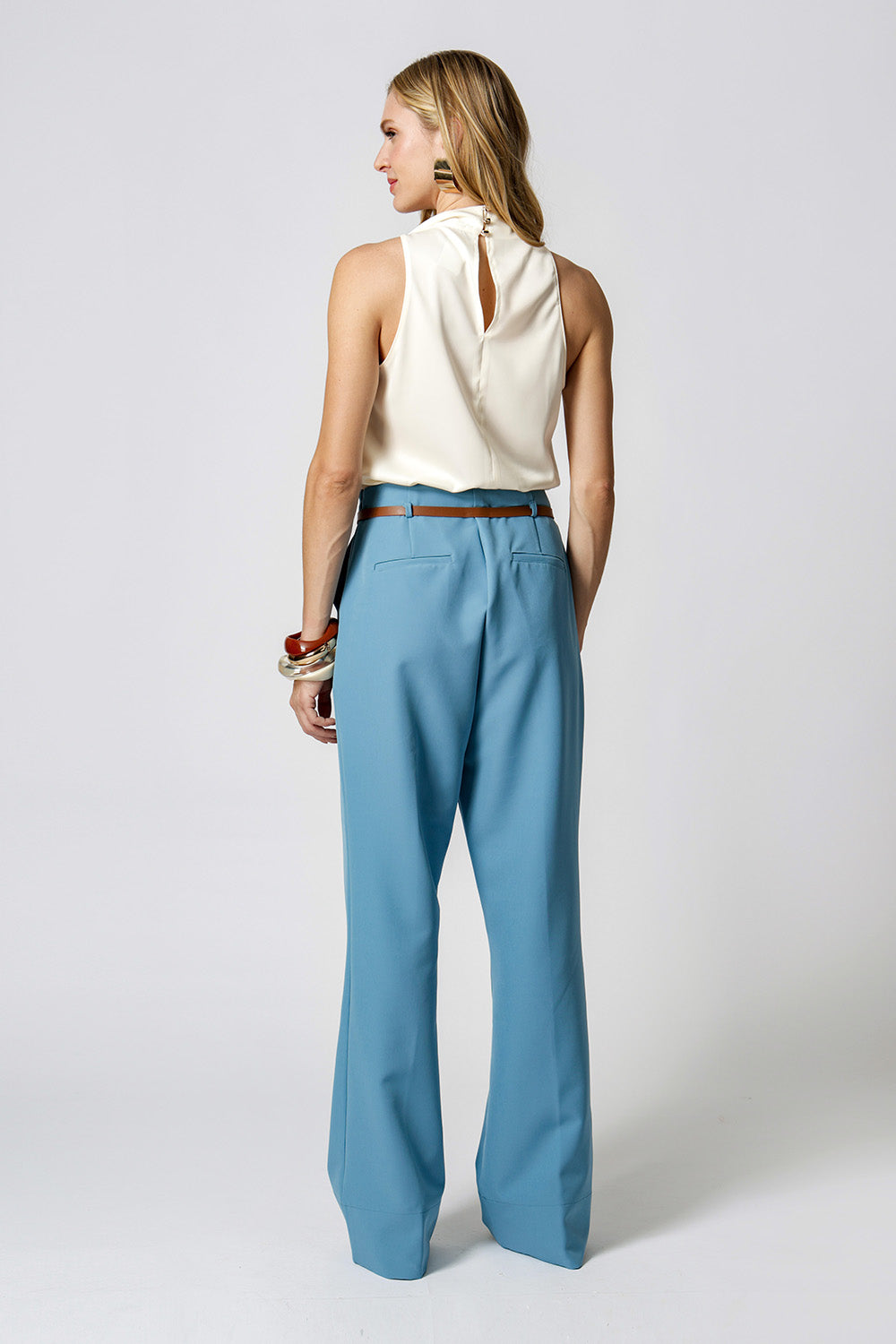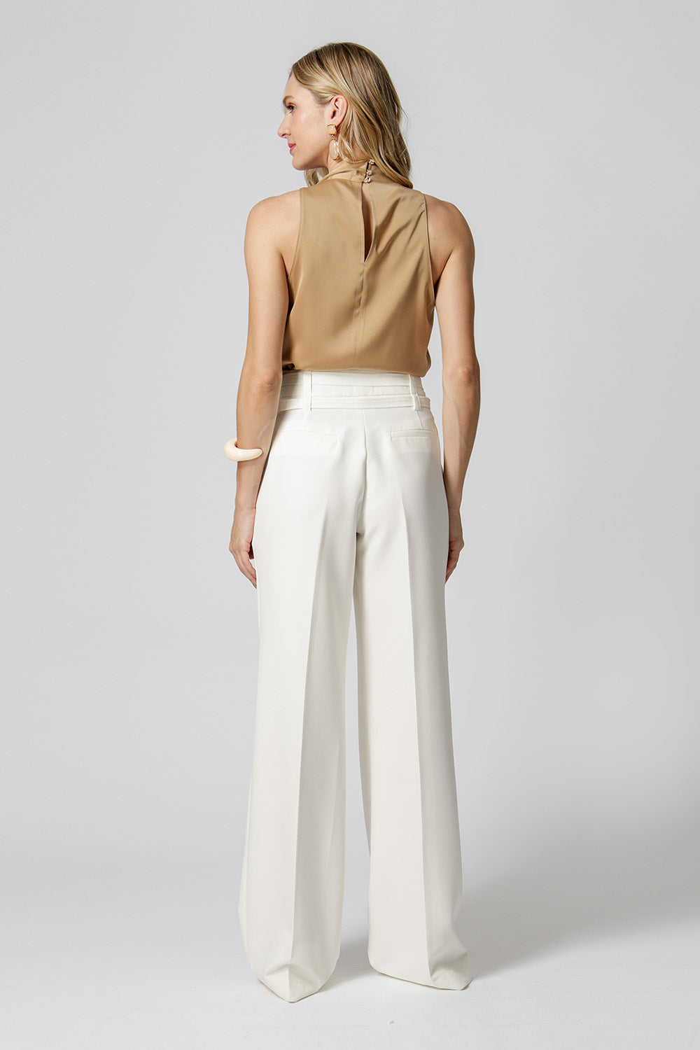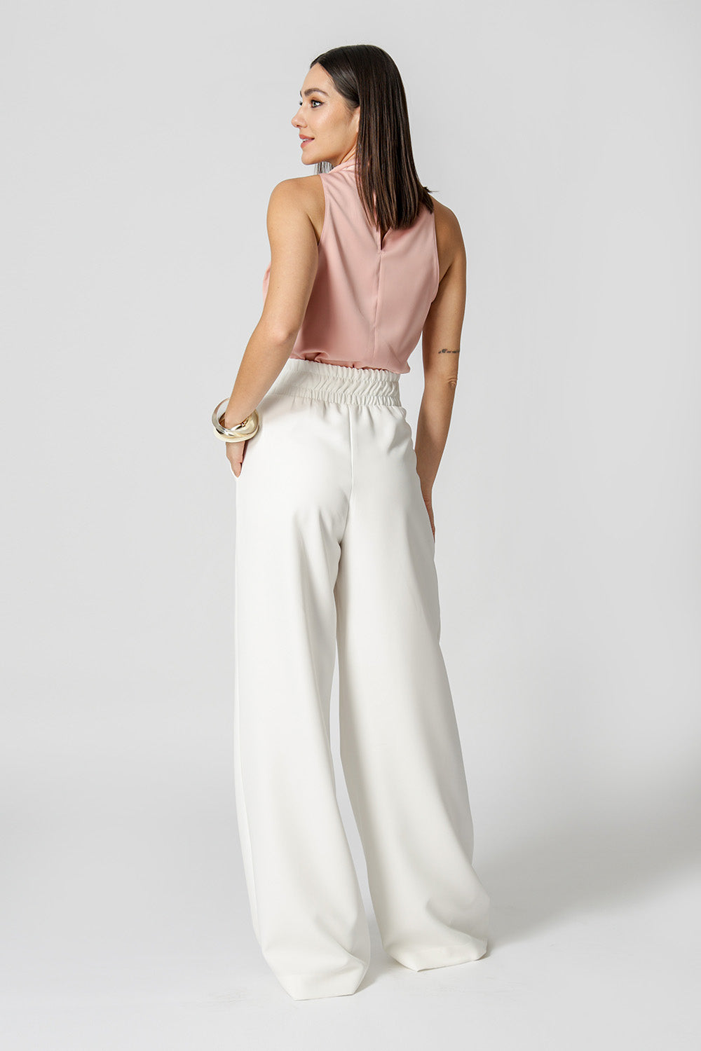 Blusa em cetim com decote drapeado com pregas sobrepostas, que adiciona elegância e sofisticação ao look. Tecido leve, com brilho sutil e toque macio. Ideal para composições modernas e versáteis.