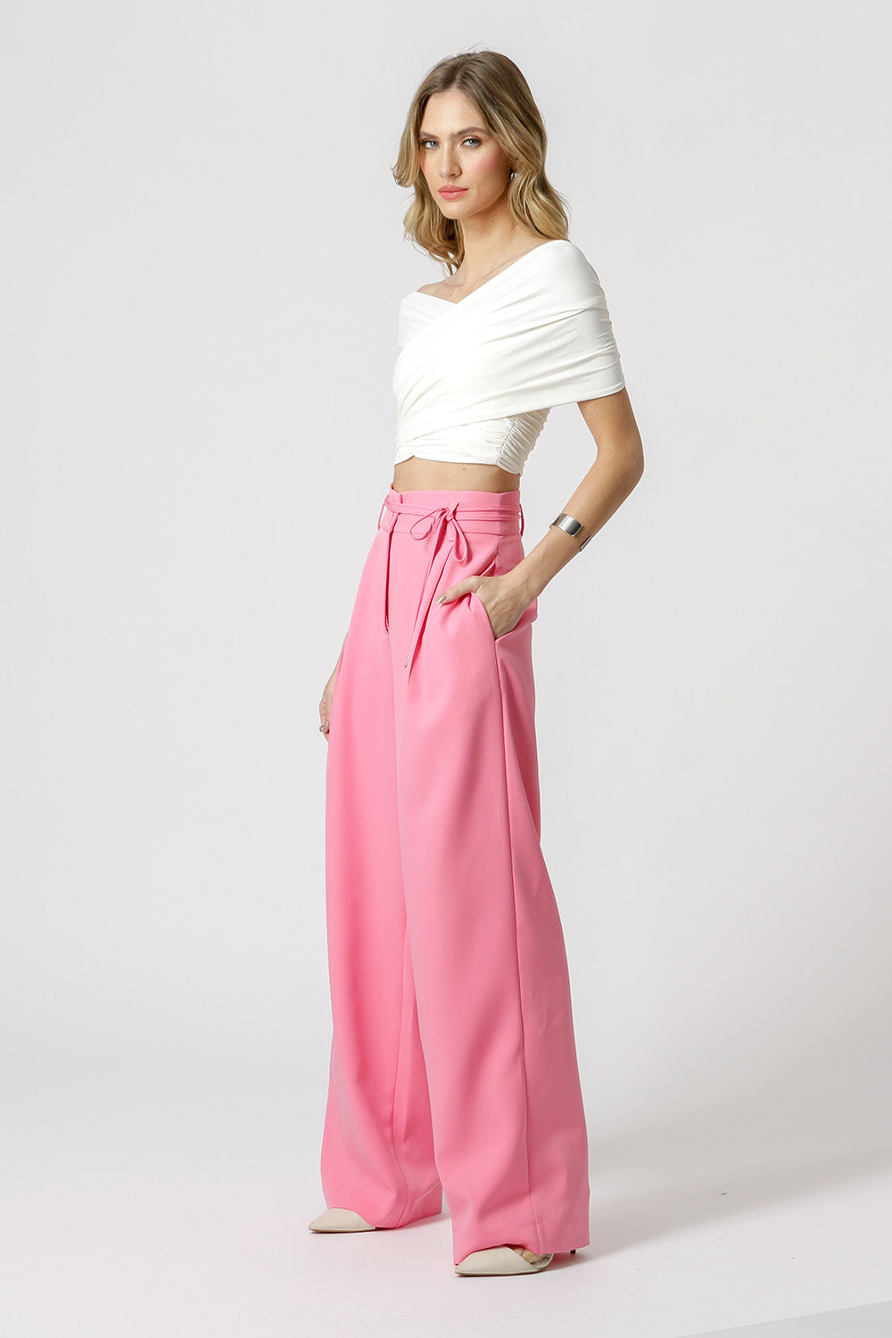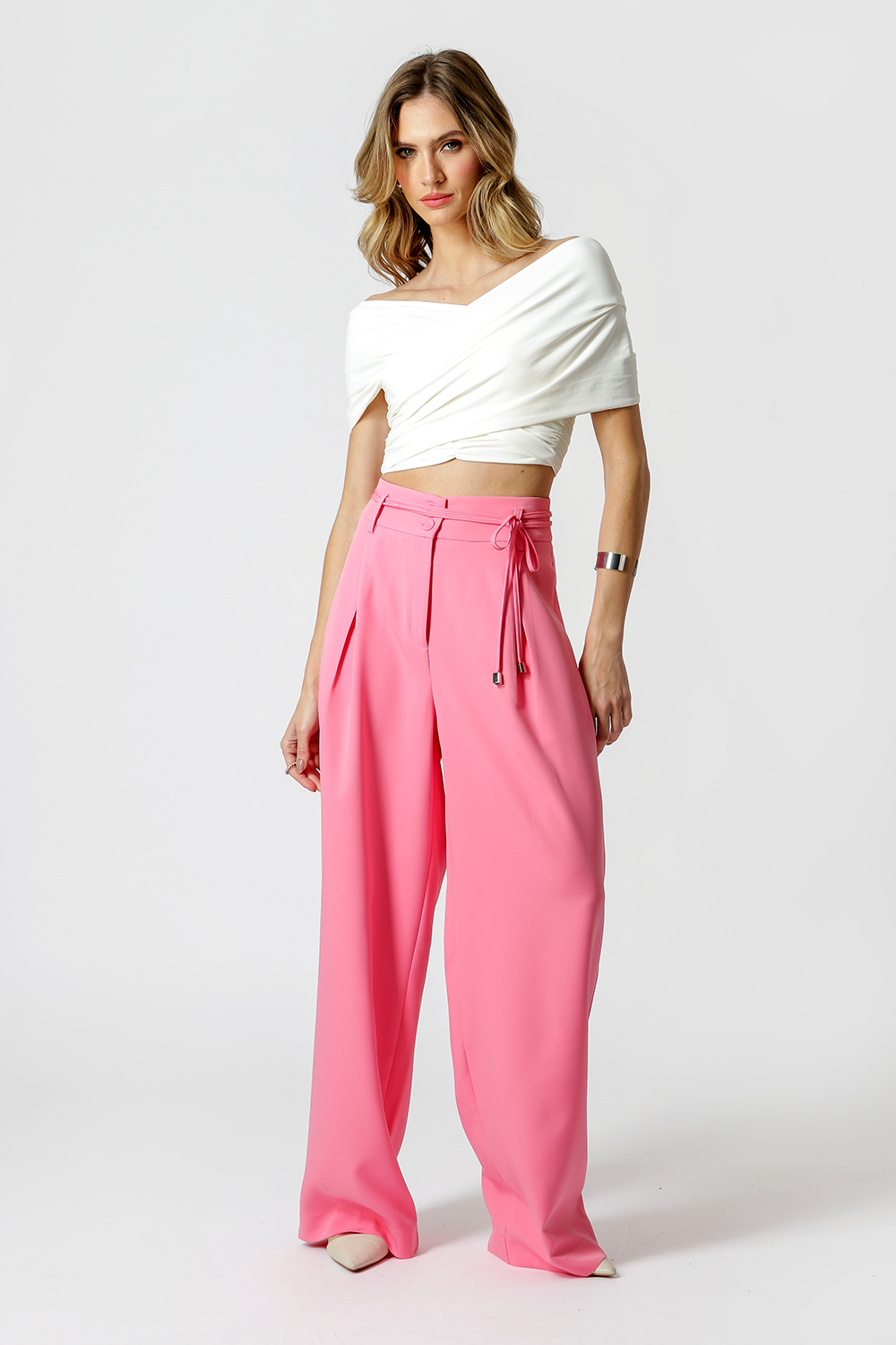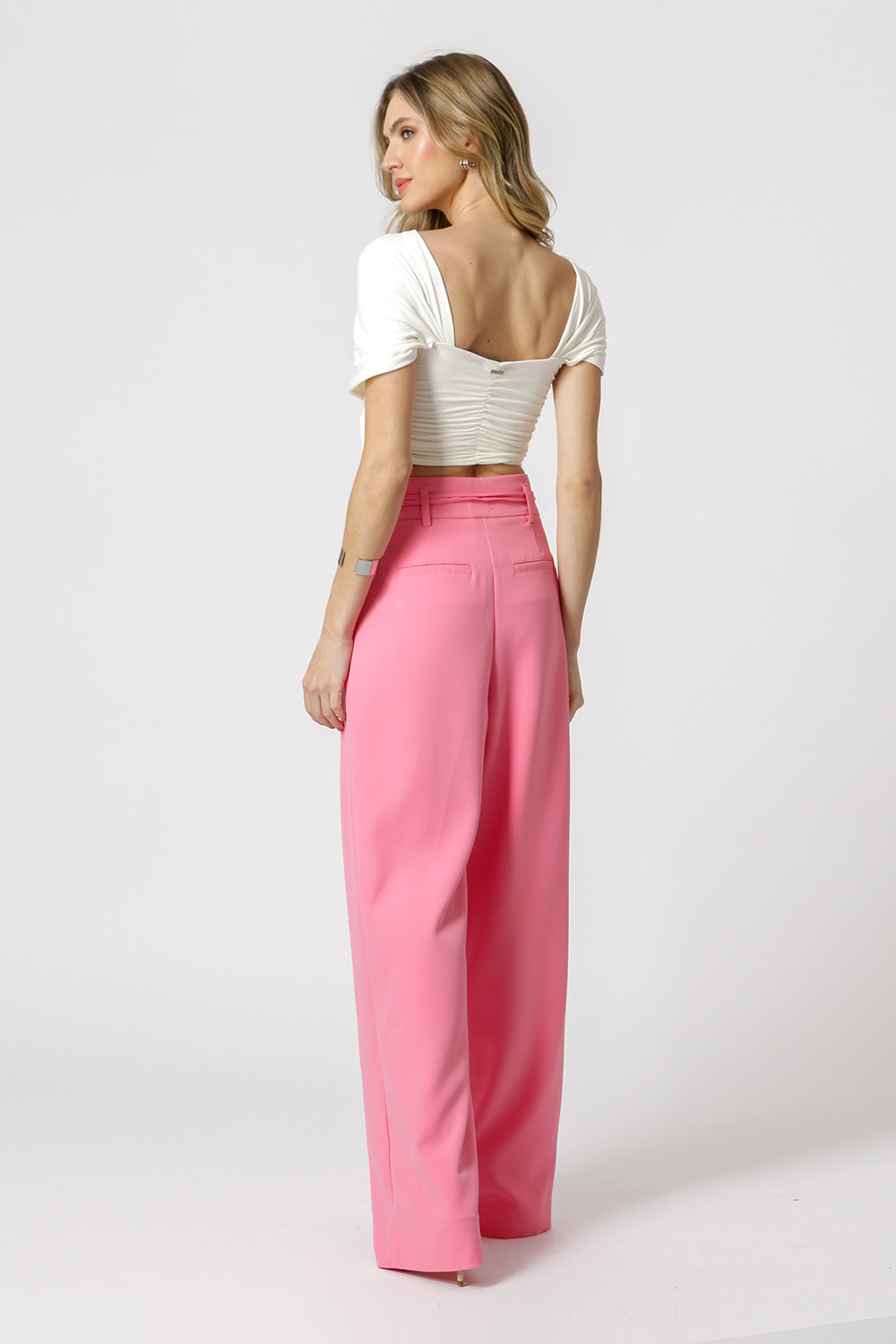 Blusa cropped con tirantes cruzados y fruncidos, confeccionada en tejido Amni. ¡Pieza súper bonita y moderna!