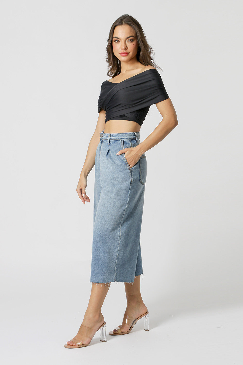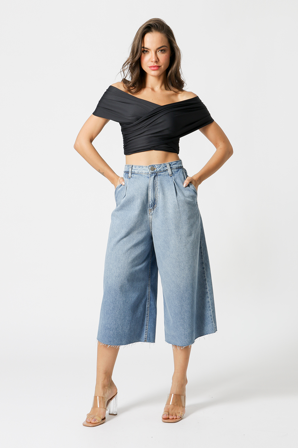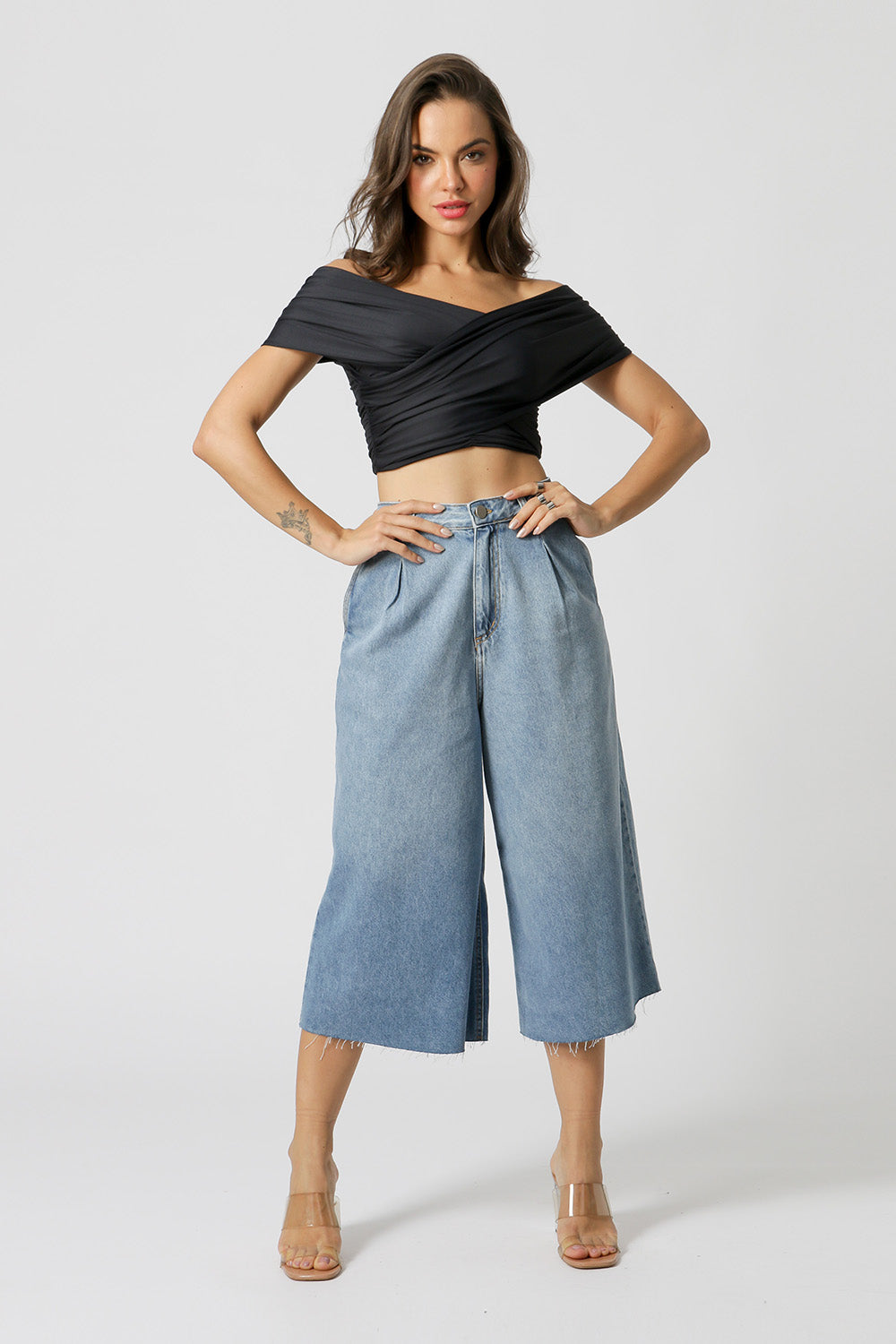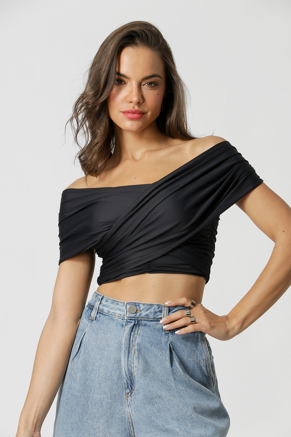 Blusa cropped con tirantes cruzados y fruncidos, confeccionada en tejido Amni. ¡Pieza súper bonita y moderna!