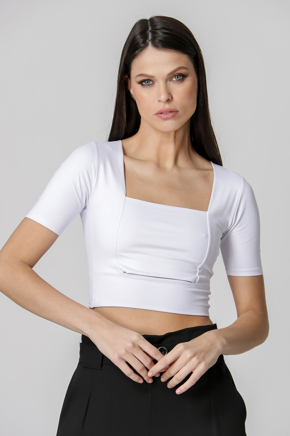 Blusa confeccionada en malla Amni. Con escote cuadrado, manga corta y detalle calado en la parte delantera. Ofrece protección solar, secado rápido y antiolor permanente. ¡Los diferentes básicos que necesitas tener!