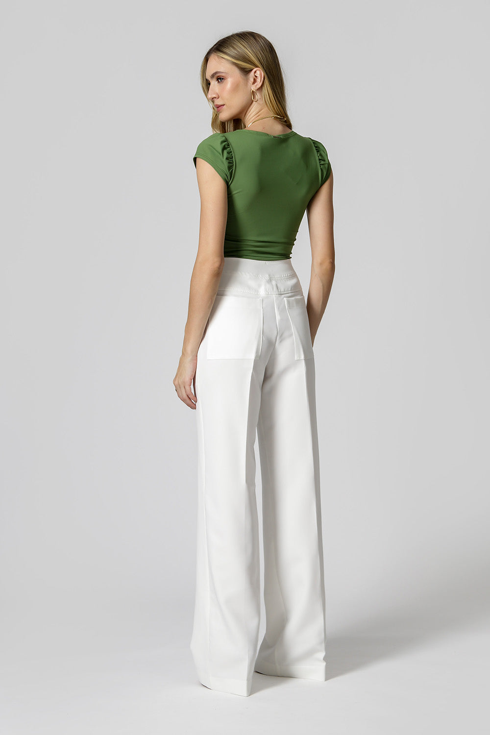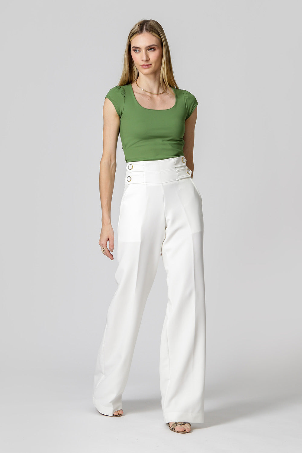 Blusa confeccionada en tejido de poliamida súper cómodo. Tiene un hermoso escote cuadrado y mangas cortas. Una pieza encantadora para complementar muchos looks casuales.