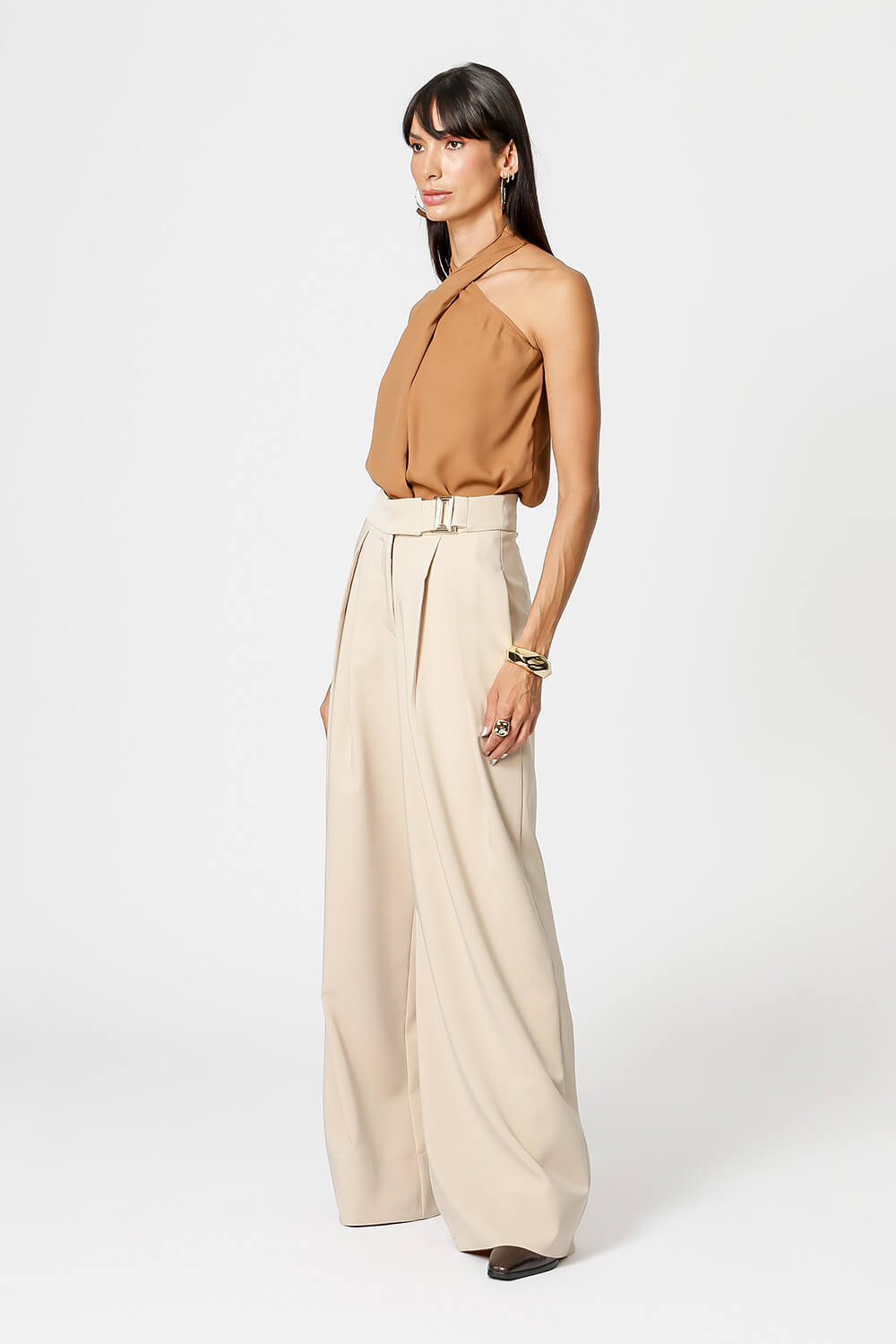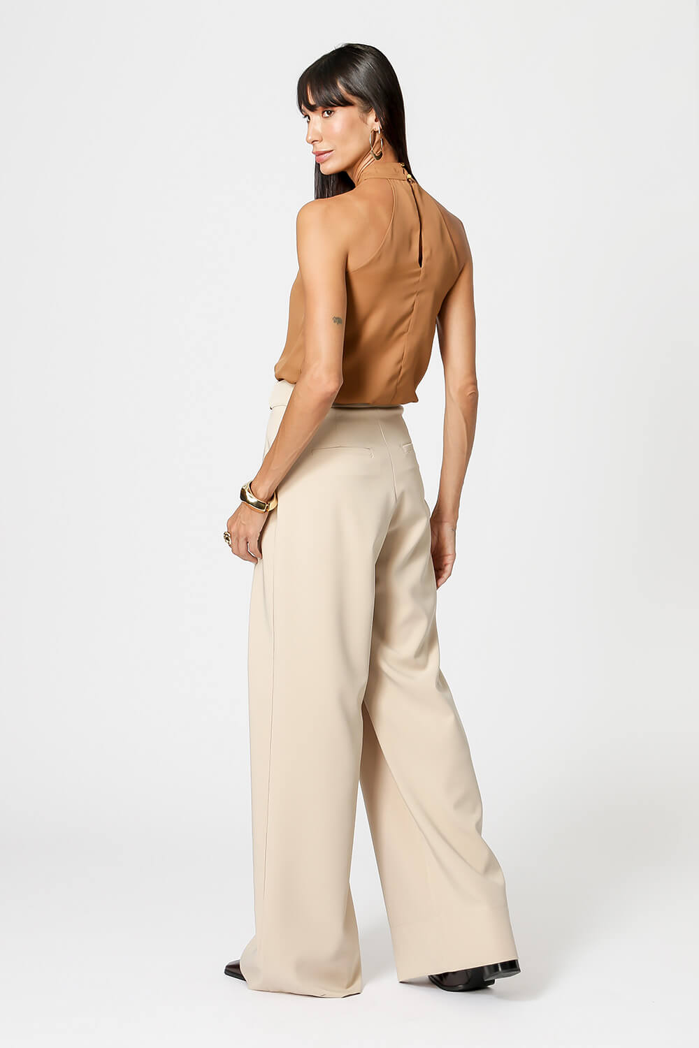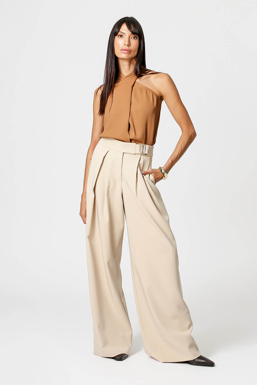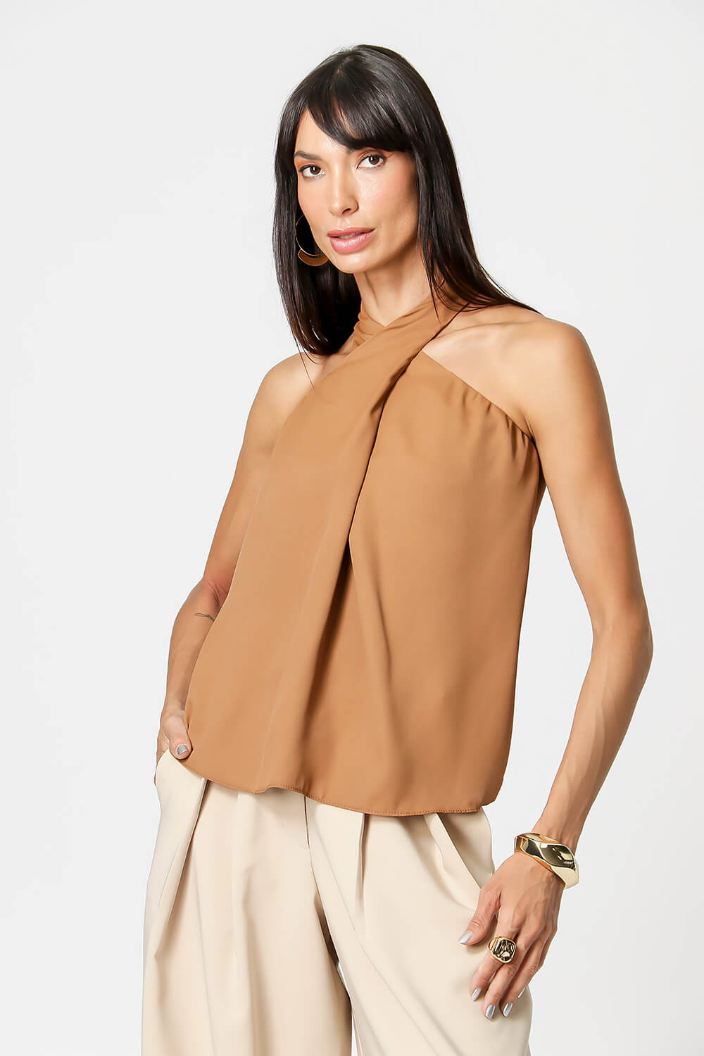 Blusa con escote cruzado y botones en la espalda. Fabricado en tejido crepé de flujo ligero. Un modelo de corte holgado, cómodo para un ambiente laboral.