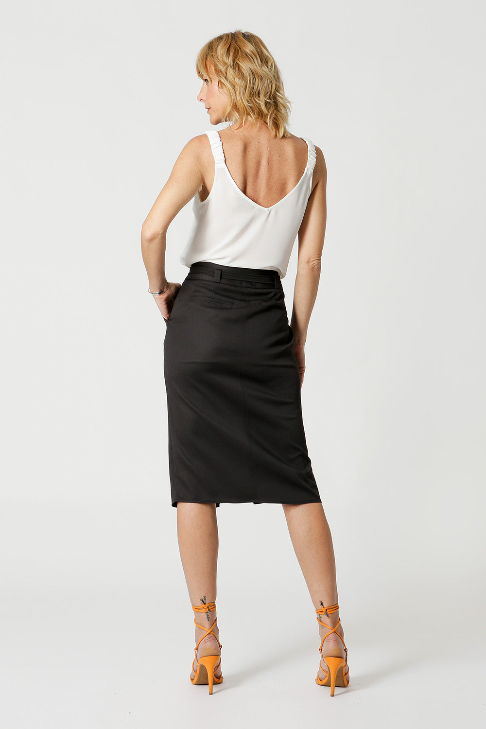 Camiseta de tirantes confeccionada en crepe fluido. Tiene tirantes anchos con elástico incorporado que crean varios frunces y un bonito escote en pico en la parte delantera y trasera. Una pieza no básica que faltaba en tu armario.