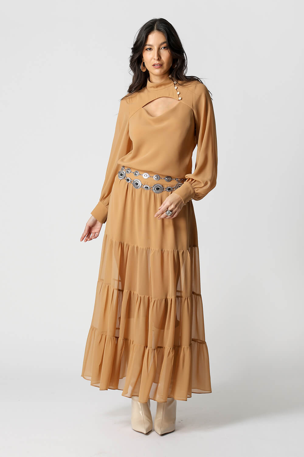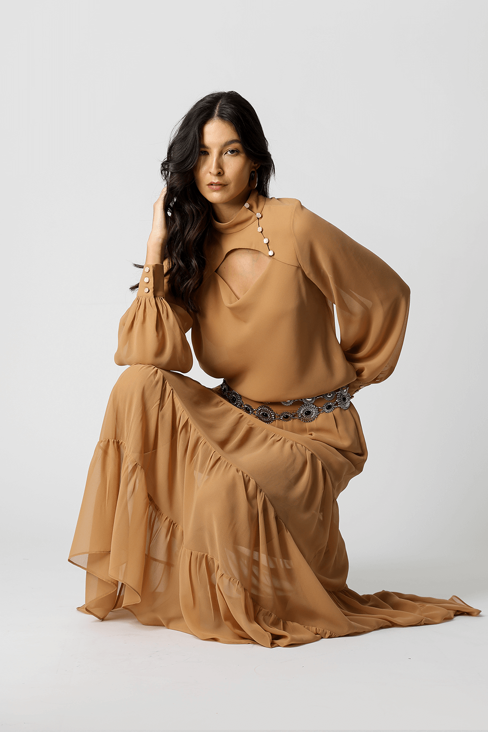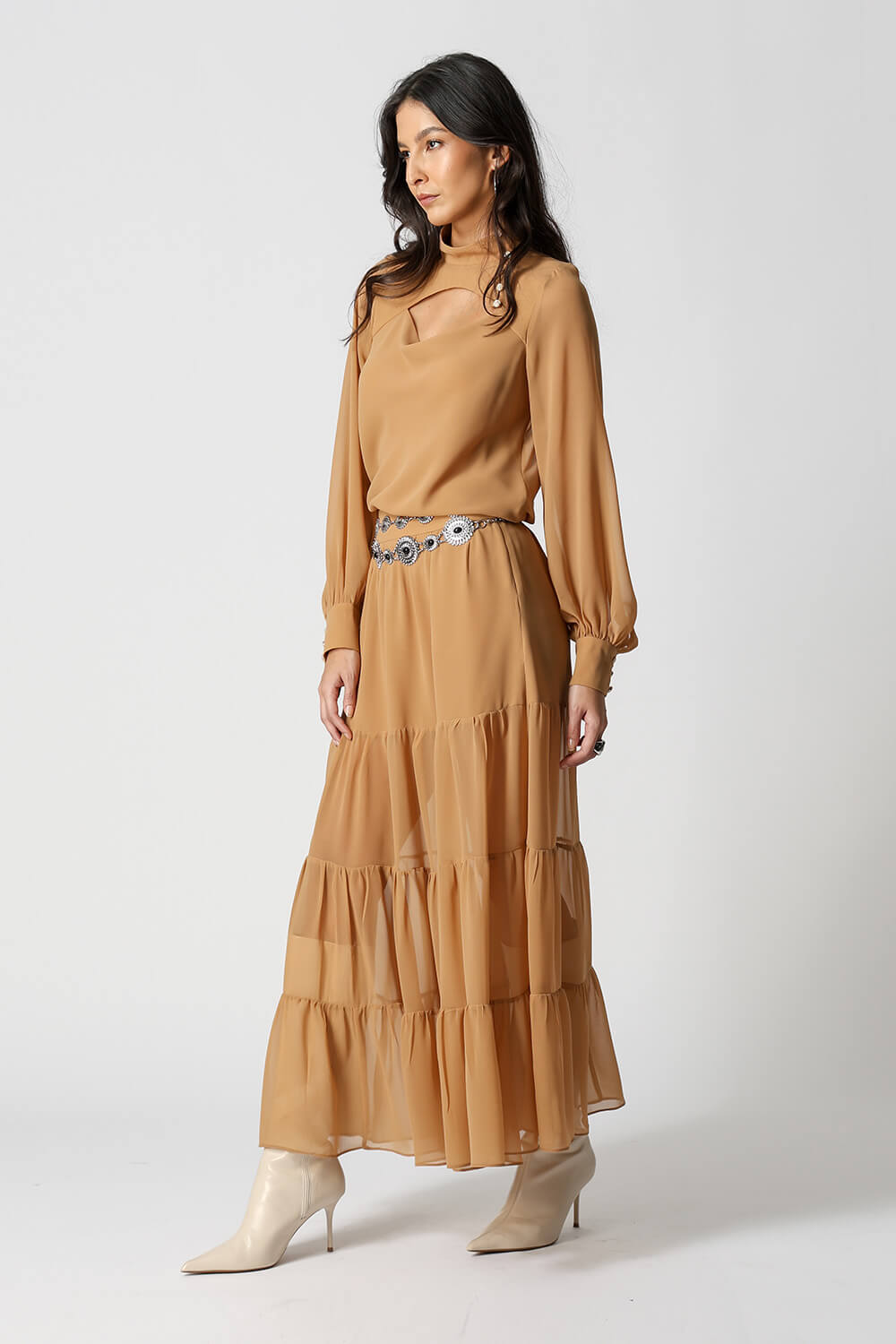 Blusa com caimento leve e toque sofisticado, possui mangas longas bufantes com punhos ajustados por botão, que trazem volume na medida certa. O destaque fica por conta da abertura frontal degagê com botões, que adiciona um charme extra ao visual. Ideal para compor looks elegantes e versáteis, do dia a dia a ocasiões especiais.