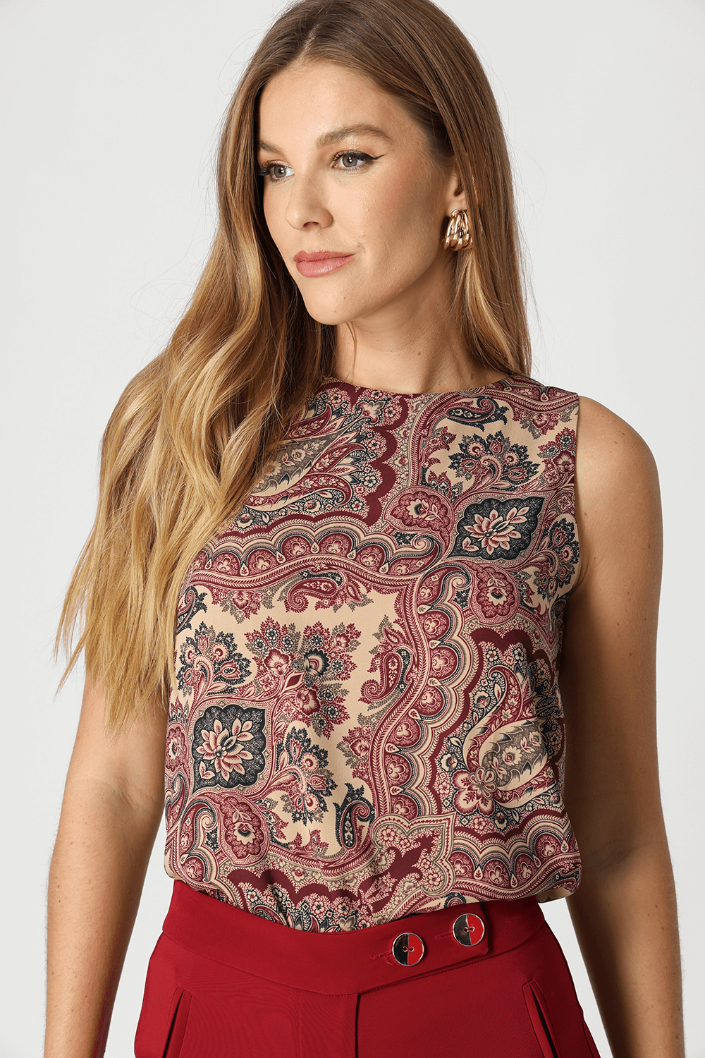 Blusa sem manga confeccionada em crepe fluido premium, leve e com ótimo caimento. Estampa moderna que traz charme e versatilidade para composições casuais ou elegantes. Ideal para dias quentes com estilo.