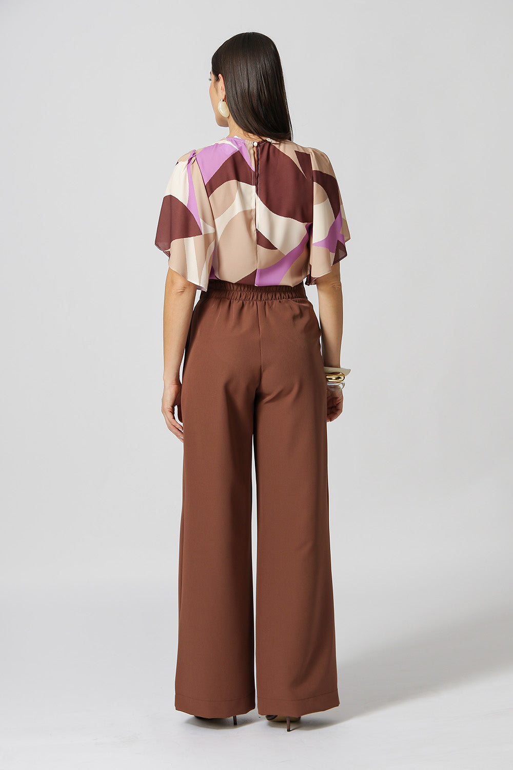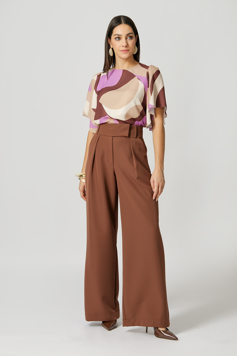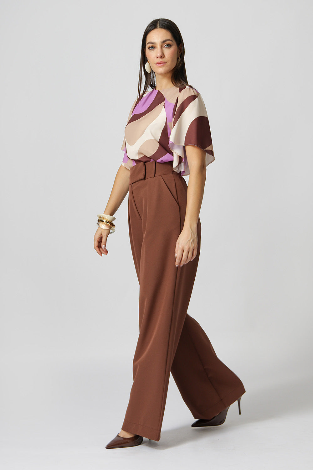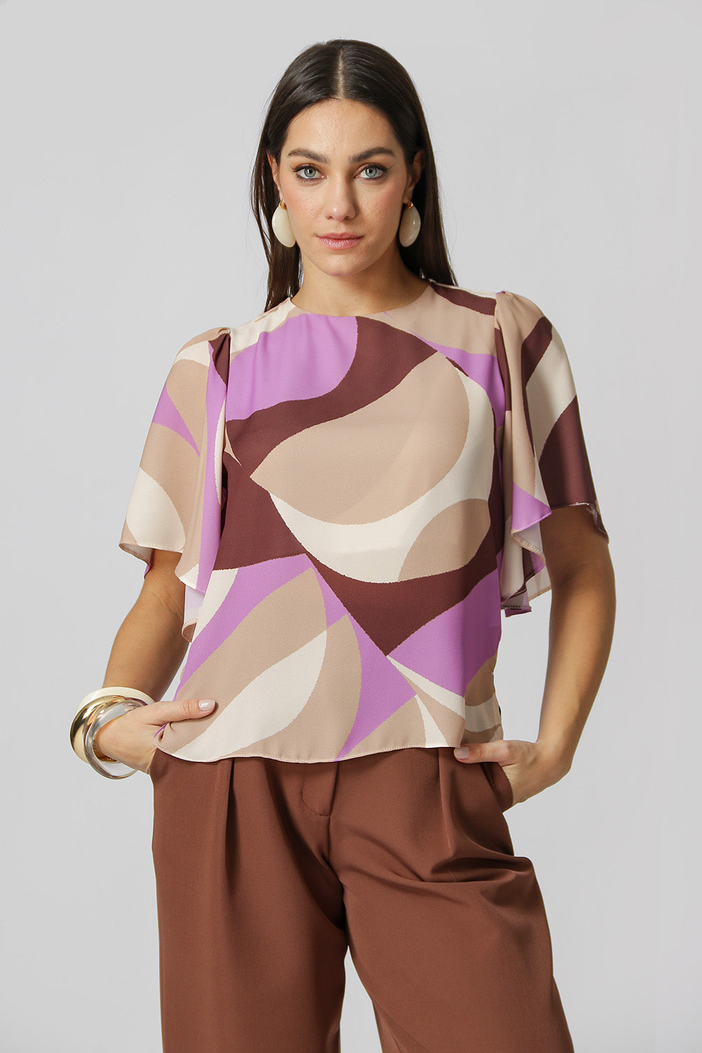 Blusa em crepe leve com estampa delicada e mangas angel, que trazem movimento e feminilidade ao look. Perfeita para composições elegantes e cheias de charme.
