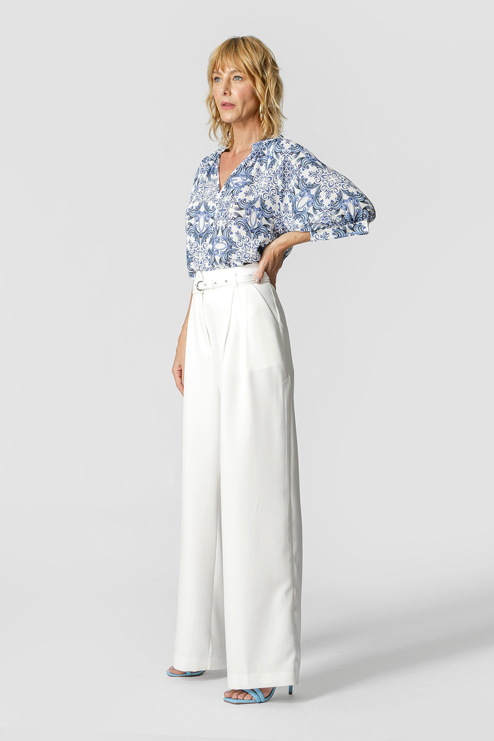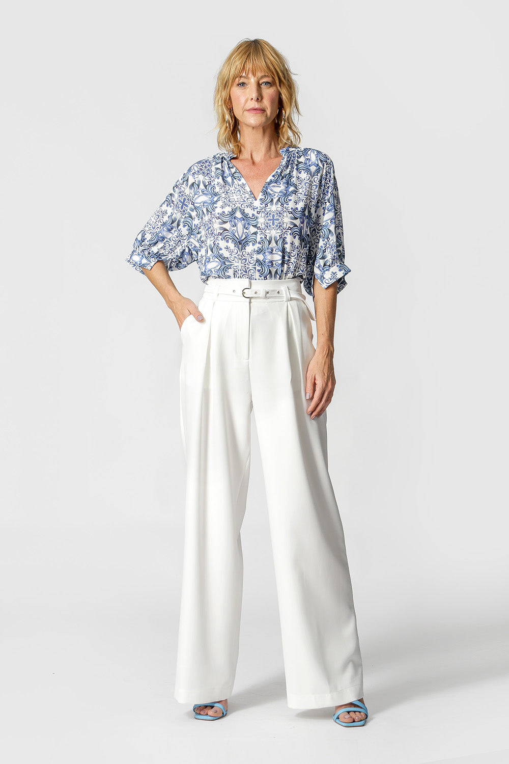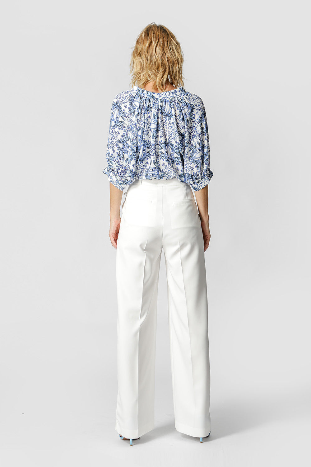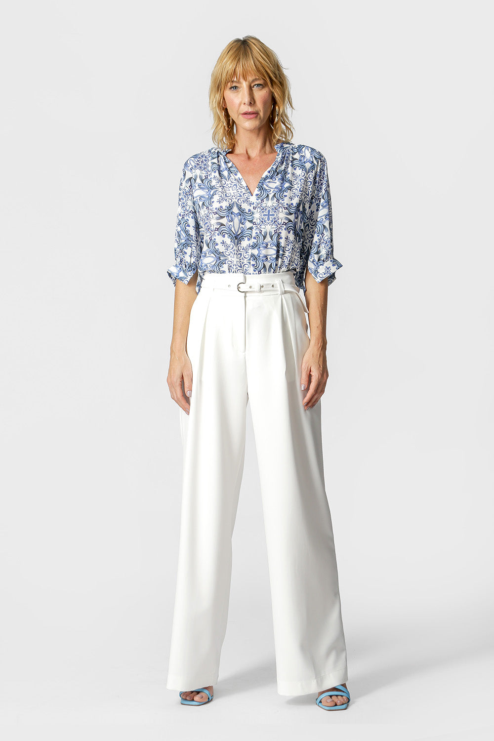 Blusa confeccionada en crepe estampado, de corte más holgado, tiene cuello americano y sisa. Detalle fruncido y puño con abertura. Una prenda esencial y versátil que se puede coordinar con todo tu guardarropa.