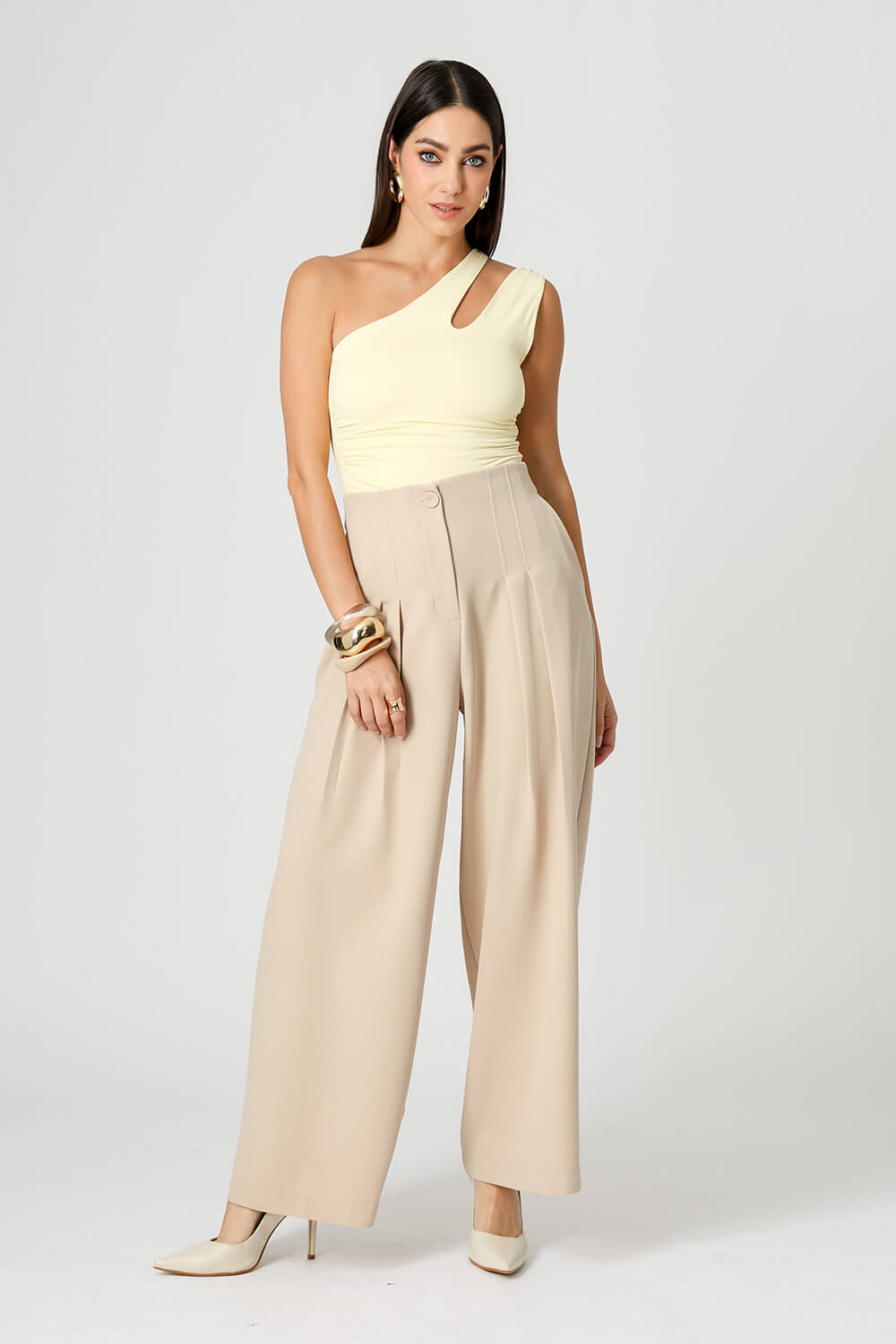 Blusa franzida com abertura no ombro, confeccionada em malha amni. Uma peça coringa para compor os looks do dia a dia.