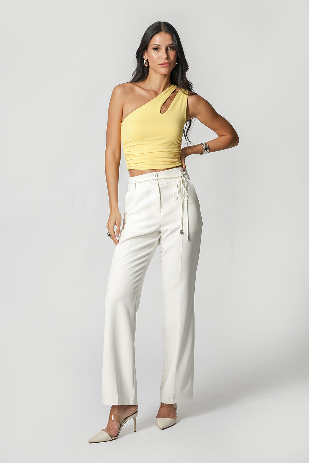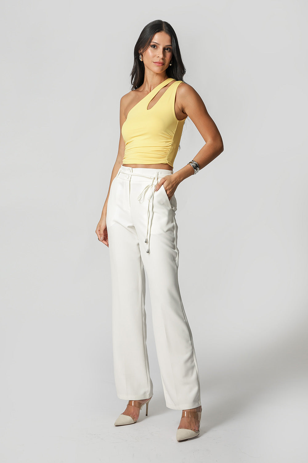 Modelo de blusa de un solo hombro