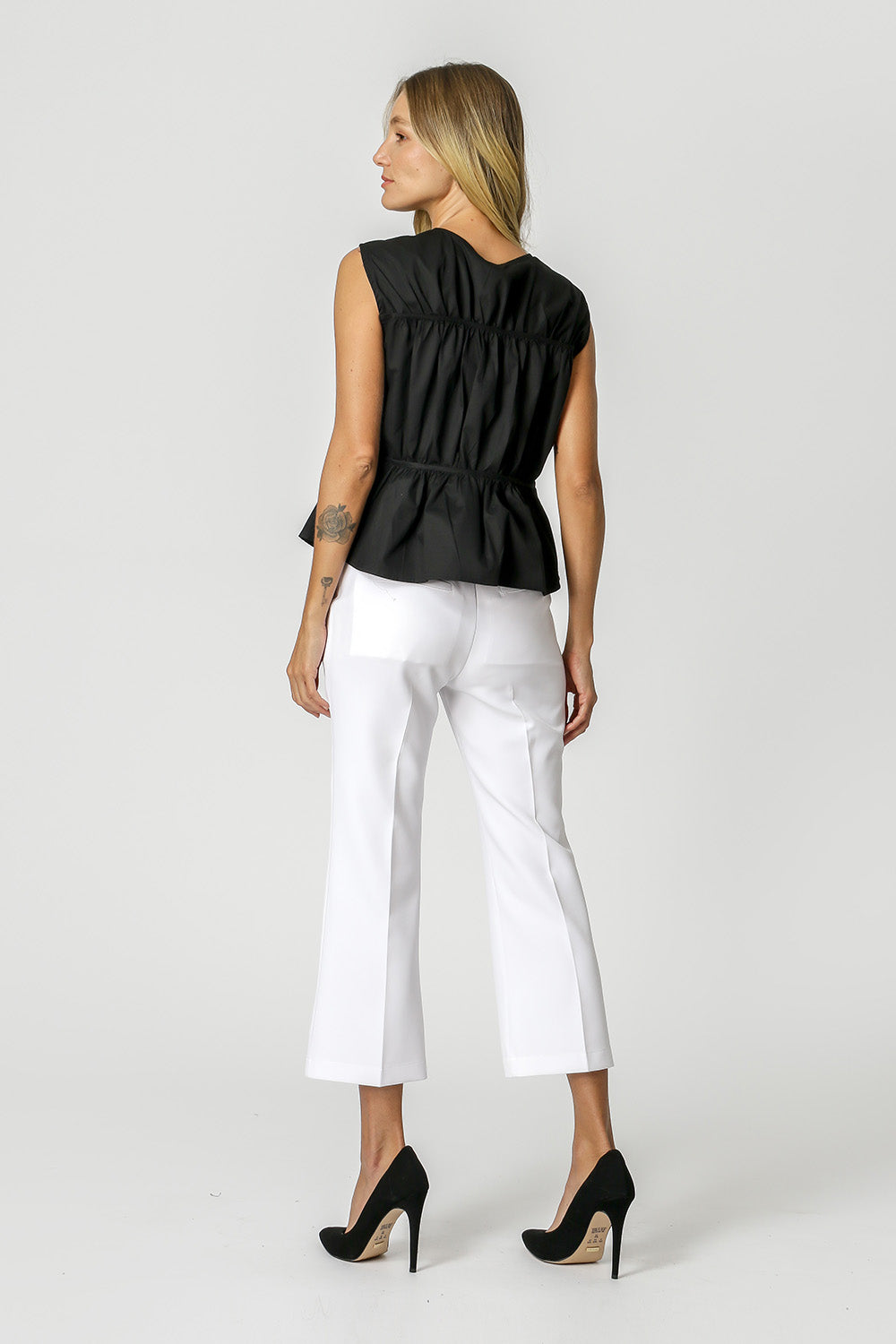 Blusa escote pico con detalles fruncidos fijos. Fabricado en popelina. Pieza moderna que le dará un toque diferente a tu look.