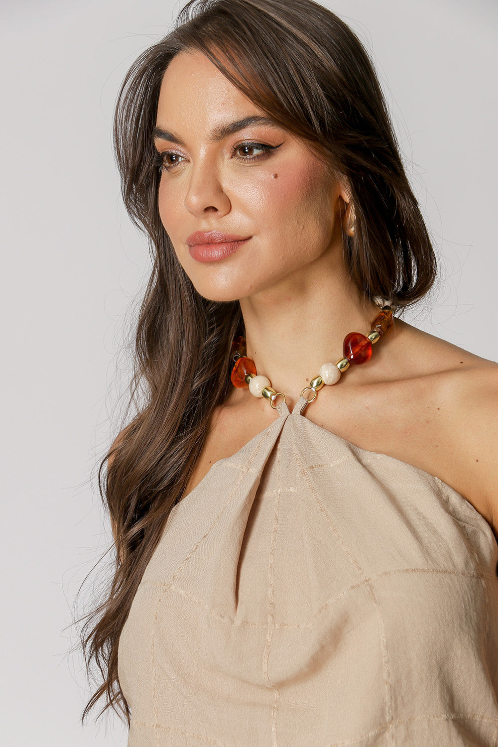 Blusa halter con piedras de resina, modelo ideal para disfrutar del verano, ¡apuesta por ella!