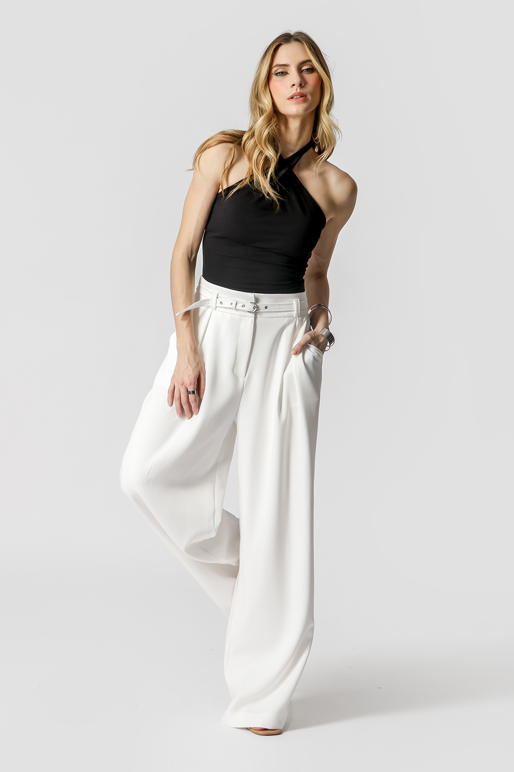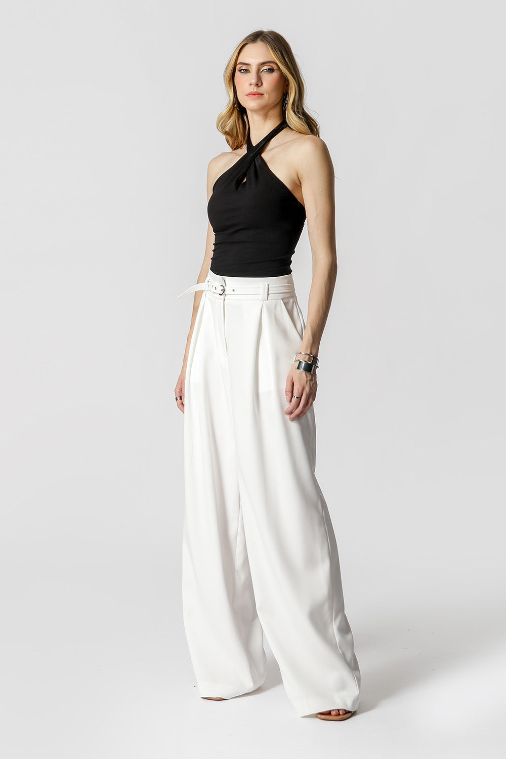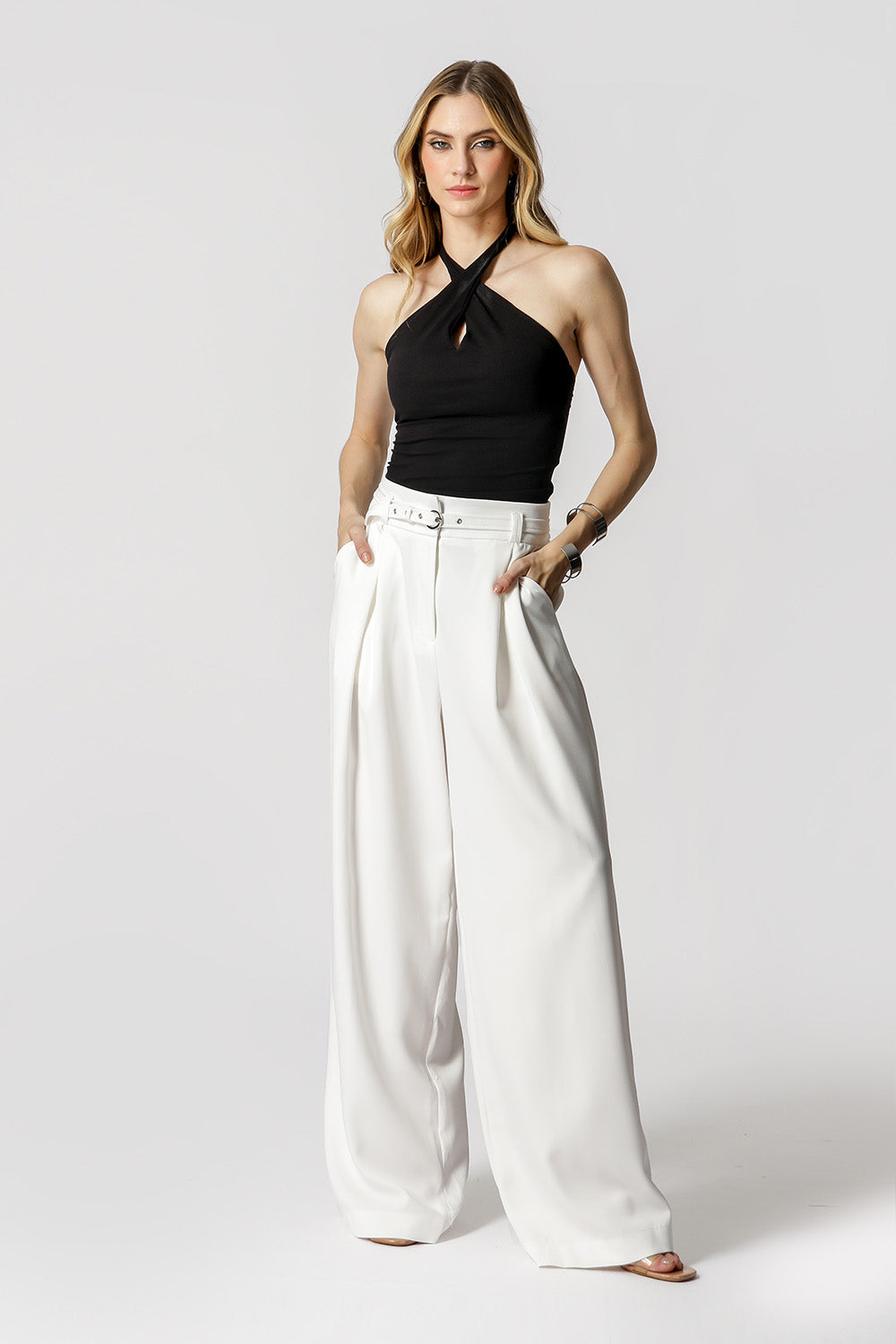Blusa escote halter con relleno y elástico en la espalda. Fabricado en tejido de canalé fino. Un modelo básico para combinar con diversos looks casual.