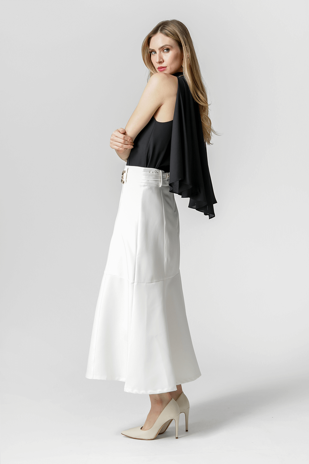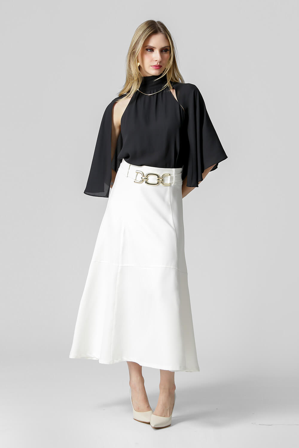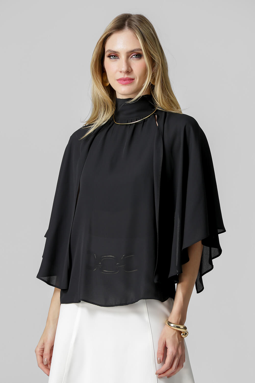 Blusa de cuello alto con capa. Pieza moderna para tu entorno de trabajo