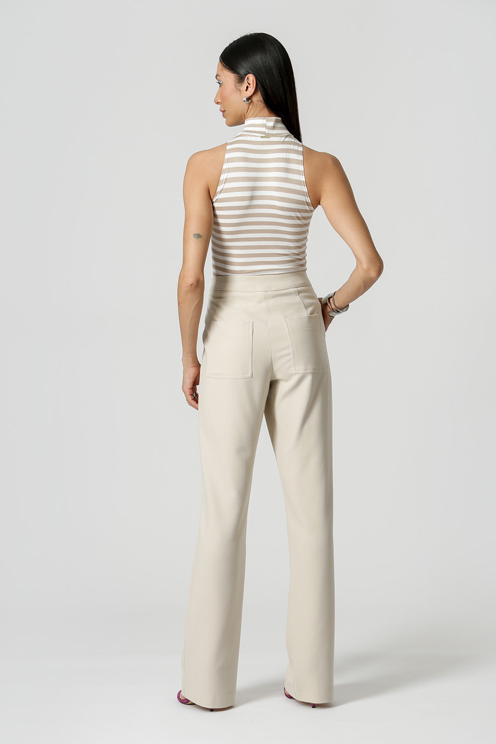 • Blusa de cuello alto a rayas - BEIGE 90142