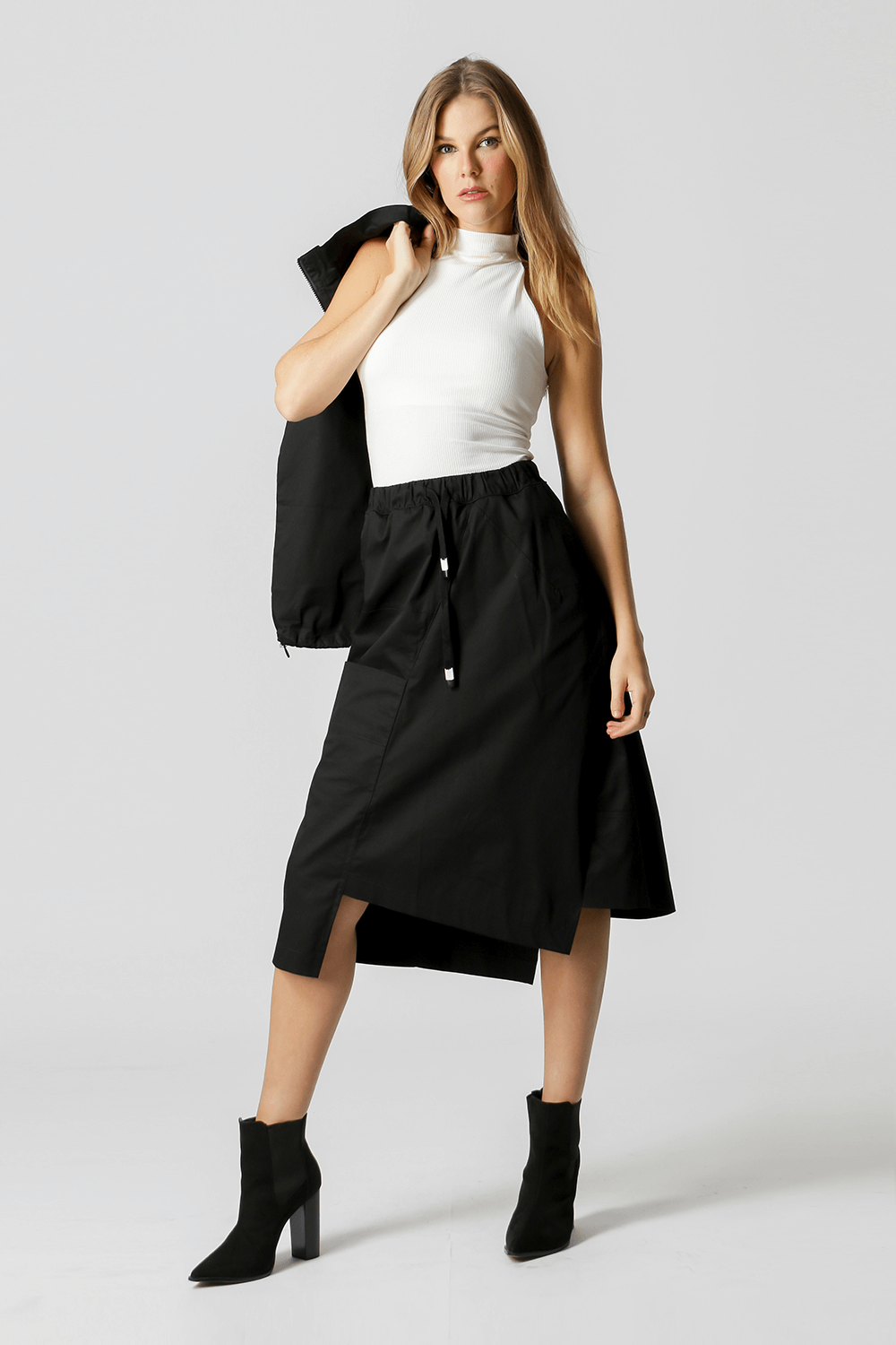 Blusa de corte recto con cuello sin costuras, confeccionada en punto canalé. Pieza imprescindible para confeccionar tus looks invernales.
