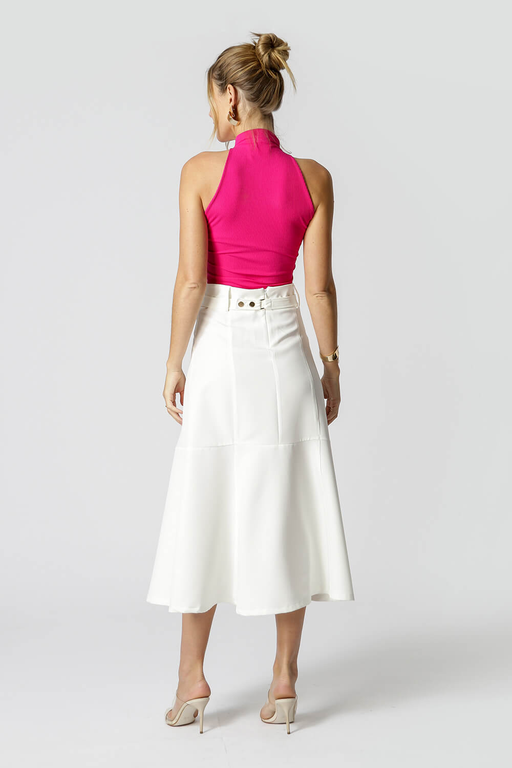 Blusa de corte recto con cuello sin costuras, confeccionada en punto canalé. Pieza imprescindible para confeccionar tus looks invernales.