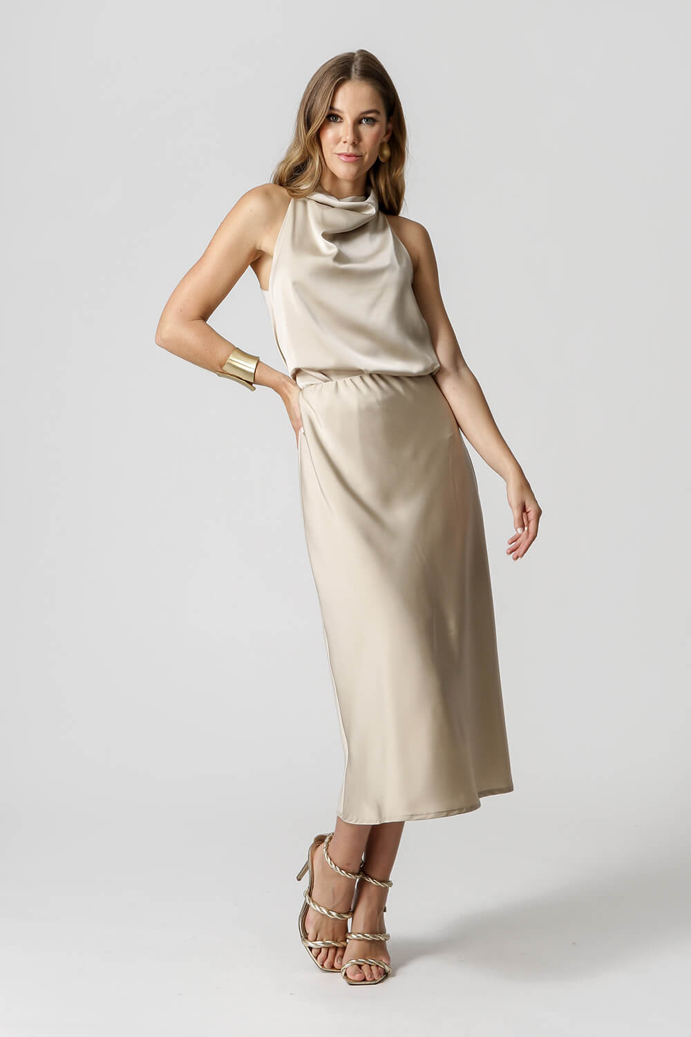 Blusa Cuello Degagé. Una pieza realizada en satén. Pieza con información de moda actual y moderna.