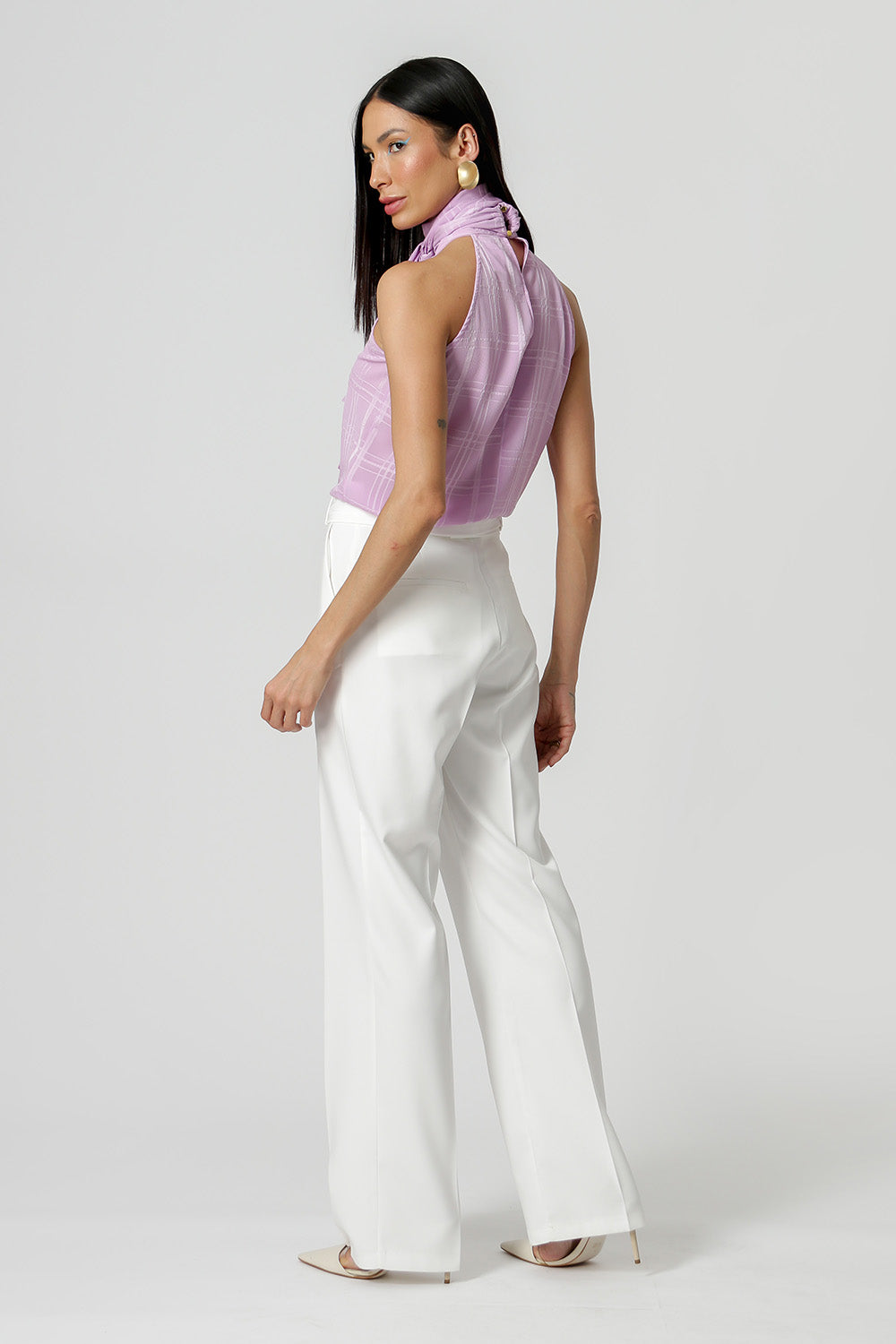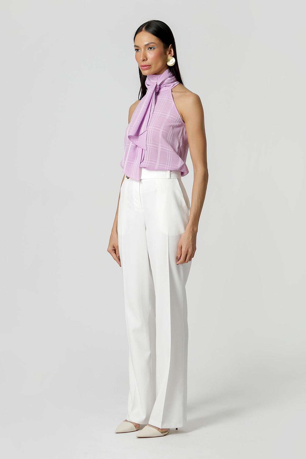 Blusa confeccionada en cuadros devoré, con lazo en el cuello y botones. Pieza que realza la silueta femenina.