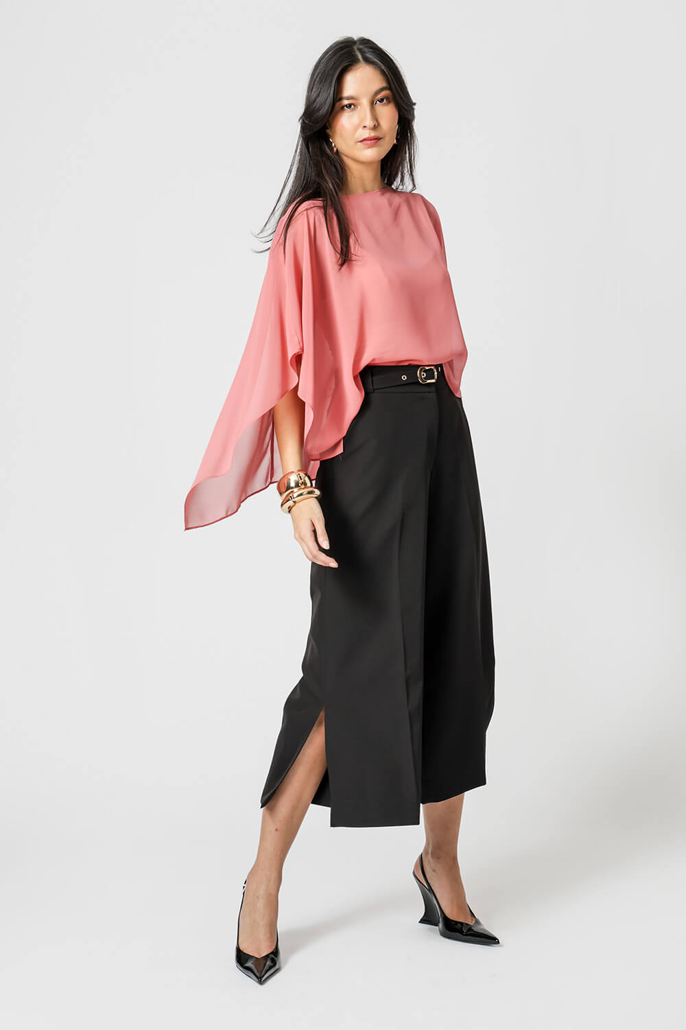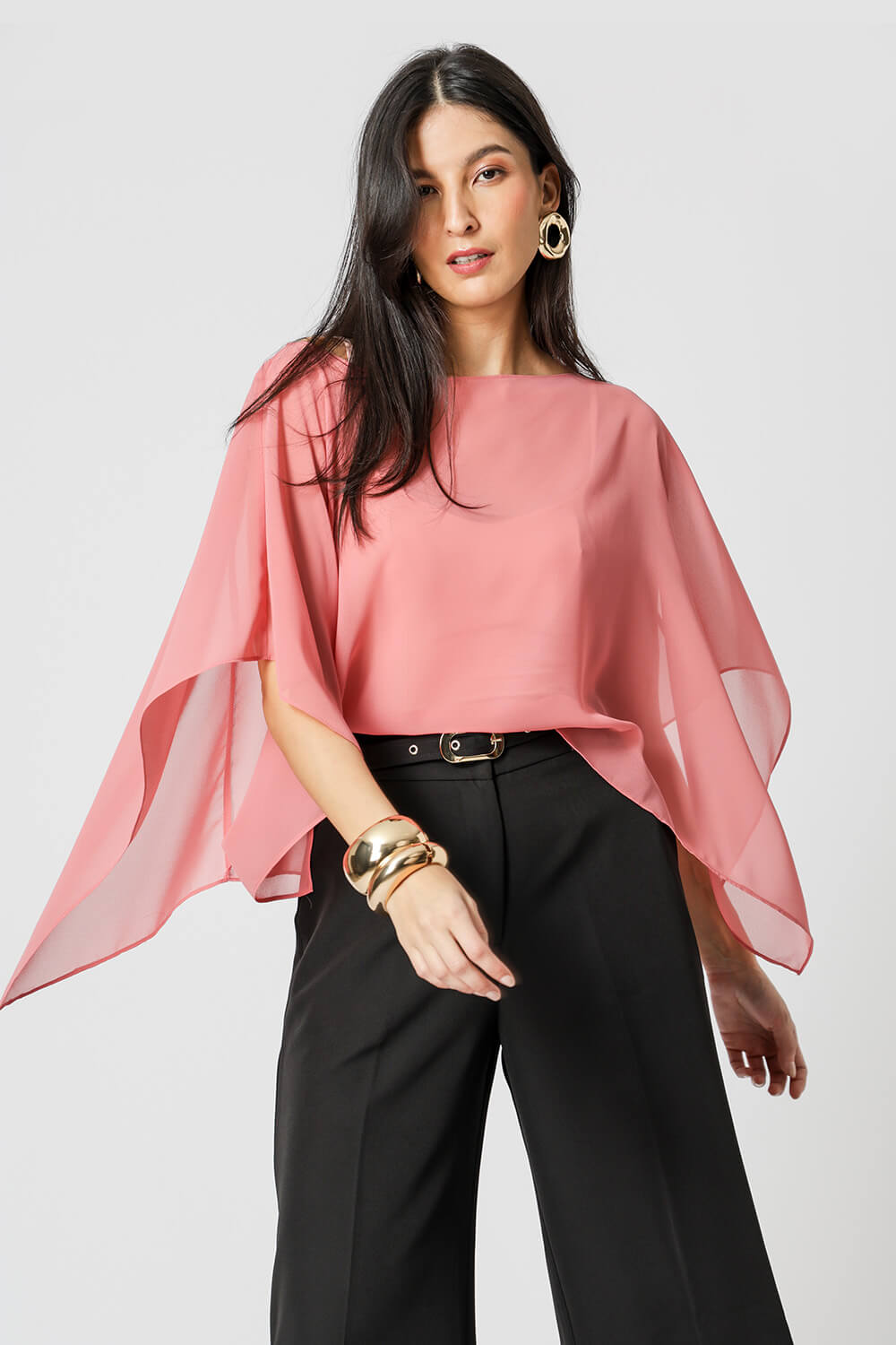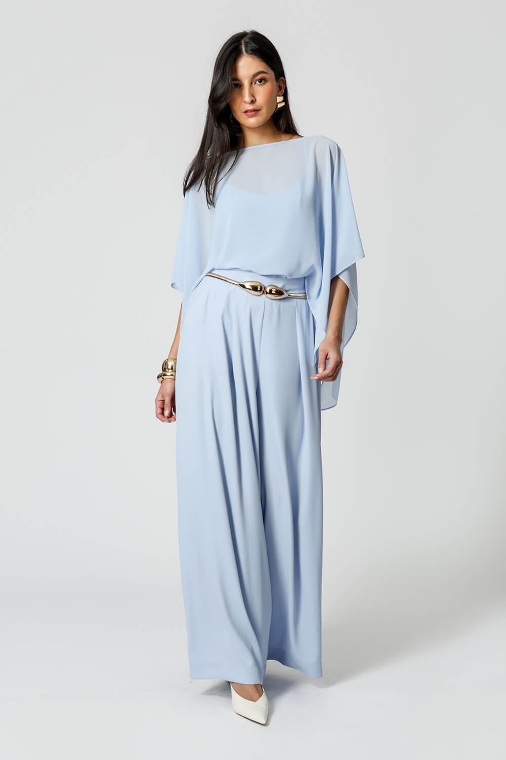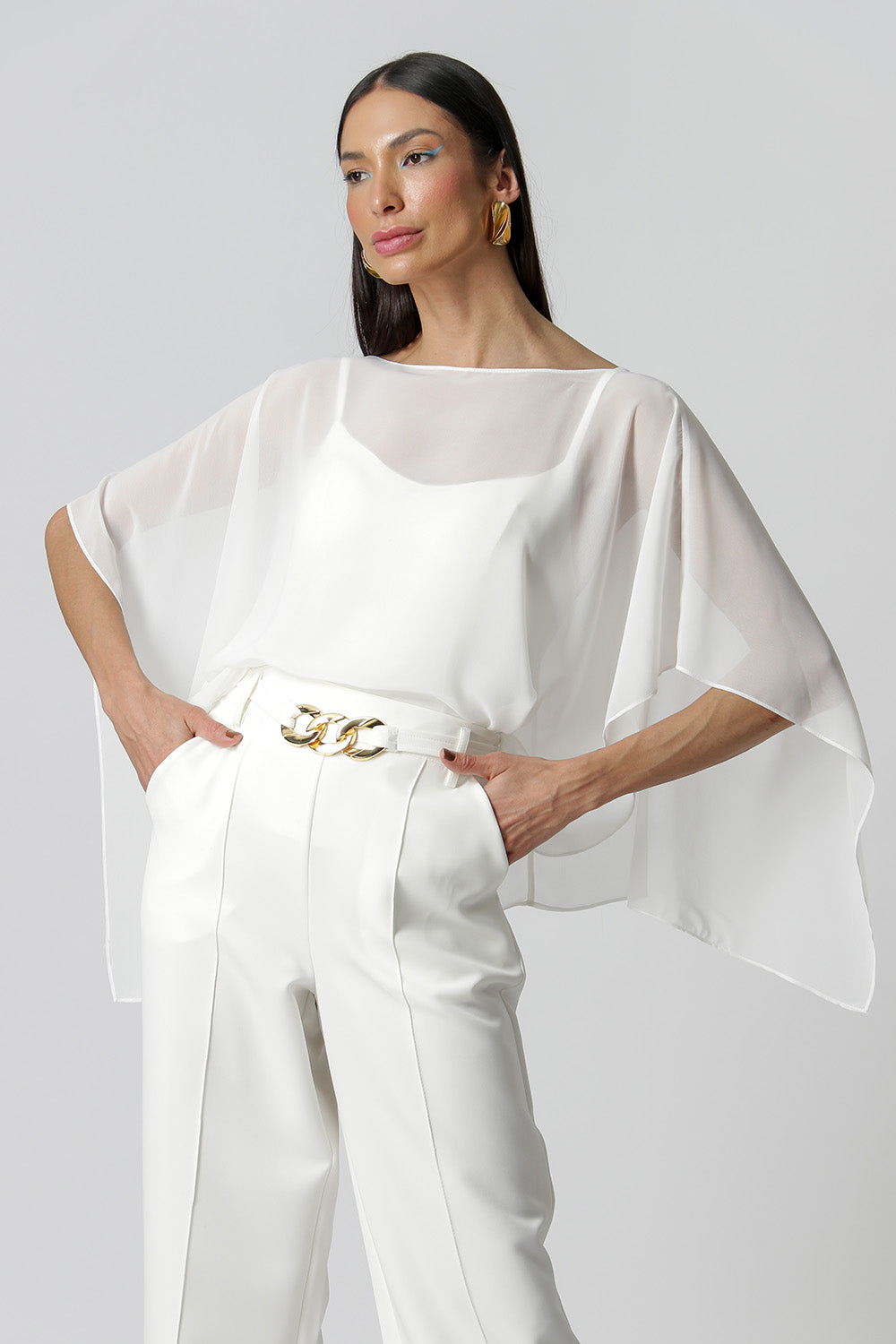 Blusa kaftan confeccionada em tecido crepe fluído. Peça com leve transparência e modelagem soltinha. Vem acompanhada com uma regata de bojo e alças ajustáveis da mesma cor para usar por baixo da blusa.