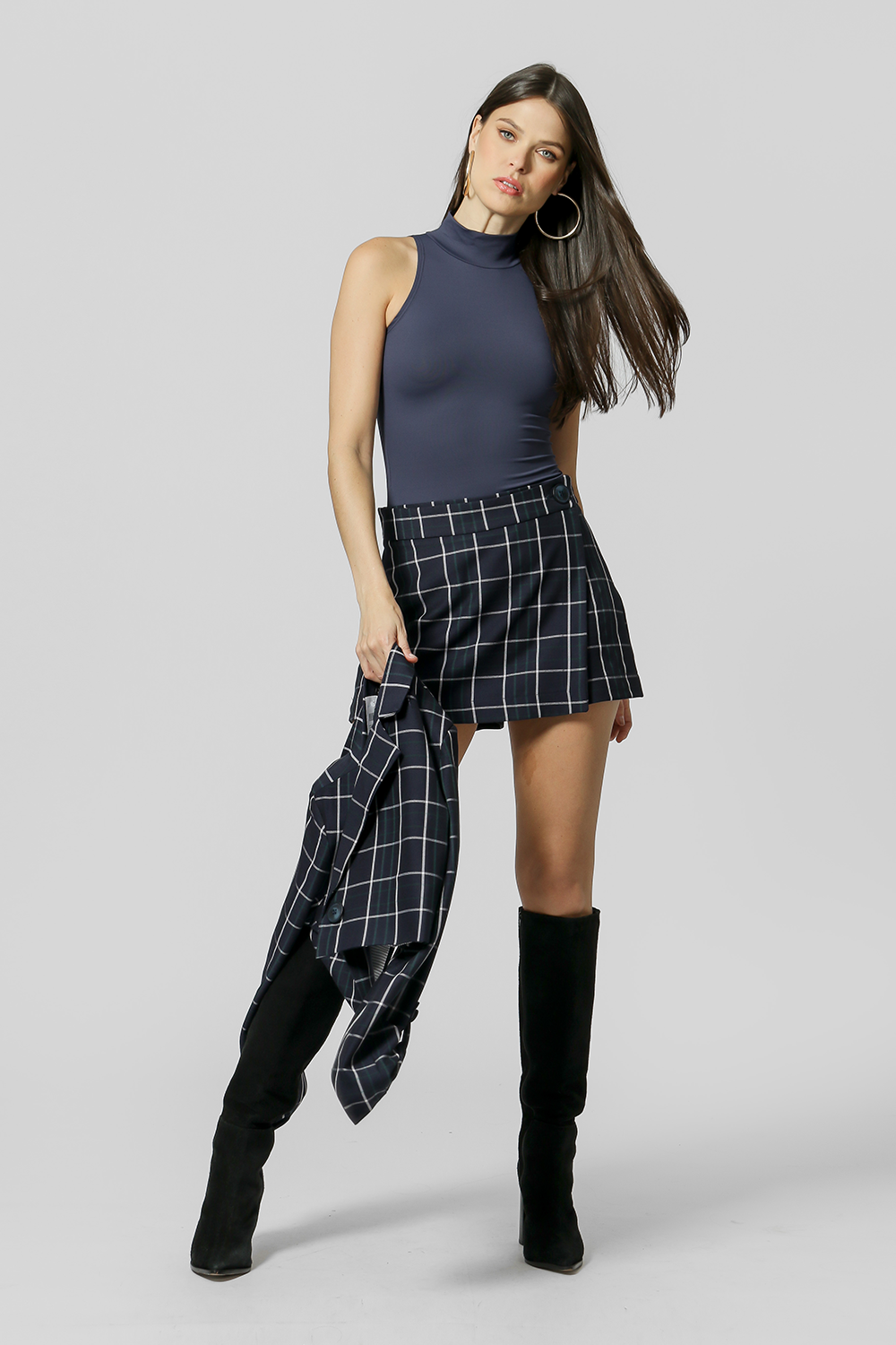 Blusa confeccionada en tejido de poliamida amni, sin mangas y cuello alto. Pieza básica para todas las estaciones. Perfecto para crear looks de capas.