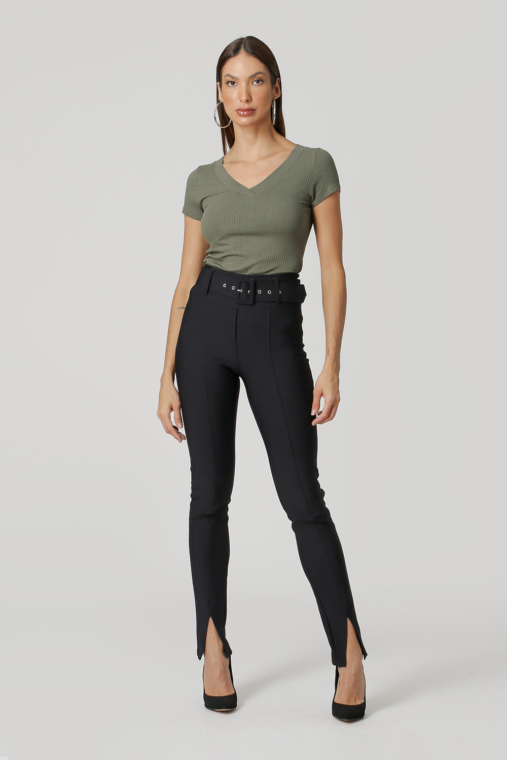 Blusa confeccionada en punto canalé. Tiene mangas cortas y cuello en pico. Una pieza básica para combinar con todo tu armario.