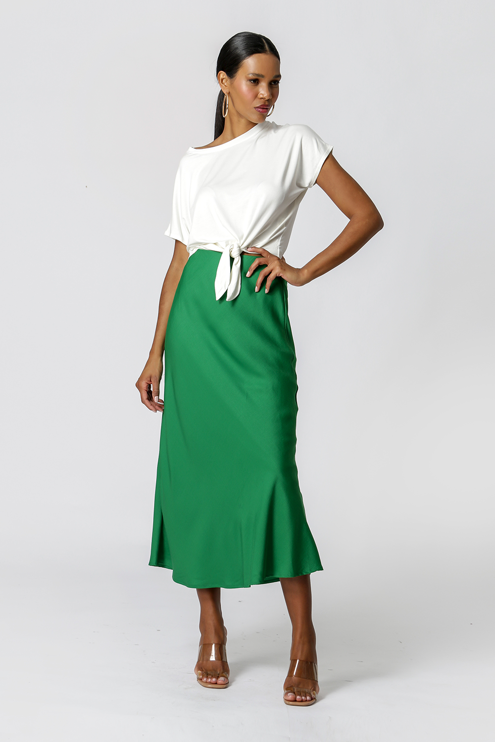 Blusa de punto suelto con nudo en la parte delantera. Ideal para usar en looks más casuales.