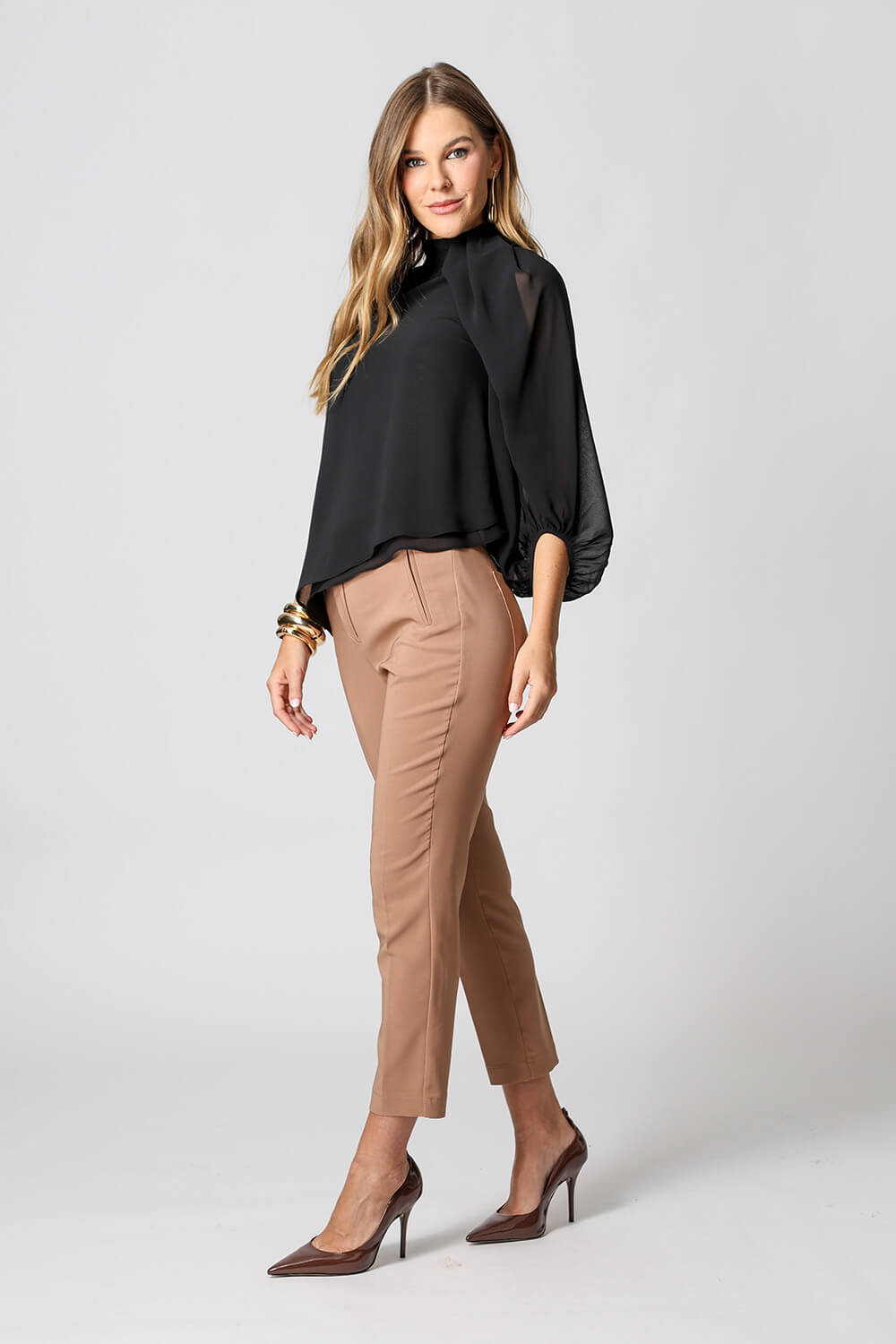 • Blusa de manga ancha diferenciada - NEGRA