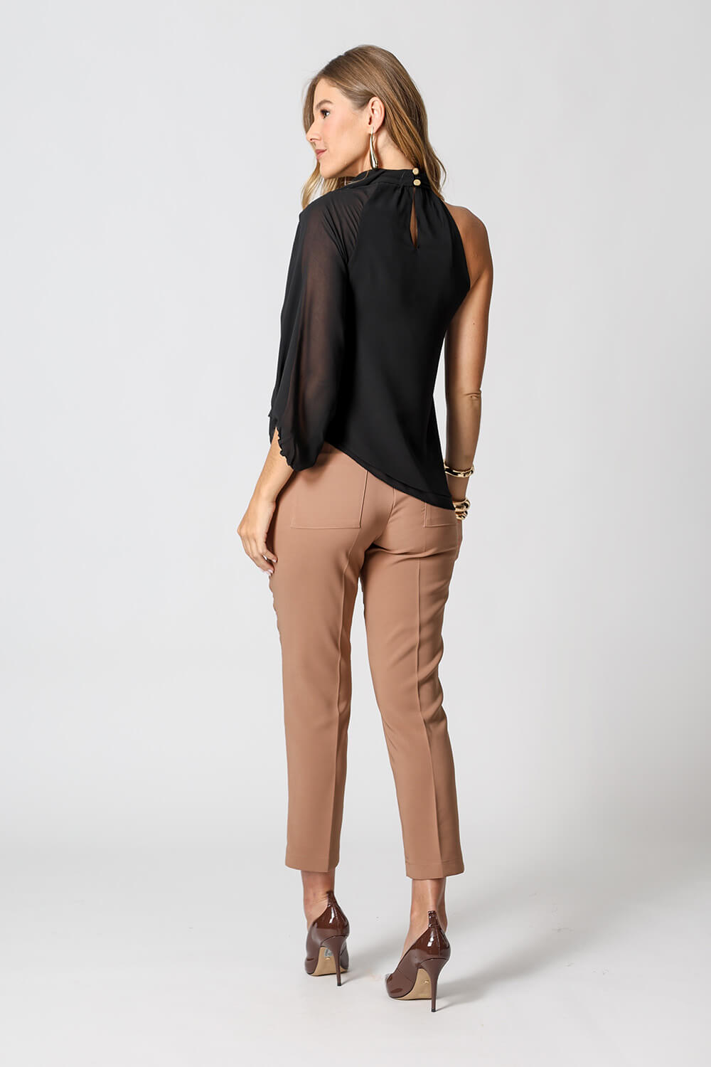 Blusa de un solo hombro con distintivas mangas anchas. Una pieza elegante y sofisticada, ¡anímate a por ella!