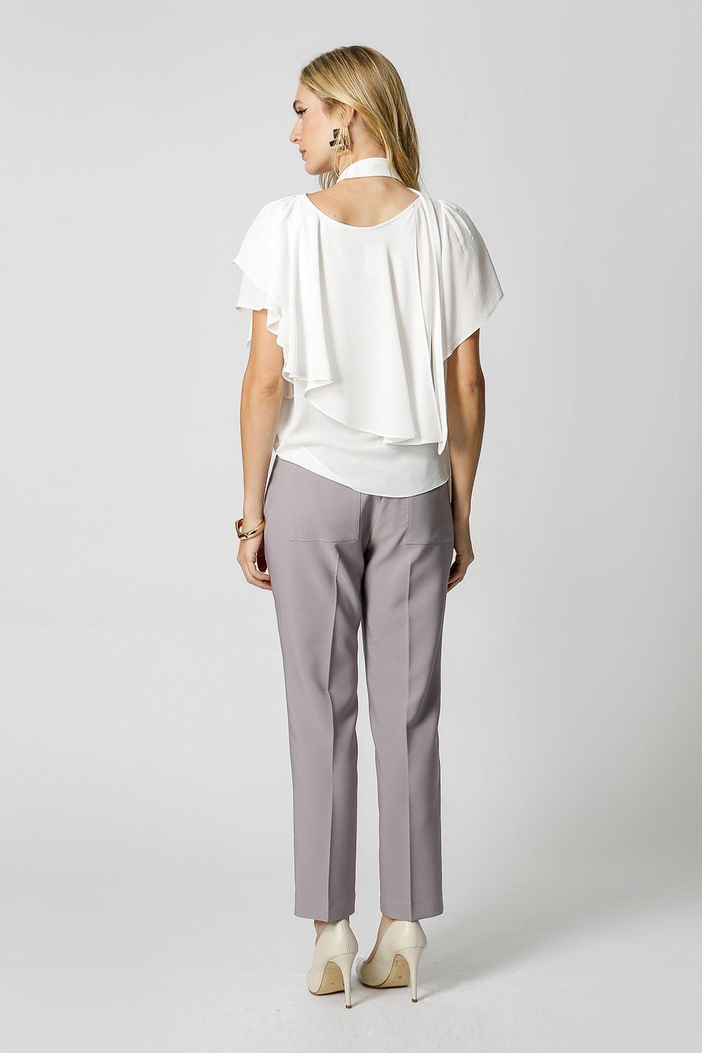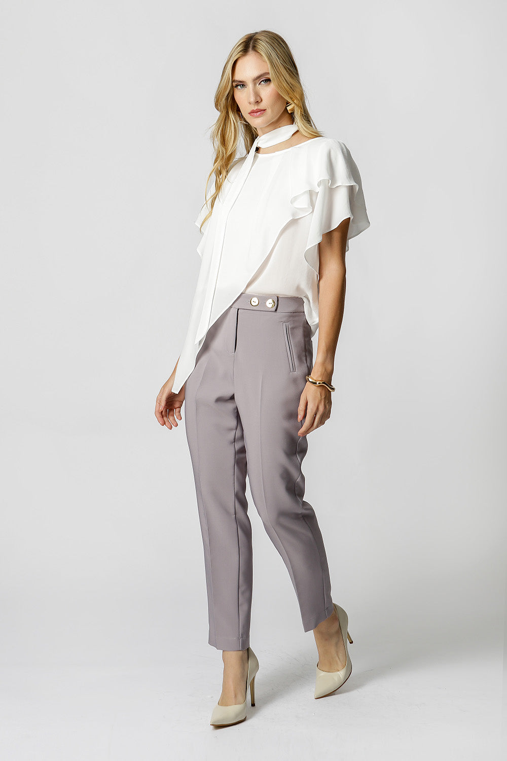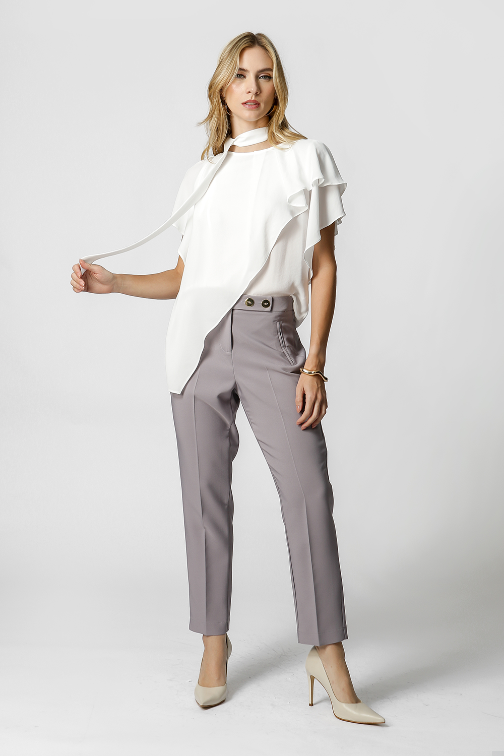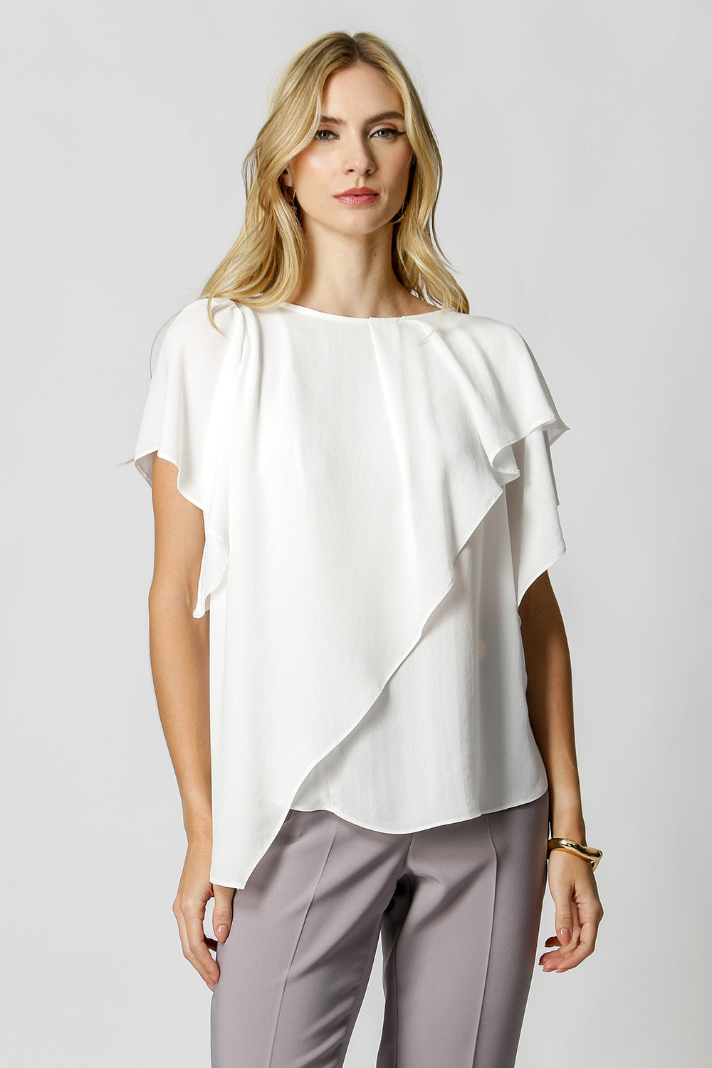 Blusa asimétrica con mangas de ángel, confeccionada en crepe fluido. Pieza elegante y cómoda, viene con un fajín del mismo tejido, puede utilizarse para ajustar la cintura, creando un efecto más estructurado o un look más fluido.