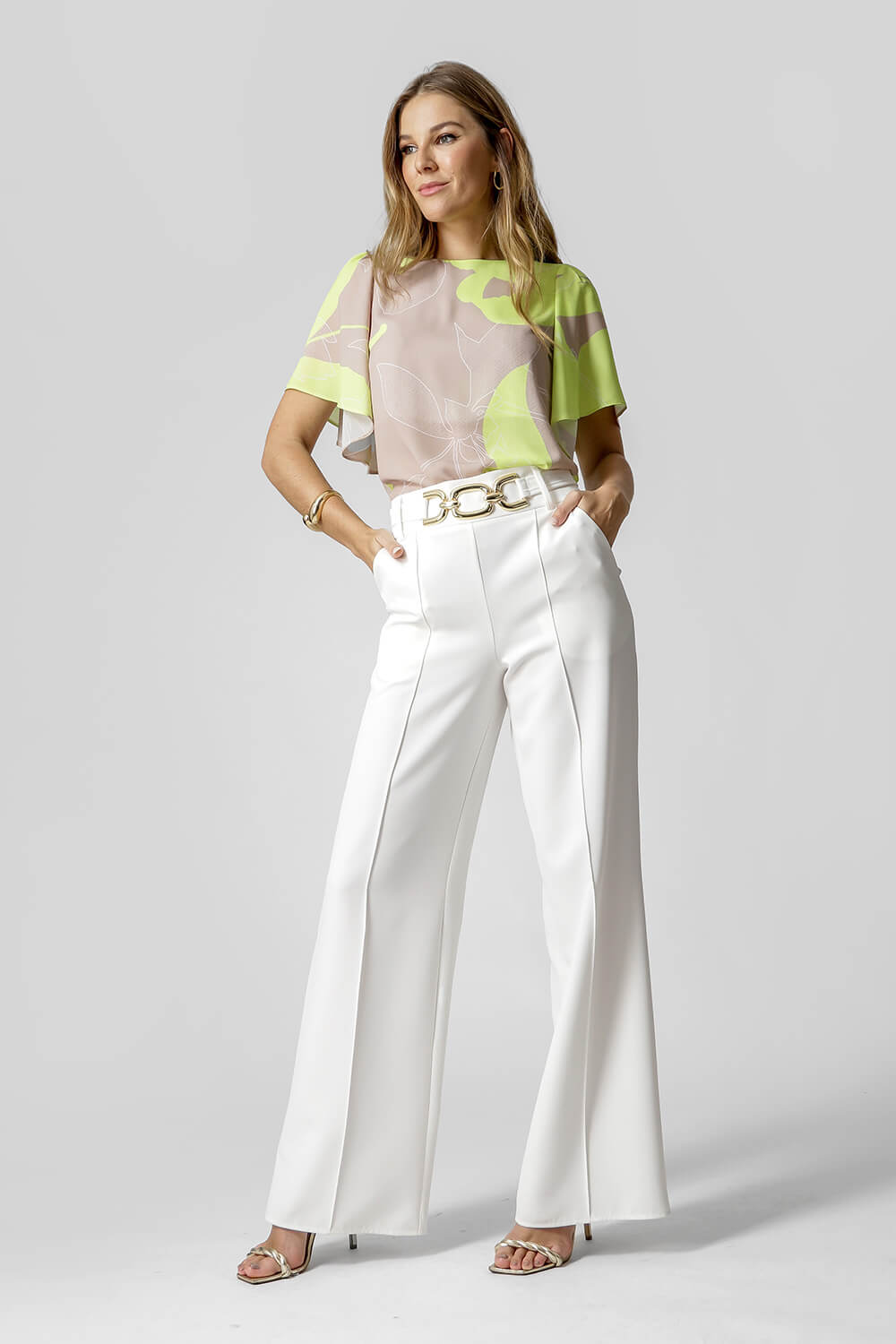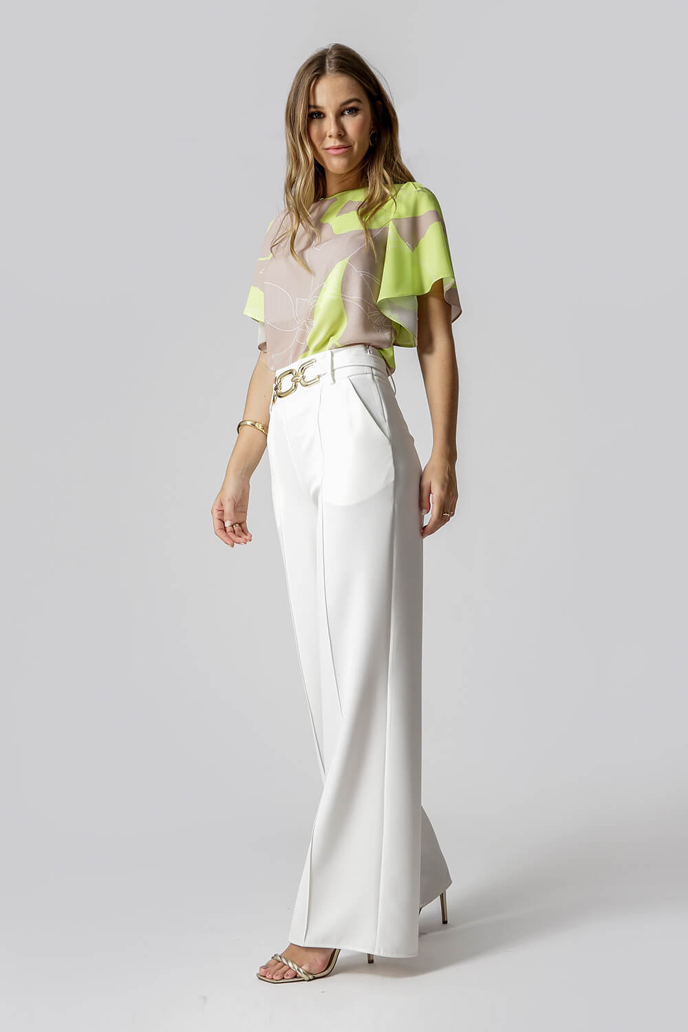 Blusa estampada con mangas de ángel. Una pieza de corte delicado, que aporta romanticismo e ideal para crear diversos looks de trabajo.