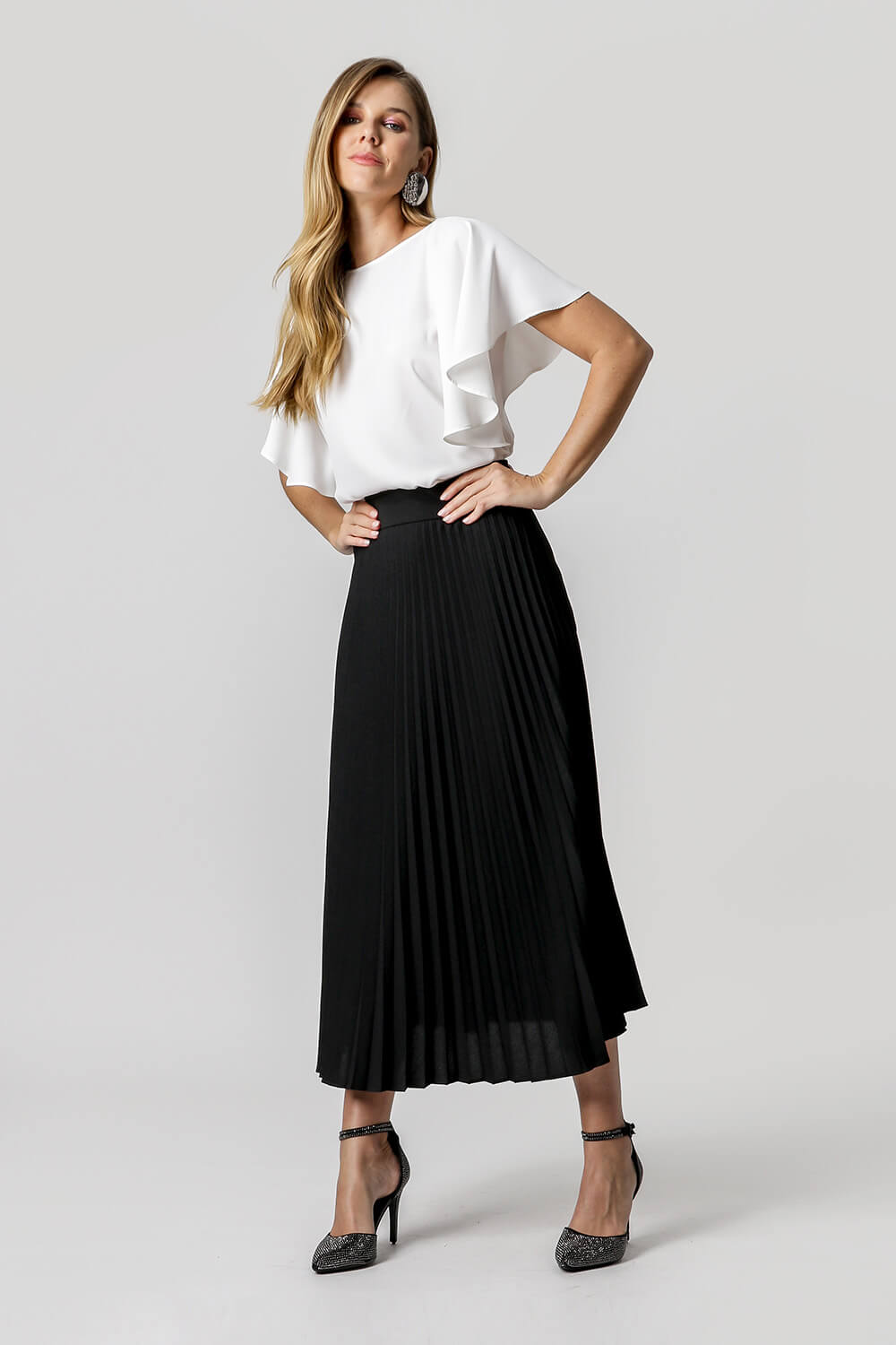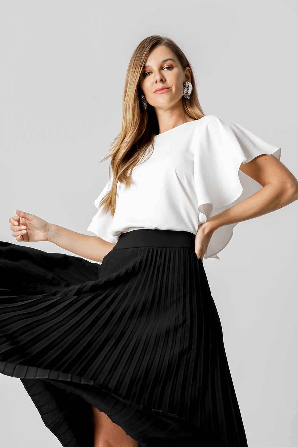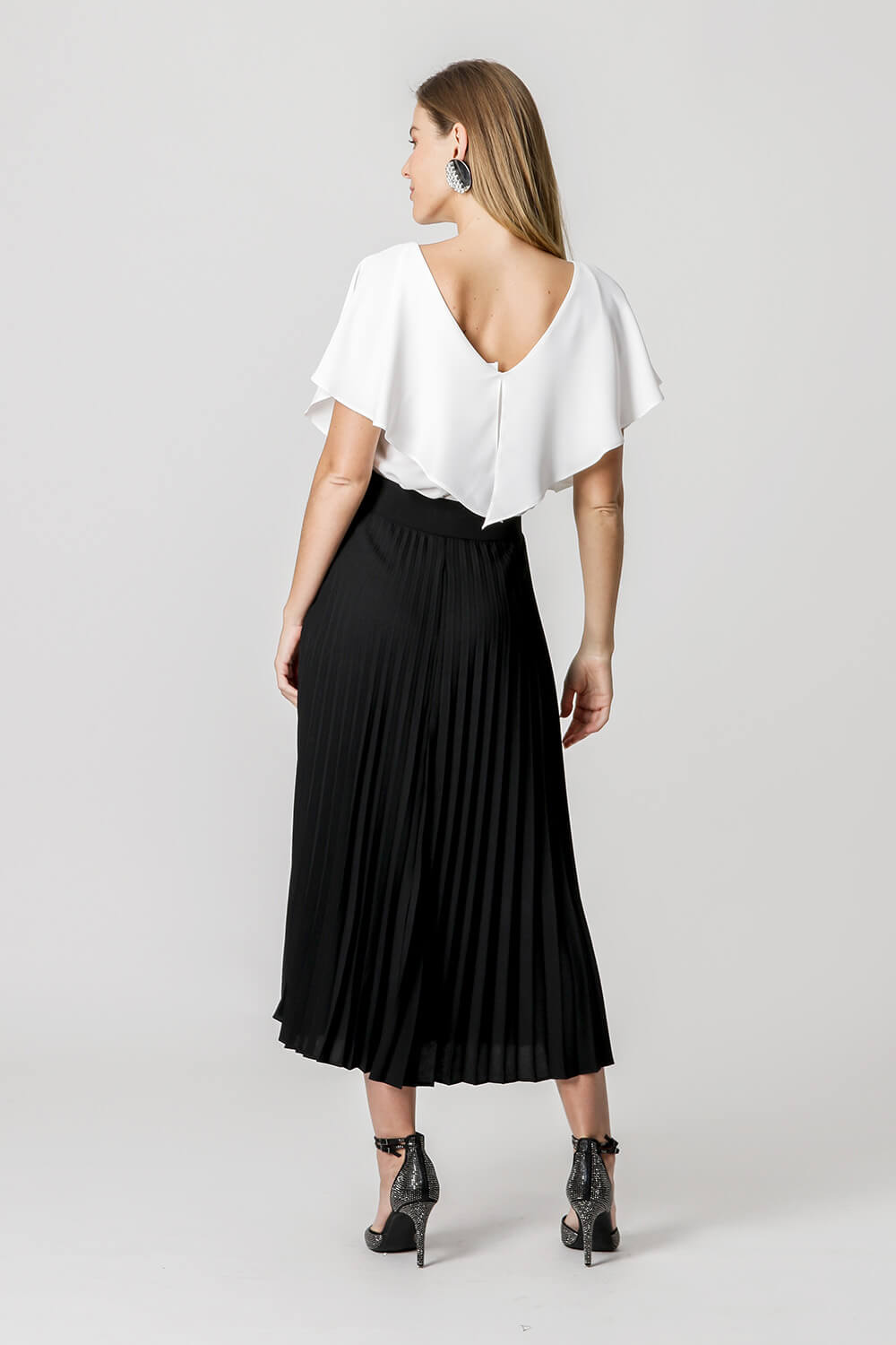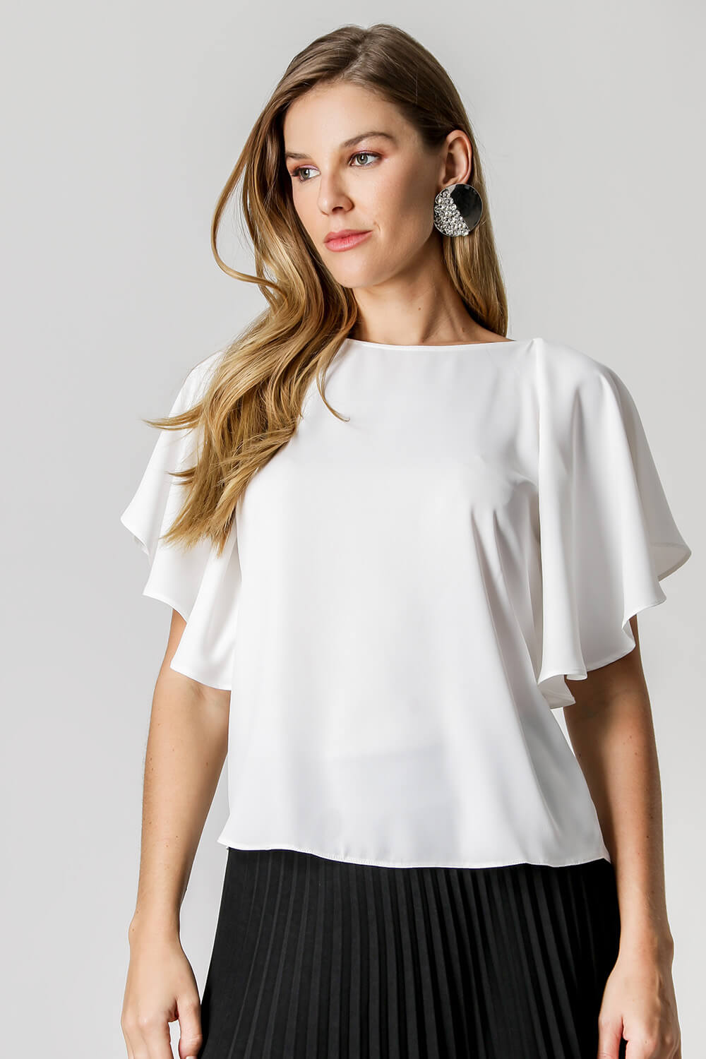 Blusa con manga ángel, escote se puede usar tanto en la parte delantera como en la trasera.