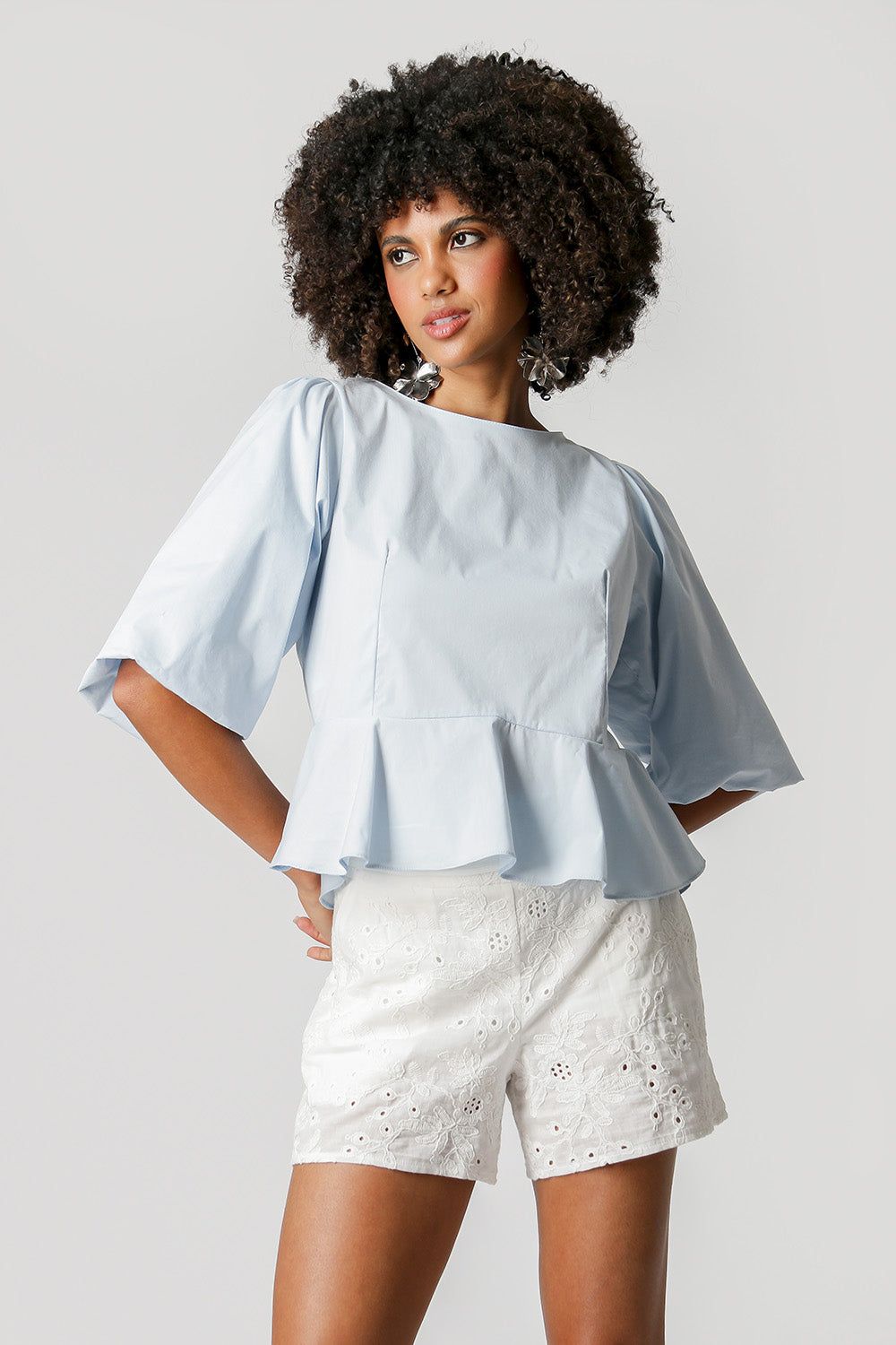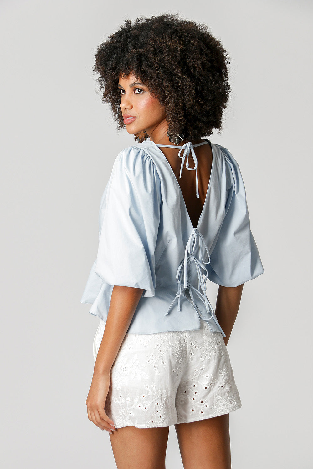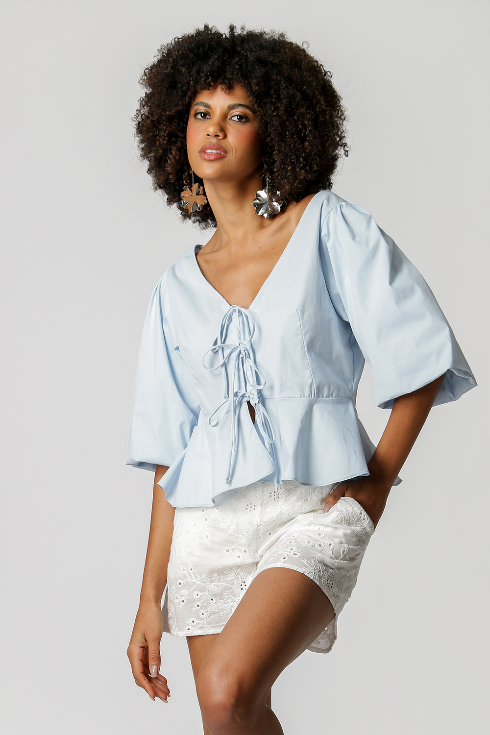 Blusa con mangas globo y abertura con lazo. Una pieza que aporta comodidad, practicidad y elegancia a tu look y que no puede faltar en tu armario.