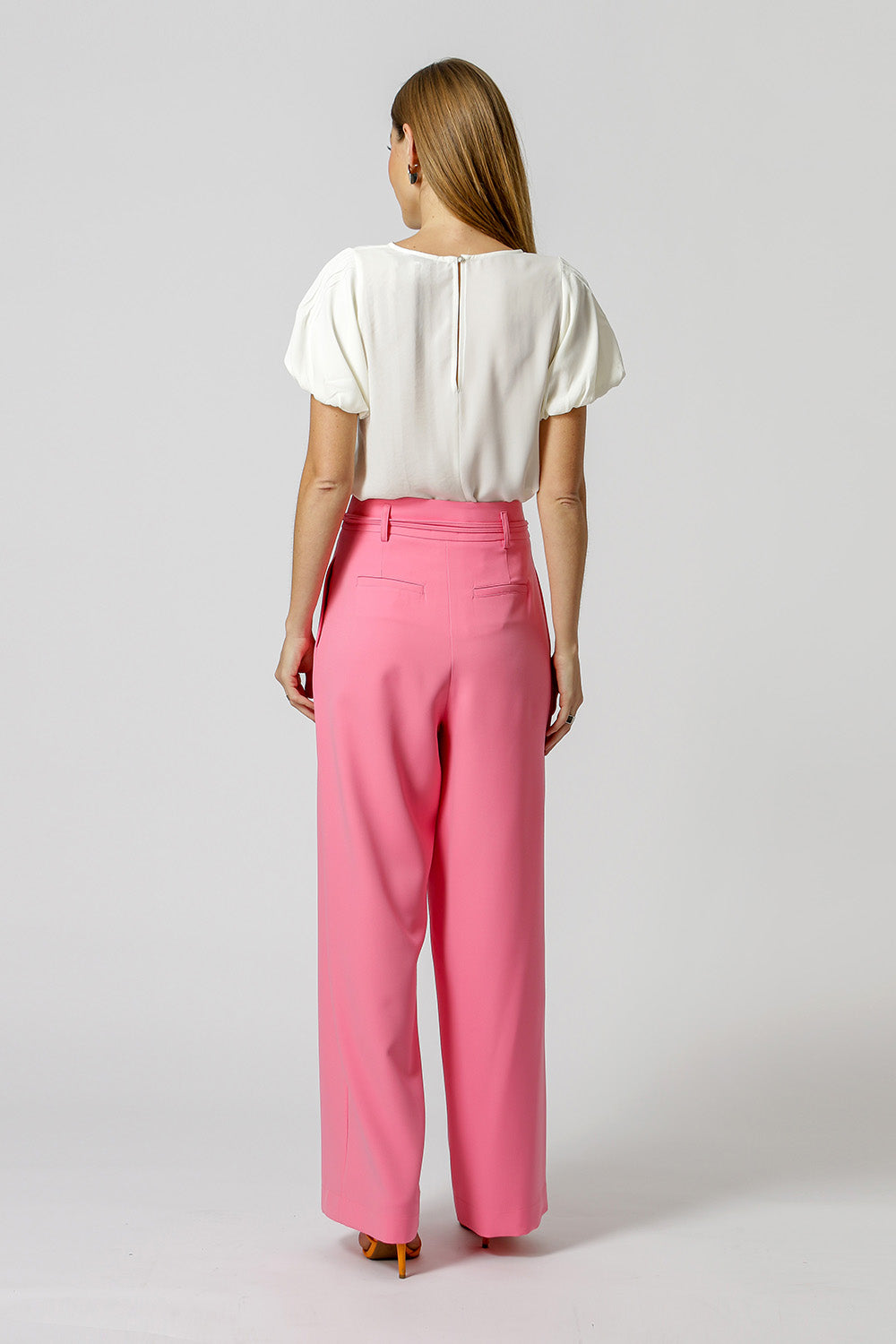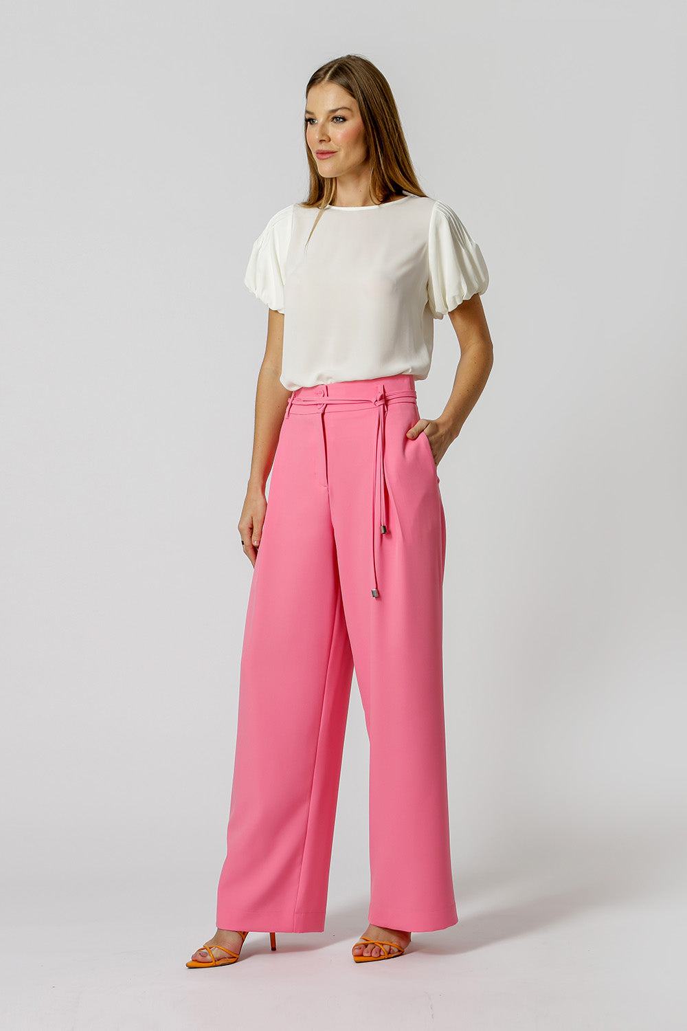 Blusa confeccionada en tejido ligero y fluido. Pieza de corte más holgado y manga corta tipo globo. Perfecto para ocasiones más formales.