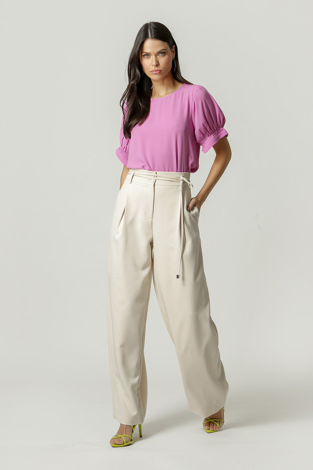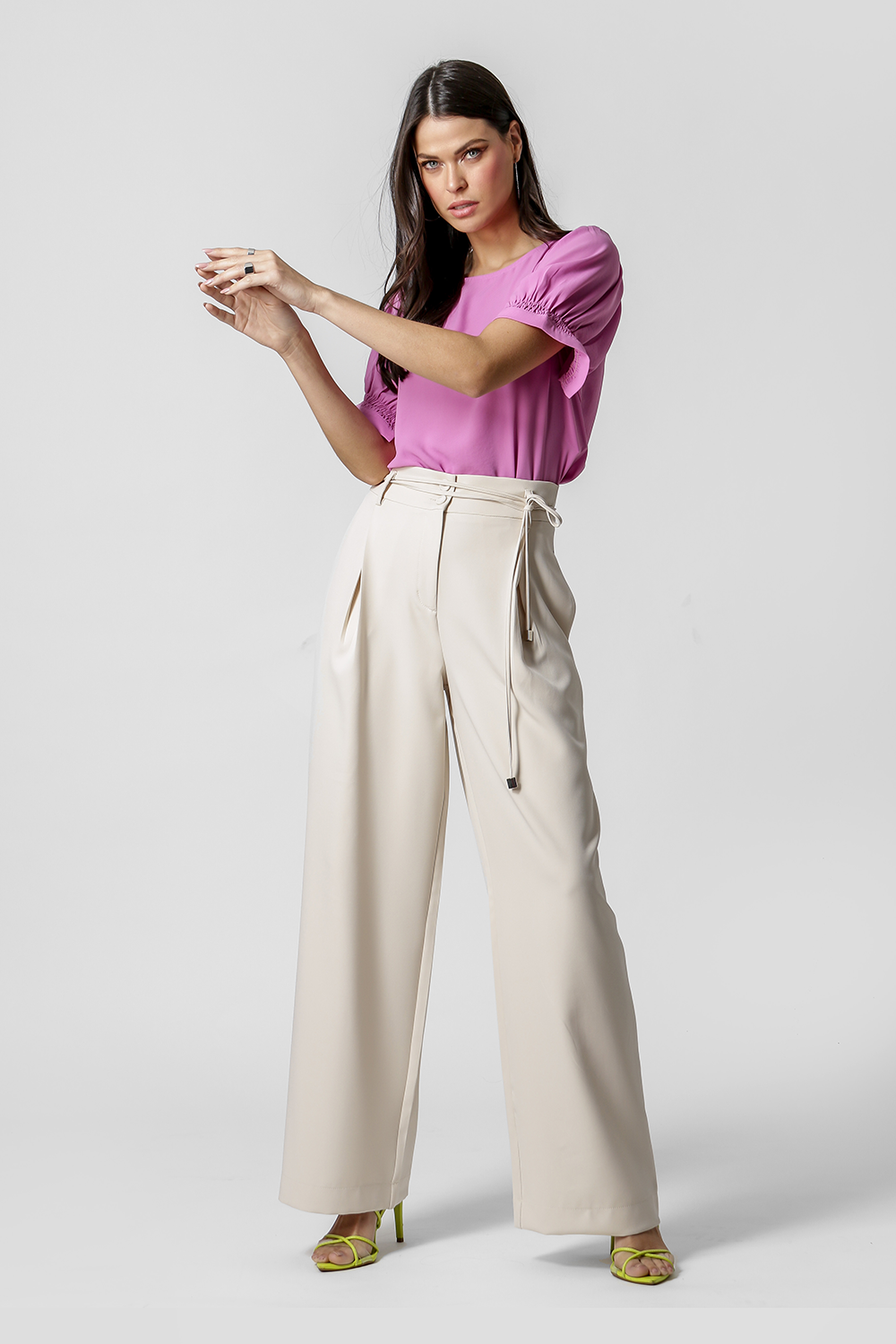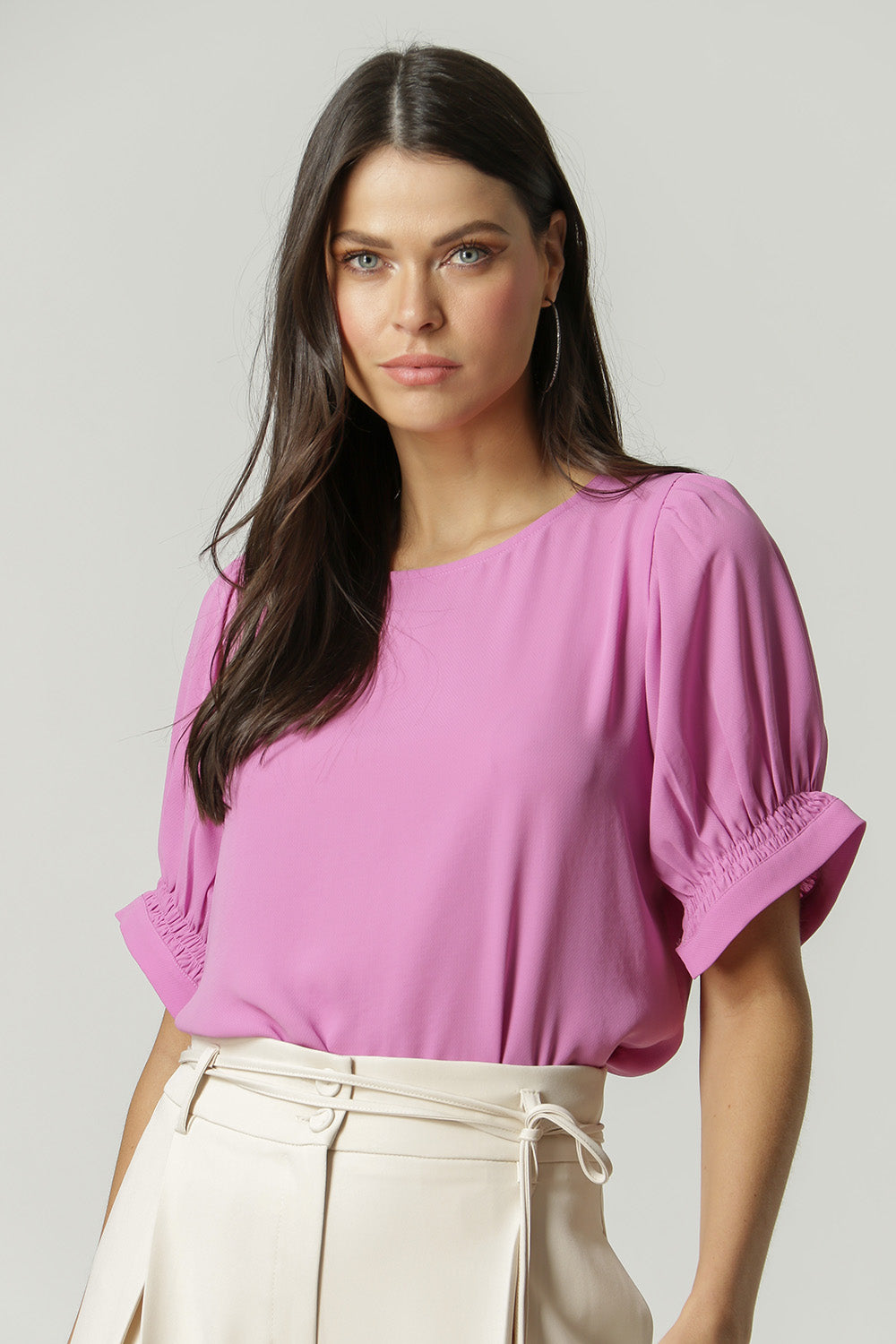 Blusa de corte fluido, mangas abullonadas con abertura lateral y detalle elástico. Es el clásico que debes tener en tu armario. Perfecto para ocasiones más formales.