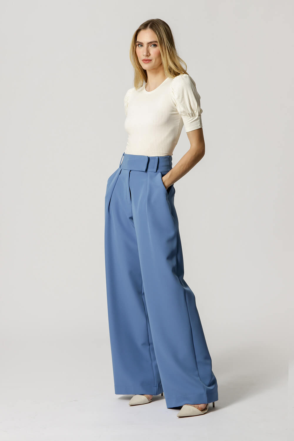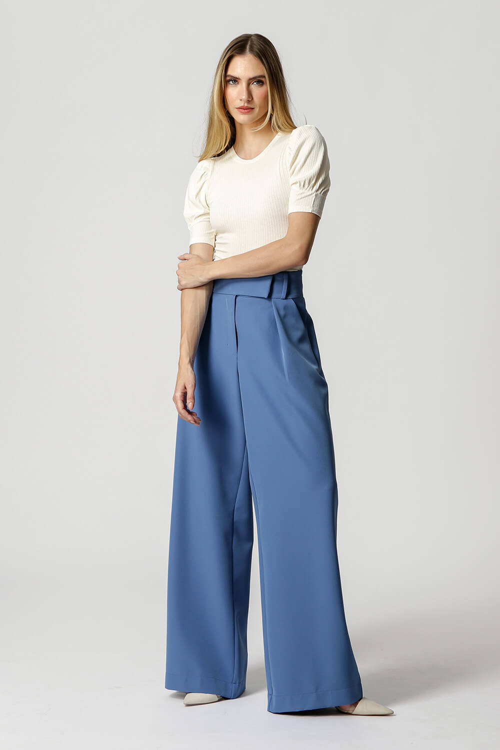 Blusa de punto acanalado con mangas abullonadas. ¡Lo básico que necesitas tener!