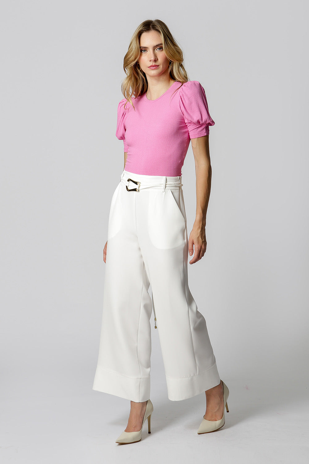 Blusa de punto acanalado con mangas abullonadas. ¡Lo básico que necesitas tener!