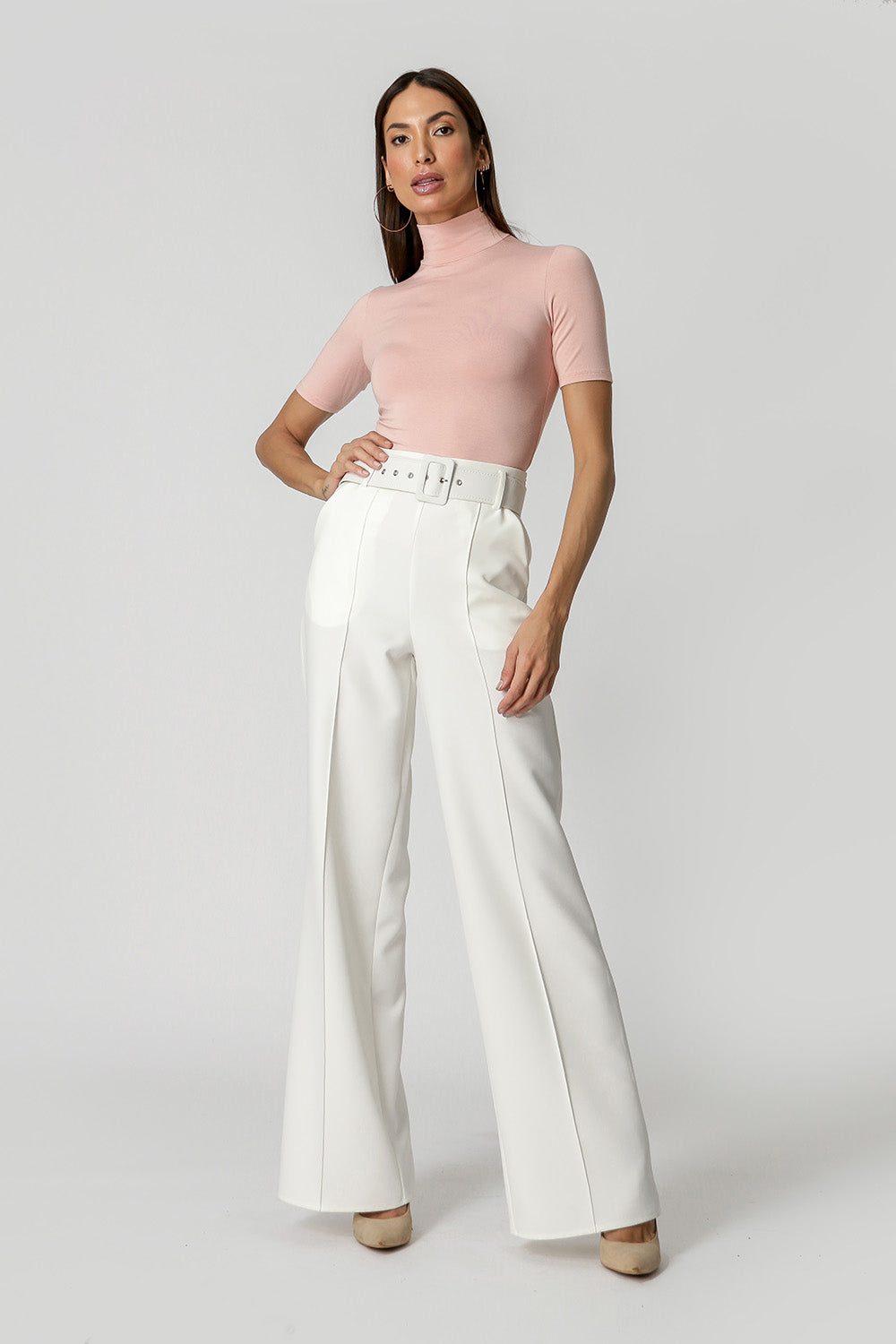 Pantalones minimalistas de pierna ancha - BLANCO ROJO Pantalones minimalistas de pierna ancha - BLANCO ROJO