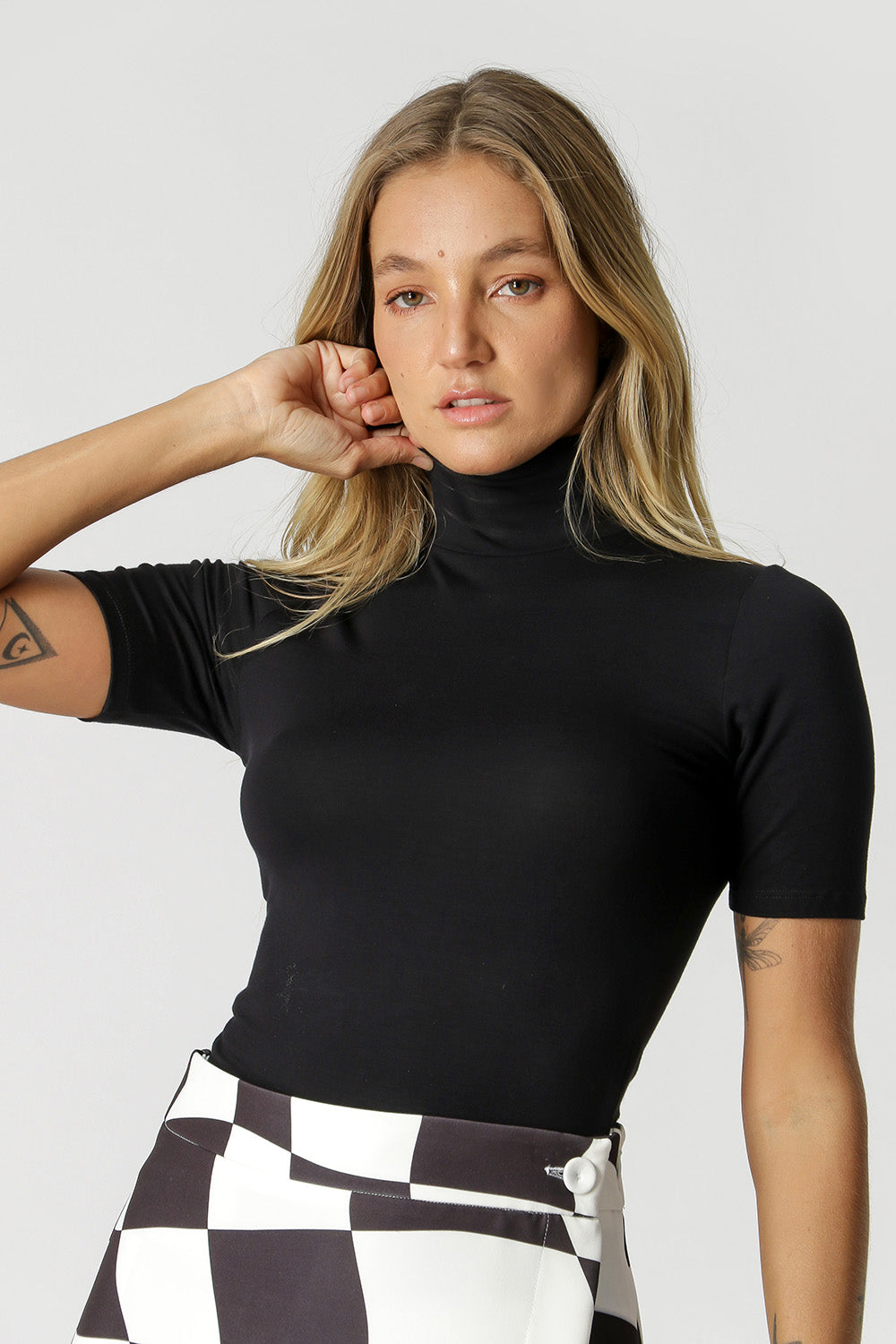 Blusa en punto viscopet, tiene manga corta y cuello alto. Pieza básica, perfecta para trabajar con looks de capas.