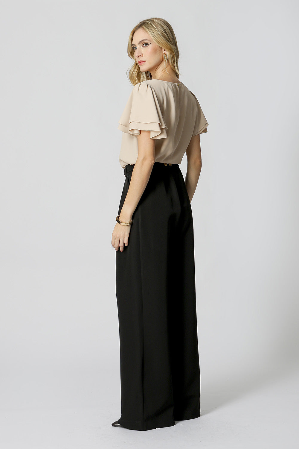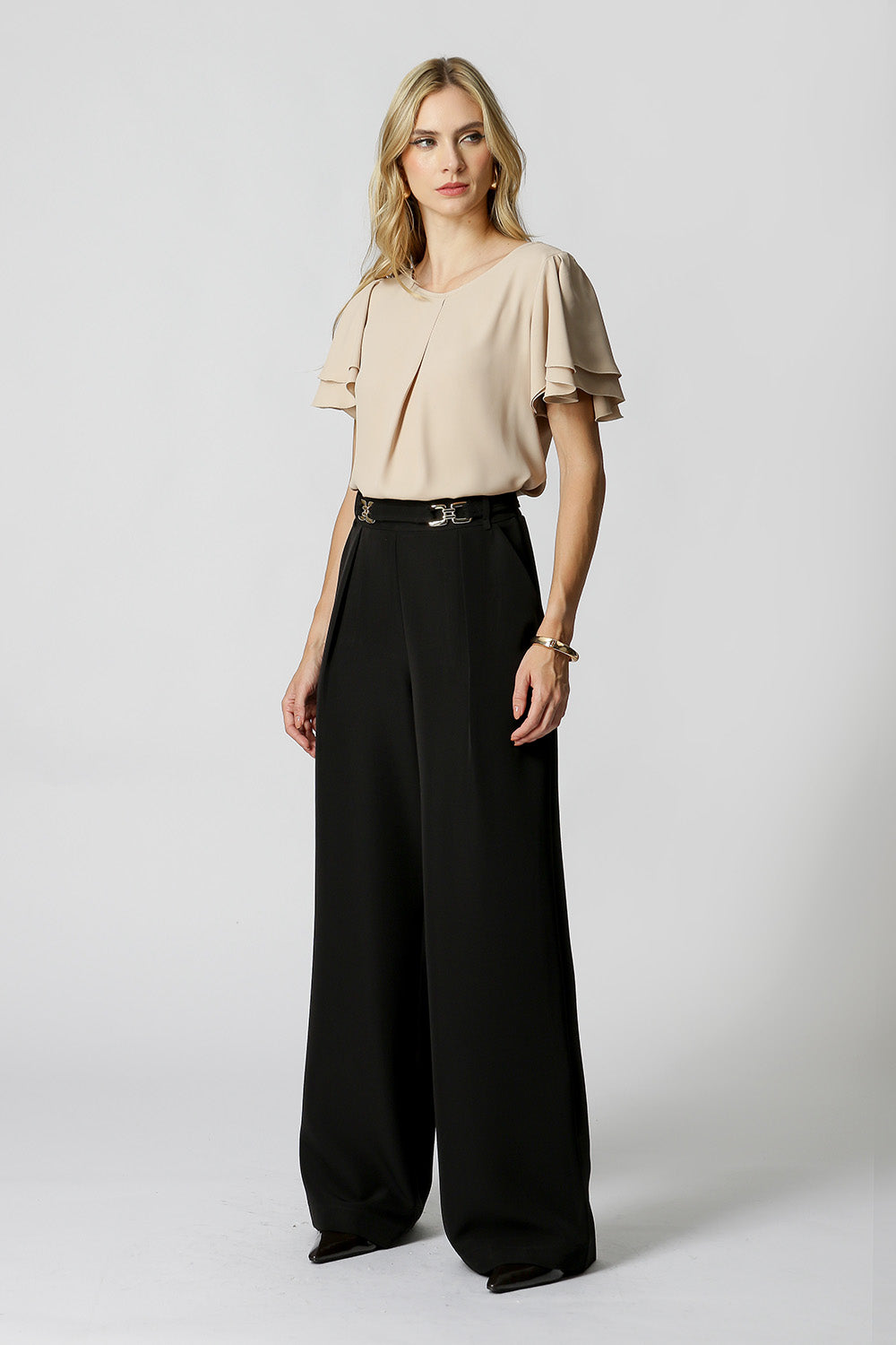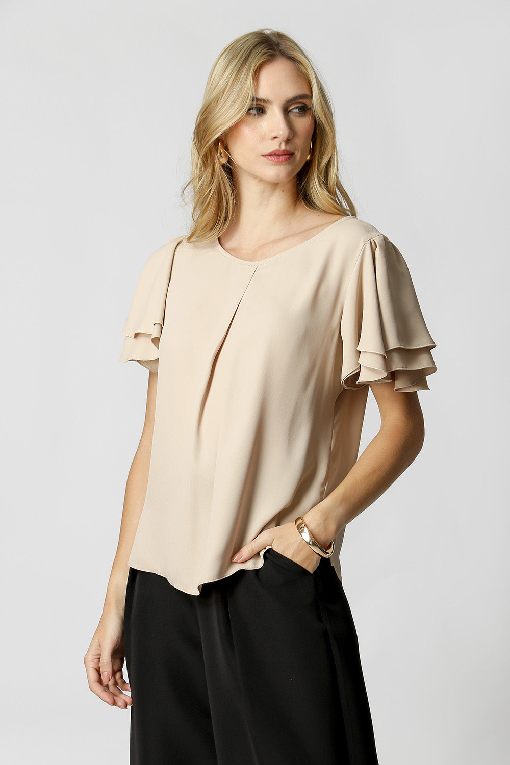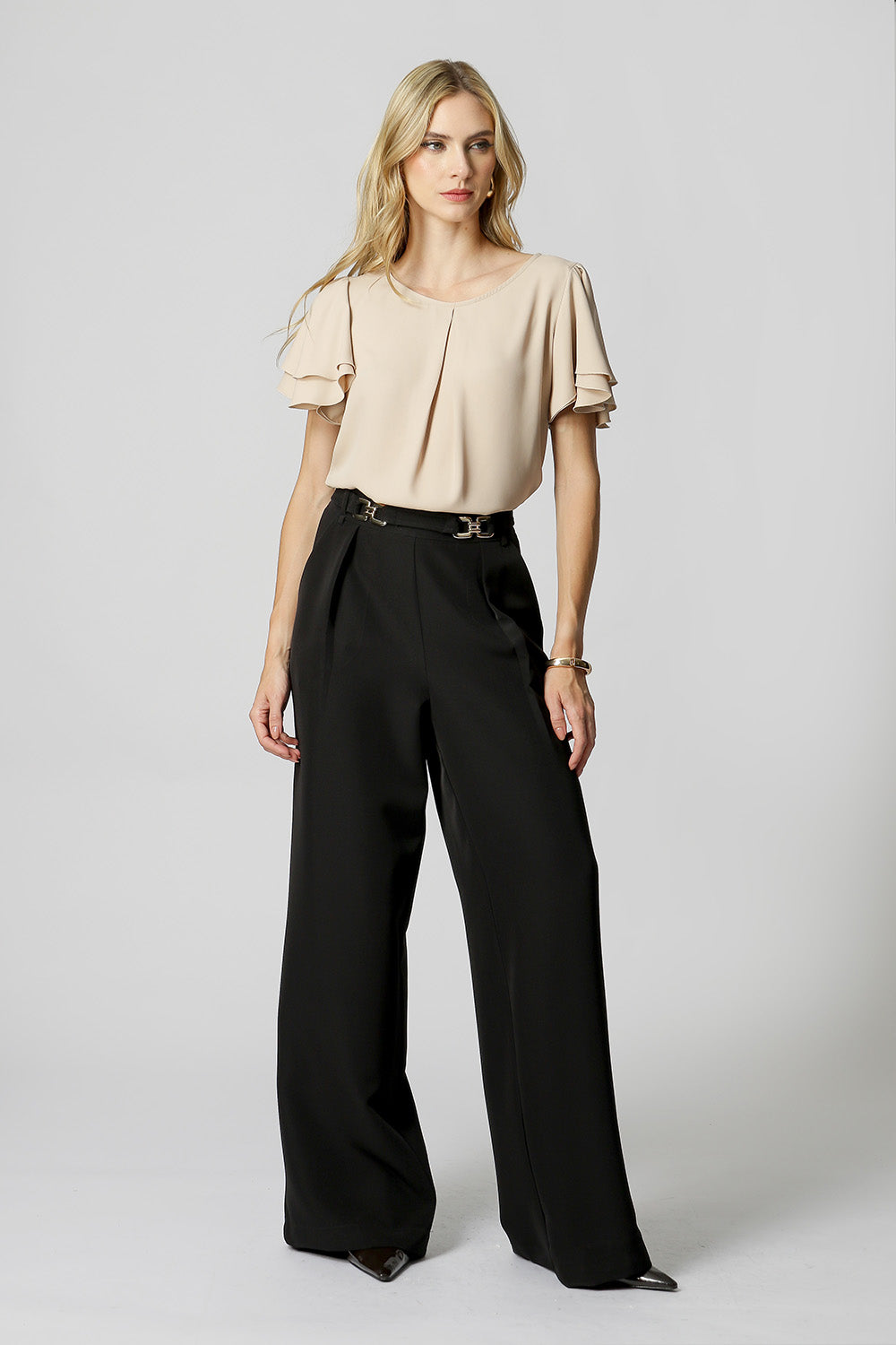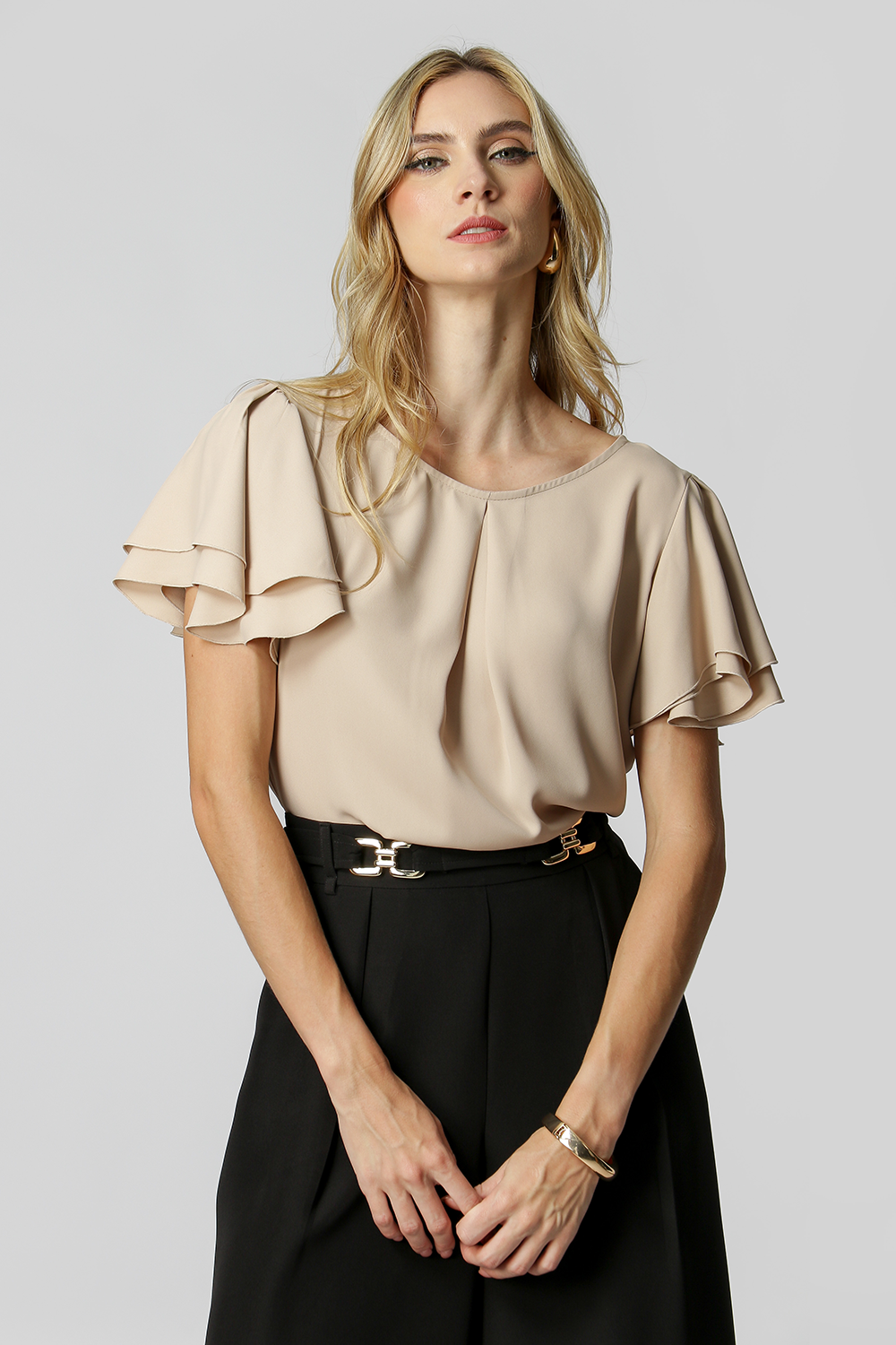 Blusa en tejido Crepe Segall con detalle de pliegues delanteros y mangas dobles. ¡Una gran opción para componer tu look de trabajo!